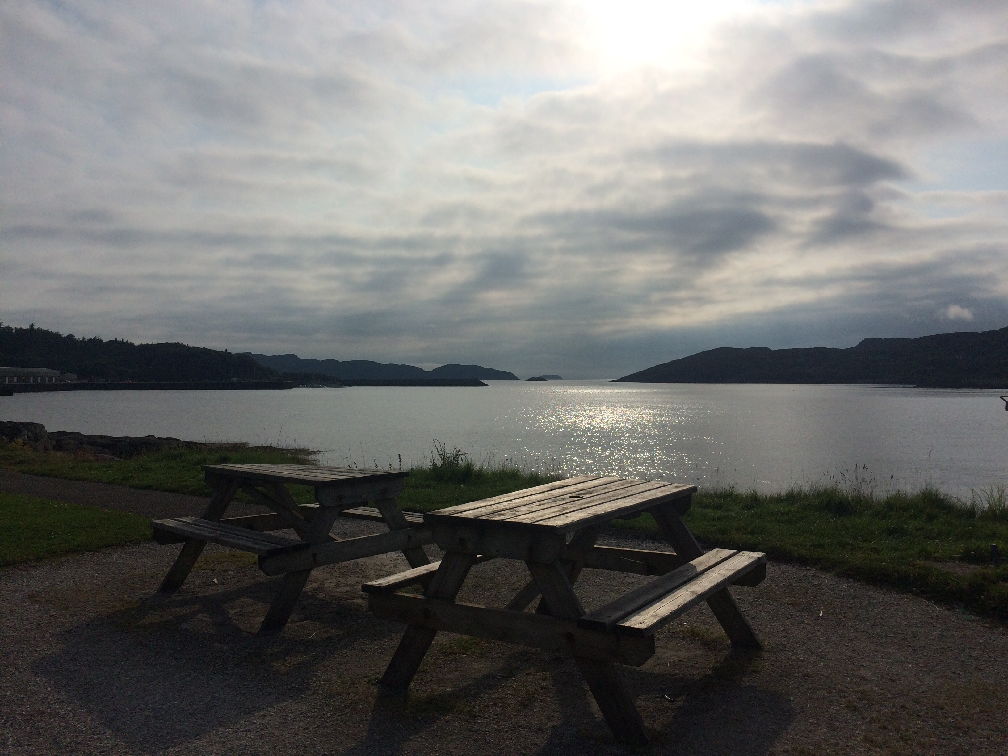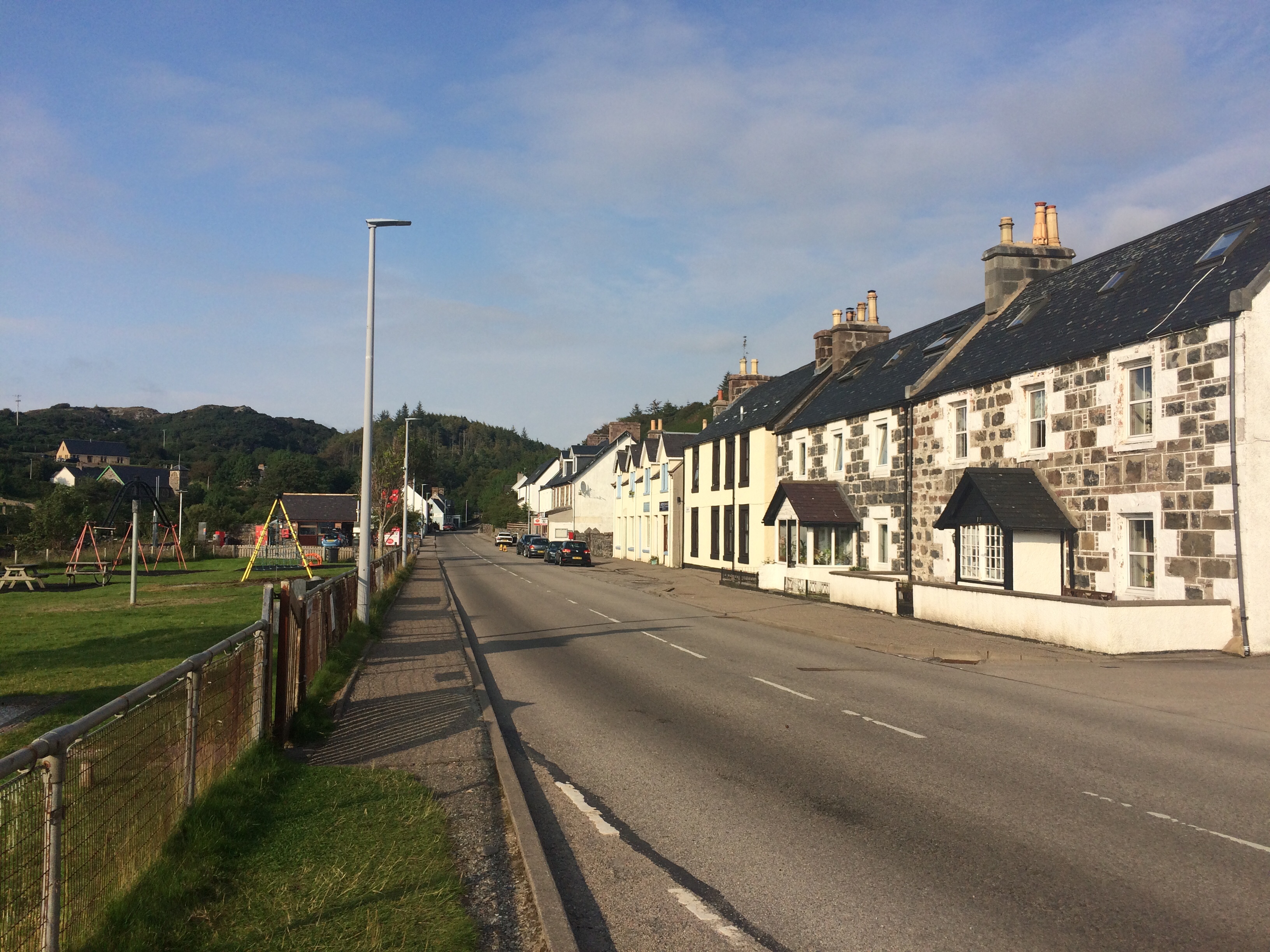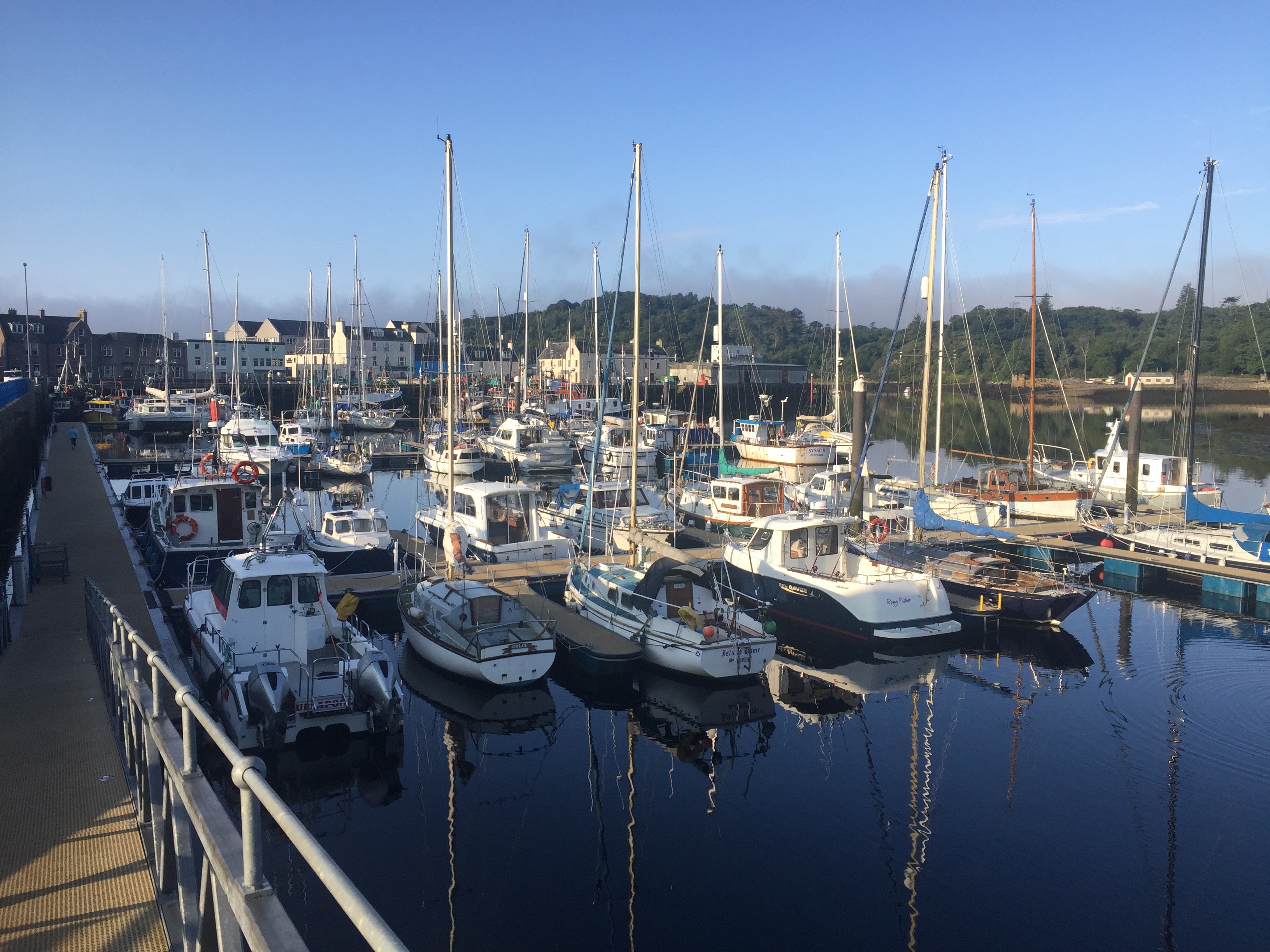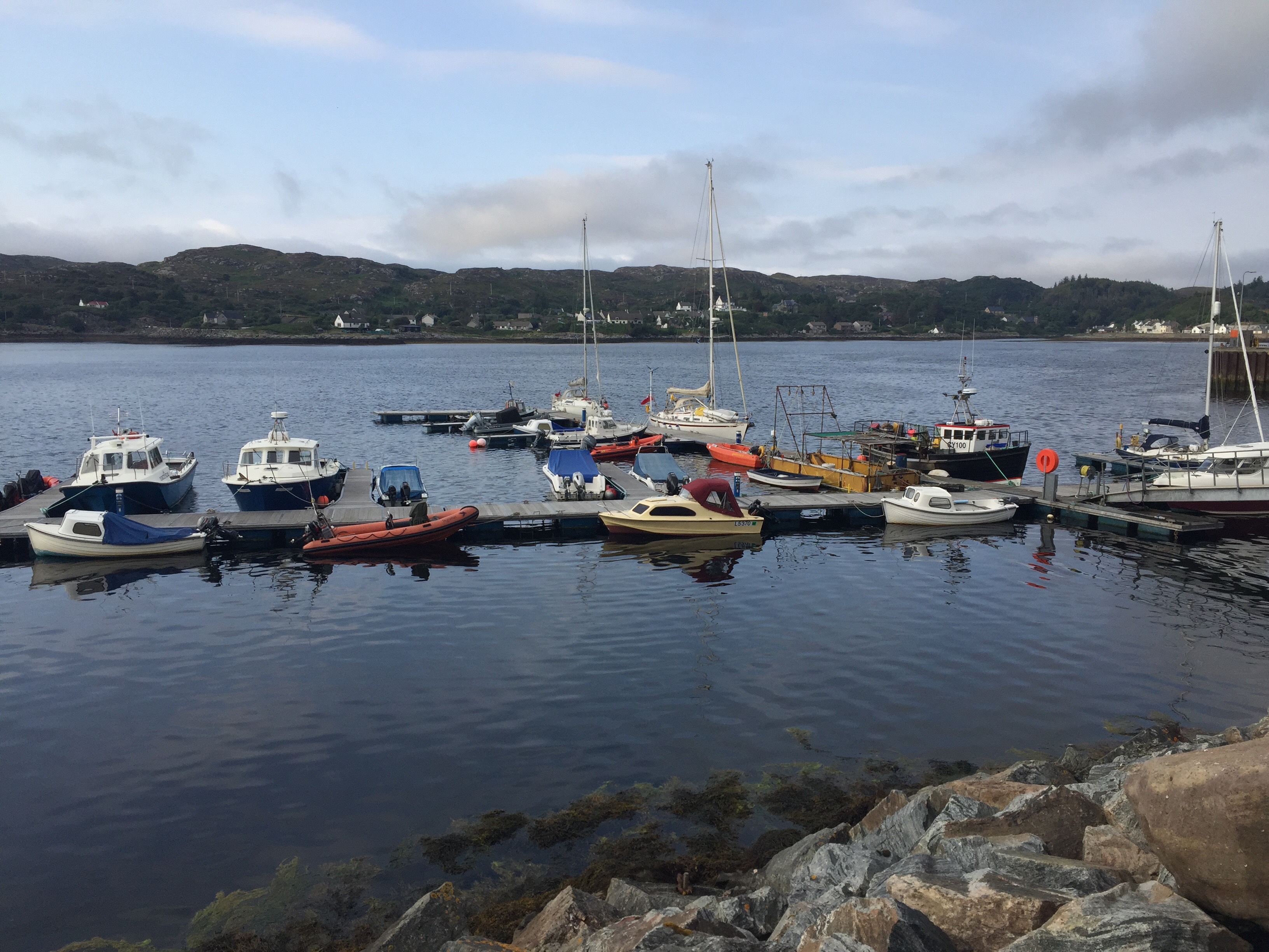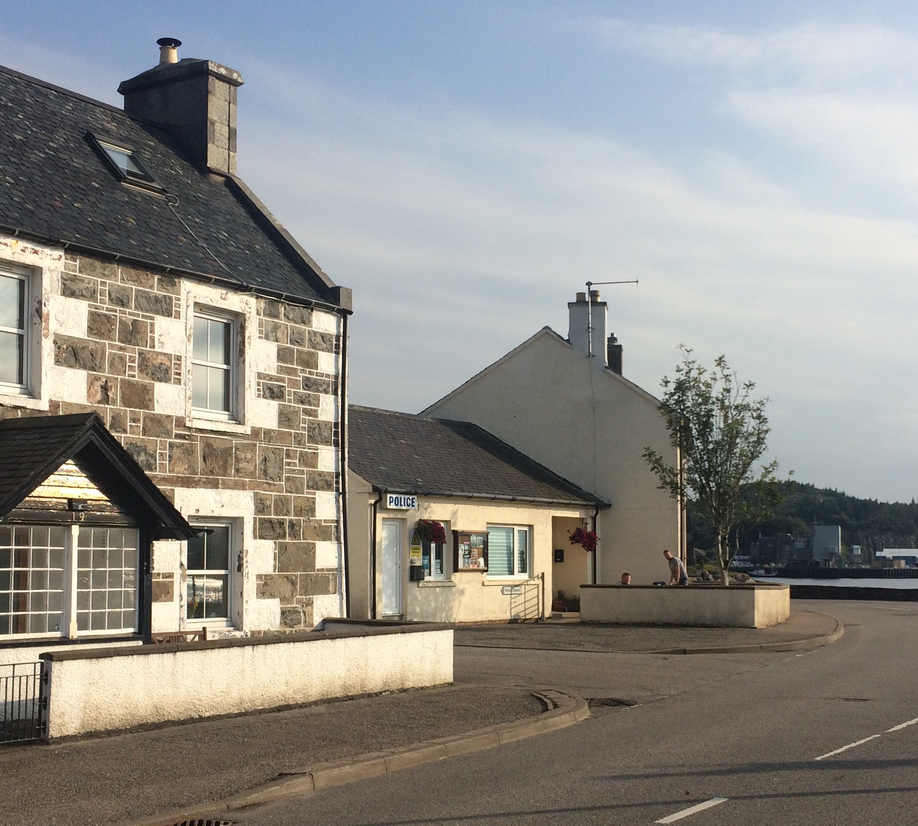 Sadly we had to leave Stornoway this morning .it was a really lovely place… it had everything that you could want , and we would definitely look forward to coming back . The morning promised yet another Beautiful day but disappointingly, the cloud and murky visibility persisted all day. To begin with there was no wind and we motored for a couple of hours but with the wind mostly in the Northwest it was a perfect opportunity to get the cruising chute out😬! For the first time ever, we rigged it and sailed with it for over 2 hours! For once , the wind stayed the same without threatening to drop or increase. We decided to take it down with about 10 miles to go as the wind started to increase. With only the two of us on board, we rely on being to do everything within our comfort zone …. if at all possible!!!! Finally arrived in Lochinver mid afternoon and tied up to a rather dilapidated pontoon . I left J to sort the boat out and ventured off to find the harbour masters office . Lochinver is most definitely a fishing industry place rather than a yacht-haven. I eventually found the office at the end of a massive warehouse depot where articulates container lorries were able to load up… presumably fish! The kind lady in the office told me there weren’t any facilities open but gave me a map of the area and said that our £27 fee would cover 2 nights if we wanted to stay. We had a quick beer on deck before going for a walk to the Village which is basically a row of houses, bed and breakfasts and a few larger hotels. I came here when I was in my early teens on a family holiday and it doesn’t look like its change much in 45 years! I took a picture of the police station where my dad went to ask whether anyone had handed in a pair of trousers that my sister had left on the top of Suilven ( a nearby mountain). Probably quite a loss in the 1970’s! She had changed into shorts as it was hot!! We returned to Angelique and had a normal evening cooking supper and watching tv. Now about to go to bed with quite a lot of water slapping on the transom so may not be that peaceful. hope we don’t get the awful thunderstorms and lightning that the east And south of the country has had🤞nothing in the forecast as yet!