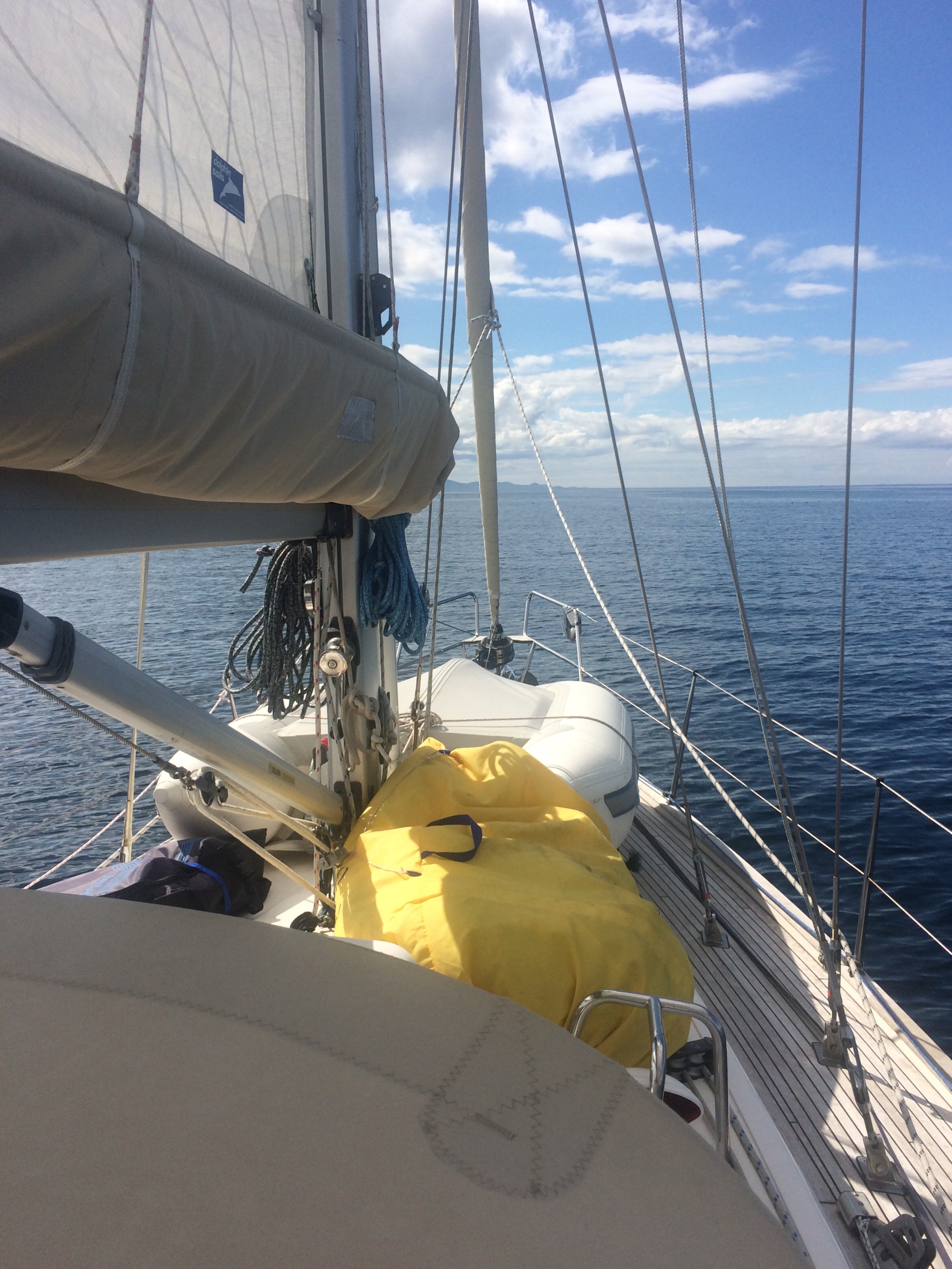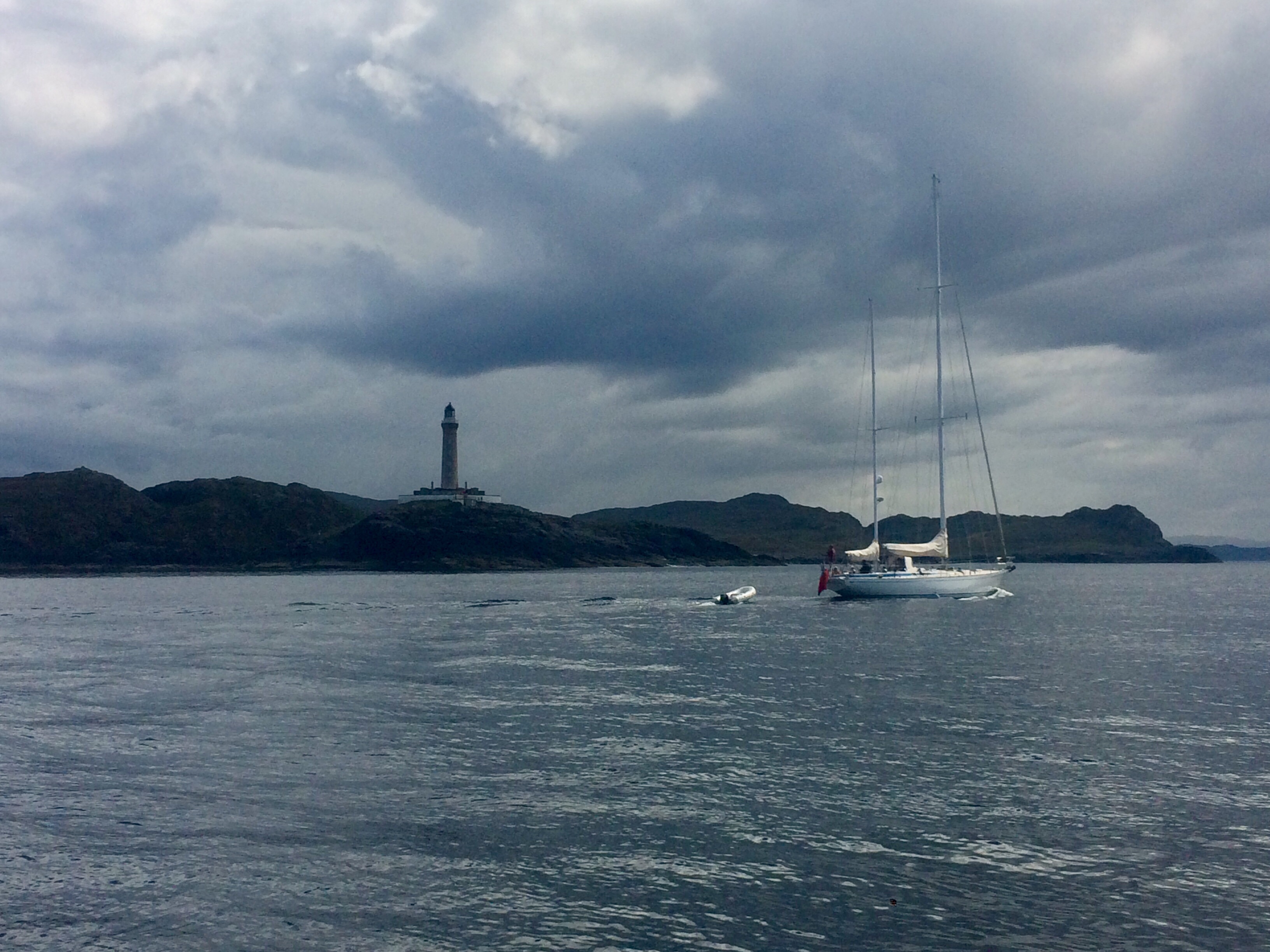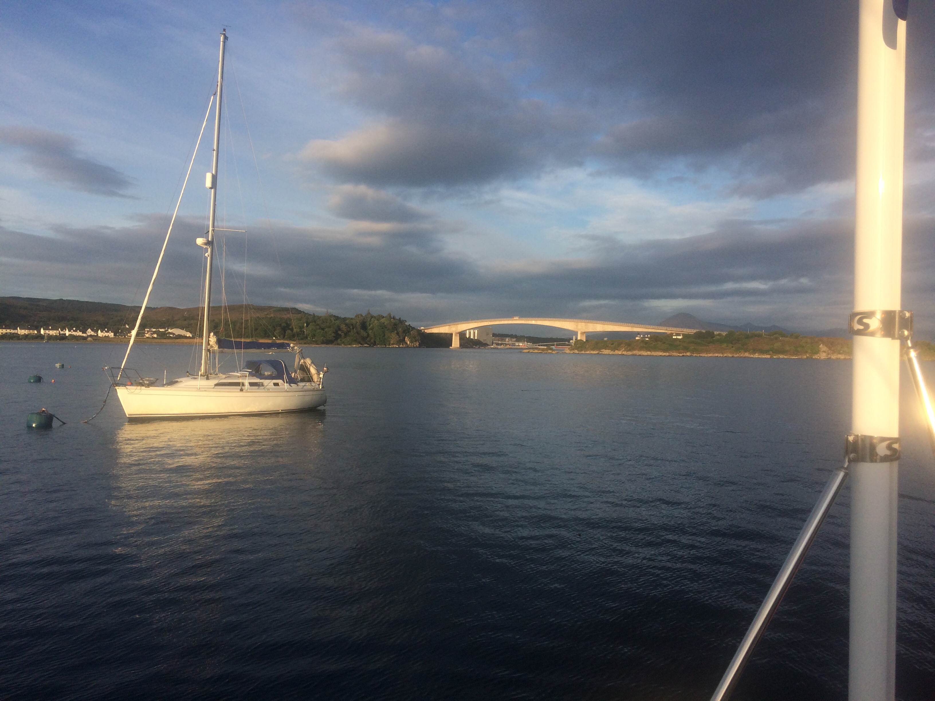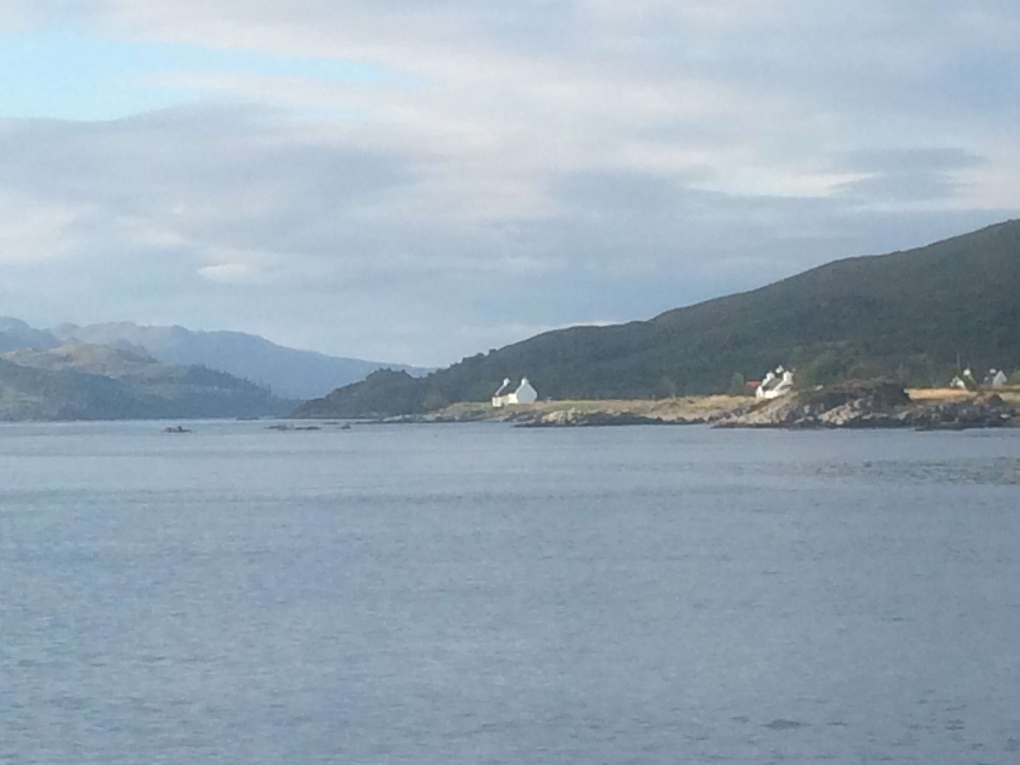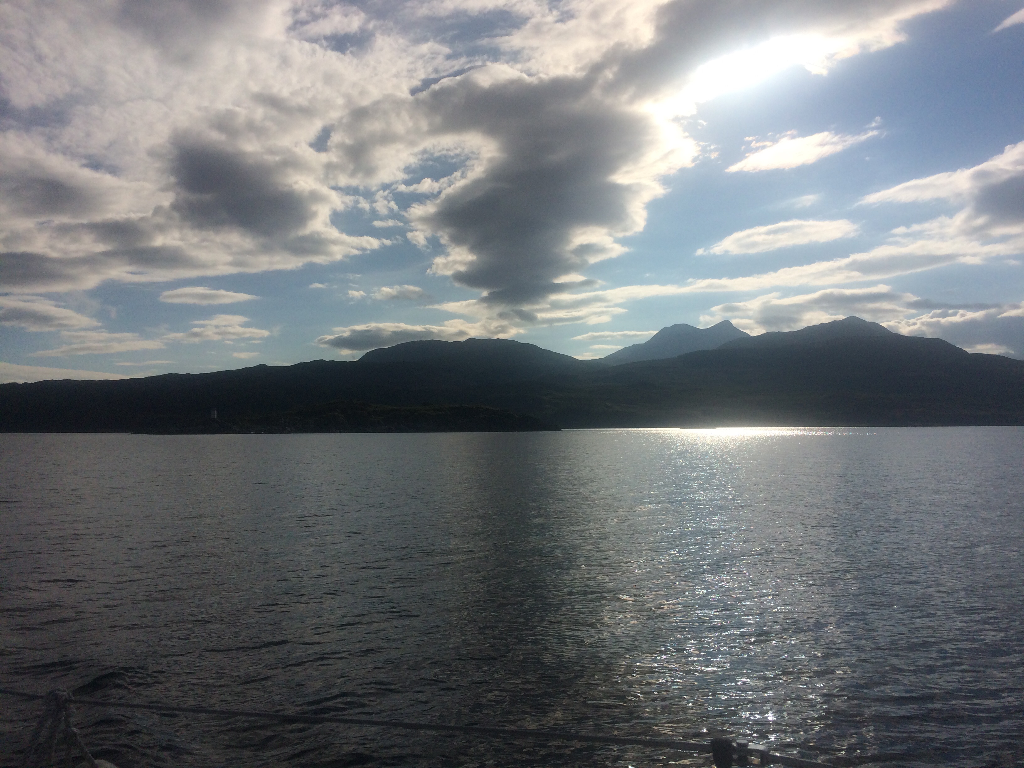 The alarm went at 6 am . It was a nice morning though and no fog thank goodness. Let go the mooring and off we went, leaving the Skye bridge behind . We had to be at the Kyle Rhea by 8 am to have a favourable tide ie in the right direction but not TOO strongly in the right direction. J had judged them perfectly and we sluiced through the little narrow gap between Skye and the mainland with 3 extra knots. Once through we were in a big pond of flat but swirling water as we proceeded towards the sound of Sleat. we passed the place where Gavin Maxwell had lived, and written the iconic book about “Midge” the Otter, called Ring of bright water. We could still see a little cottage and according to the pilot there is a memorial to him there . I remember the book well, but didn’t like the sad ending. All the time passing through amazing scenery as we entered the sound of Sleat. The sun by now was warm but sadly no wind so we had to motor. At one point we came across a pod of common dolphins ….. including mums and babies! I took some video and will try and put some on the blog . Our plan was to aim for Mallaig, a fishing town on the mainland just south of Loch Nevis . Two things however made us change our plans. Firstly, there is a deteriorating weather forecast over the next few days and we think we Are likely to be storm bound for a few nights as Storm Ellen hits the UK. With this in mind we feel we need to press on while we can. The other reason being that the harbour master wasn’t terribly helpful at Mallaig saying we should have given more notice! We contacted Tobermory who couldn’t have been more helpful, So we decided to continue for another 25 miles to Mull. There’s somehow a feeling of “getting back into safety “ when rounding Ardnamurchan point and arriving in the sound of Mull. The scenery and sunshine on the wAy there was absolutely beautiful. Sunny and hot ….. can’t believe it’s going to change so much over the next 48 hours. I even read my book and sunbathed on the foredeck for a while! We had great views back to the black cuillins and to the small isles ( Eigg, Rhum and Muck) as we Passed by. Eventually after 55 miles and 11 hours we got there! It started pouring with rain about an hour before we got there…. which we could have done without! J went off to get a can of diesel before the garage shut, while I tidied up the boat. We ate at mccoghans which was on “eat out to help out” which we had forgotten so a nice surprise to get it half price!!!