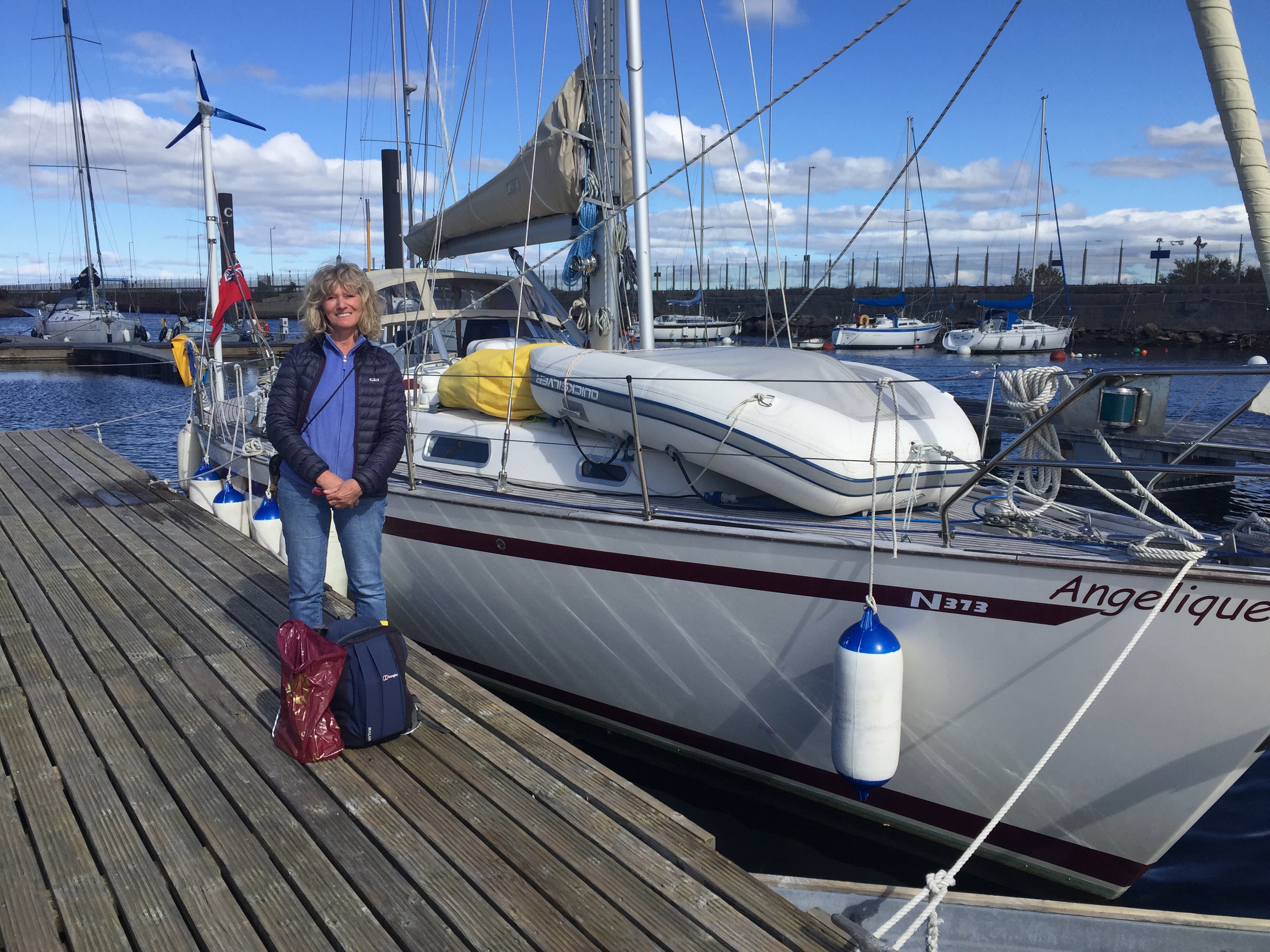 Woke up to sunshine! Poking my nose out of the hatch in our cabin, It felt chilly outside….. definitely autumnal . Maybe that was just because I was about to set off home…. the final leg of my trip. Had my last cup of tea in bed ( kindly delivered by J)before addressing what I needed to pack. I took only the minimum home in my rucksack along with my packed lunch .. and mask for the train! I wasn’t looking forward to wearing that for nearly 6 hours. I feel for everyone having to wear them all the time. Once breakfast was over, the packing and sorting done… I took a cuppa up to the front of the boat and sat on the dinghy for a while …. talking to Angelique and thanking her for a wonderful journey and for keeping us safe throughout. Some sailors in a boat opposite on the pontoon obviously thought me slightly bonkers and asked me if I had coffee or rum in my mug! In the nicest possible way!