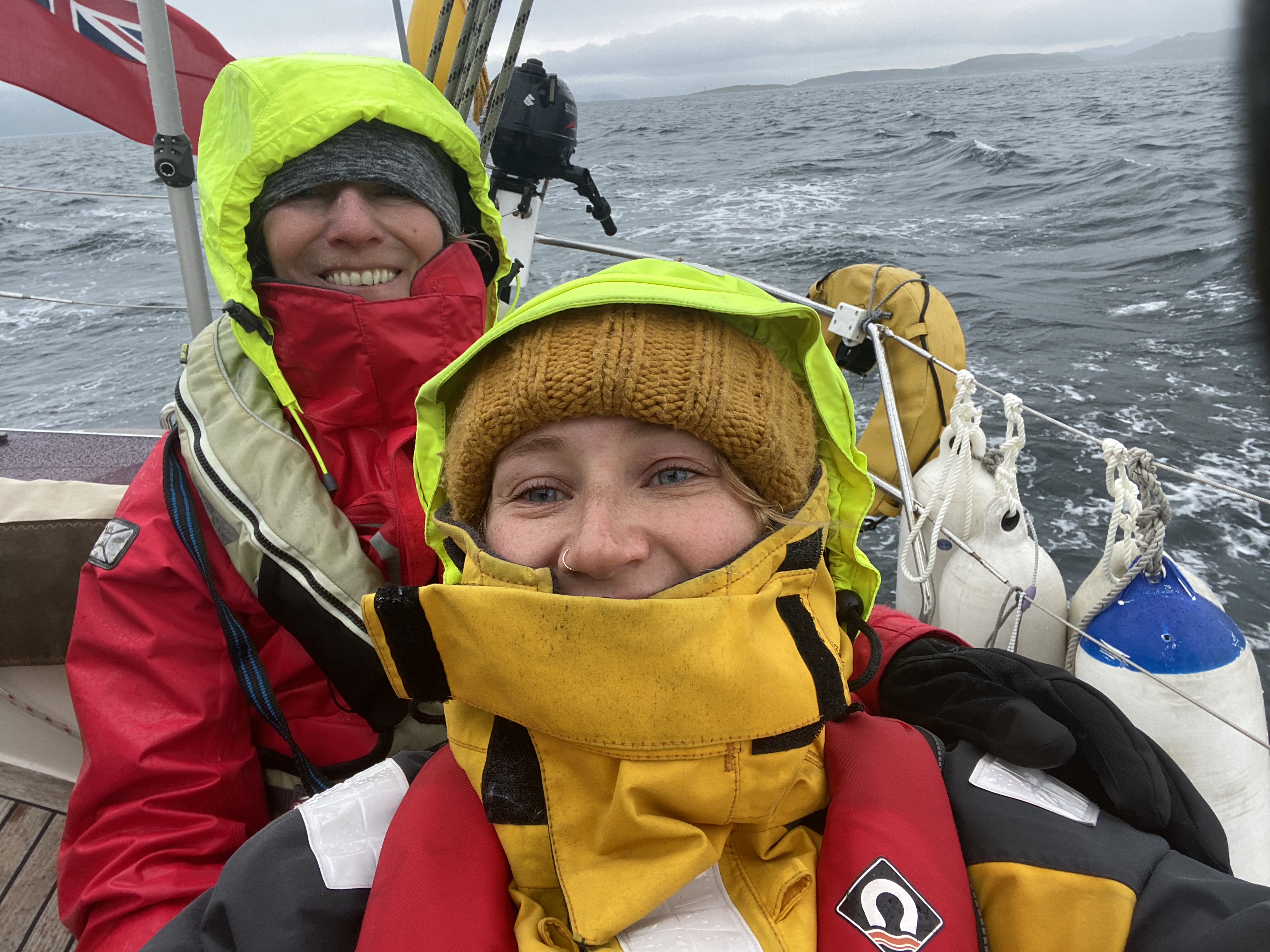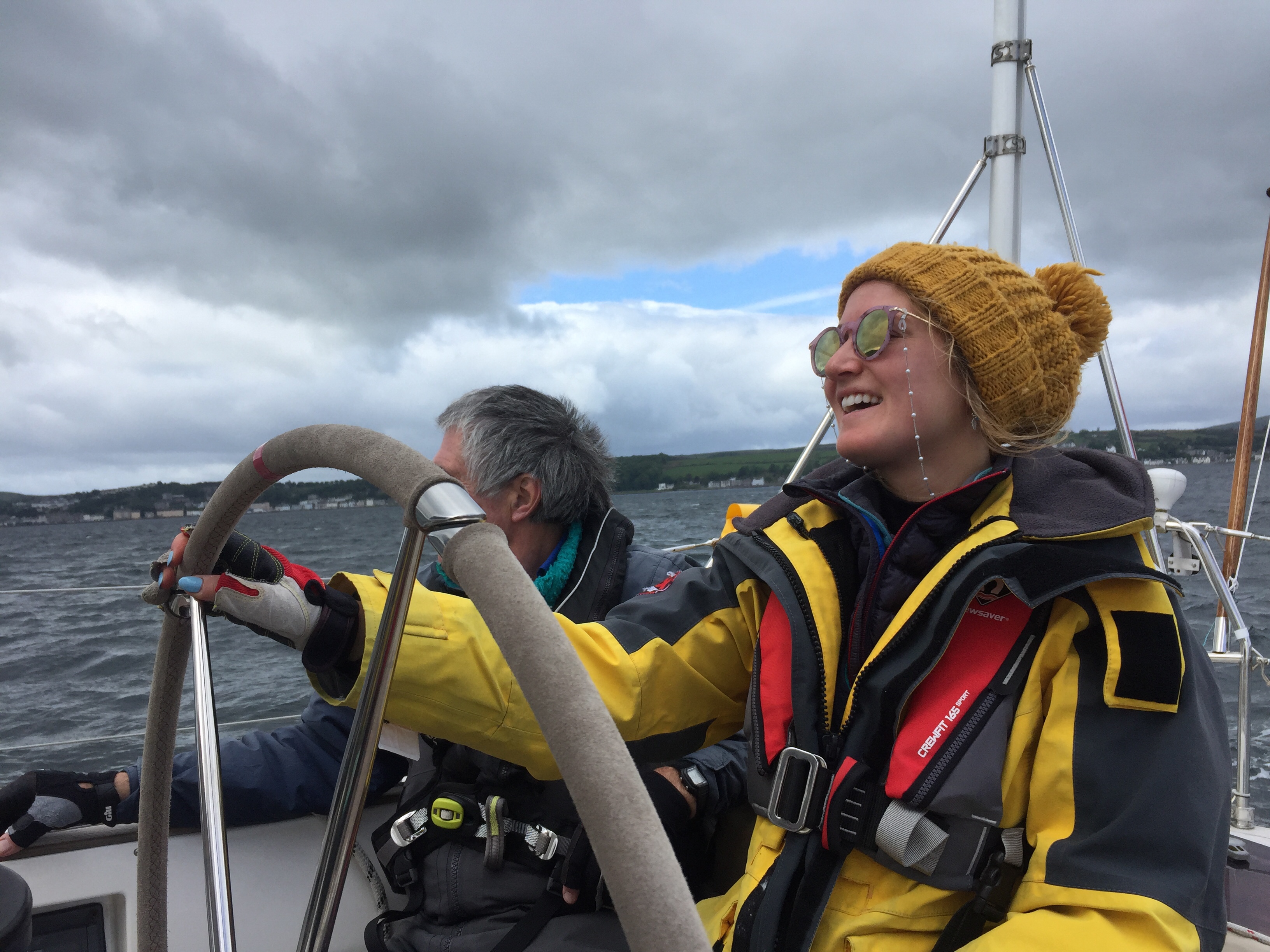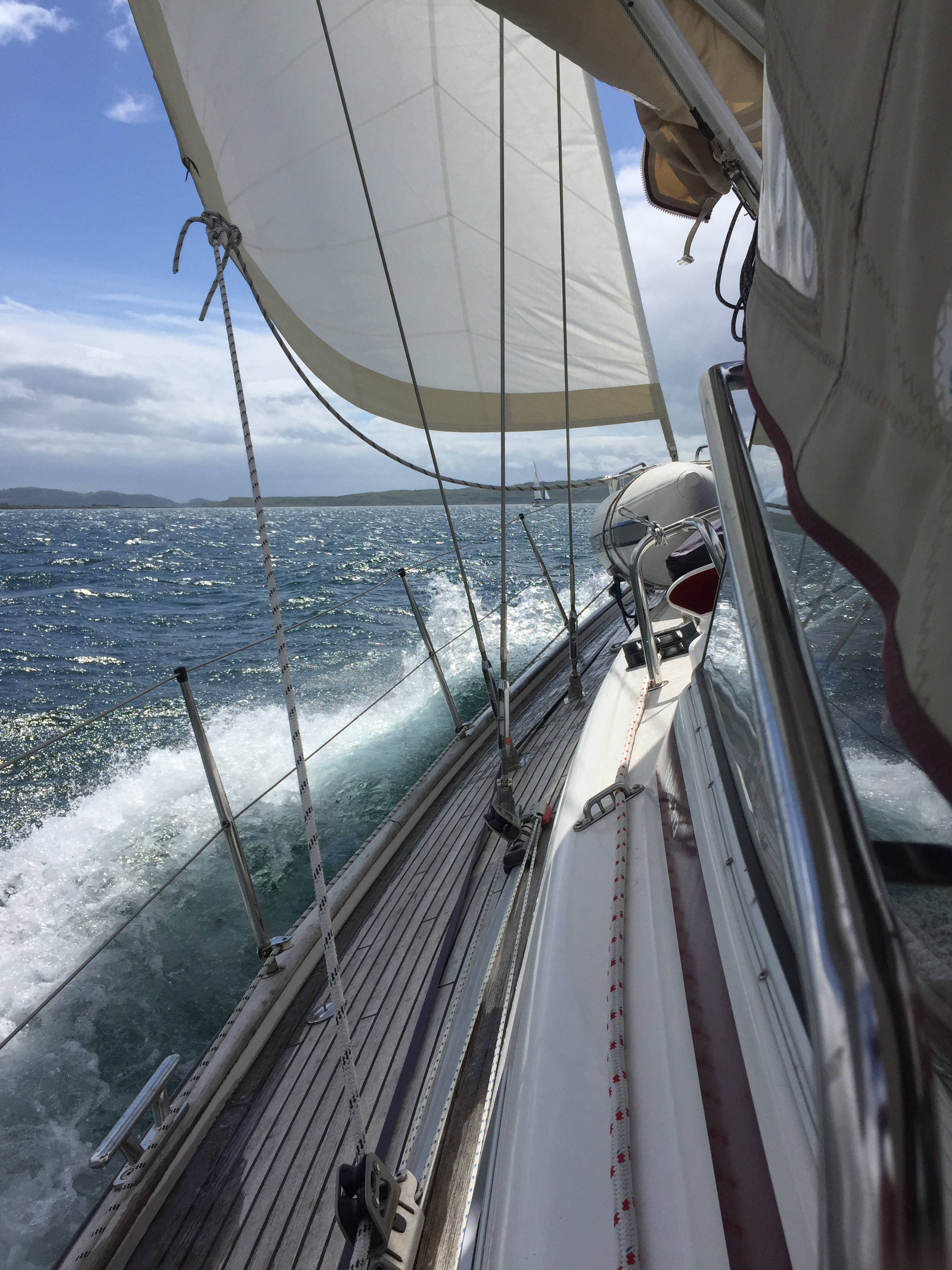 Not a particularly comfortable night . As were were near the outer limit of the marina, we weren’t very protected from the very strong gusty wind that had sprung up overnight. Getting off the berth was potentially a bit f s nightmare as we had another boat outside us which we had to avoid getting blown onto. With carefully worked out slip lines and help from both neighbours , The final manoeuvre went surprisingly well!!! Once out in the bay, it all seemed quite peaceful. Typical! We had a cracking sail home as the wind was increasingly from the west so we were going quickly and both A and W did great helming in tough waves with wind behind. We came down the firth of Clyde between great Cumbrae and little Cumbrae and then East to Troon. We got back around 4 ish and enjoyed going to Morrison’s and buying nice stuff for tea! Once all the jobs were done we enjoyed the evening sitting in the cockpit having bit of a celebration bubbly with nibbles! After salmon spuds and peas we played perudo and J won!!!