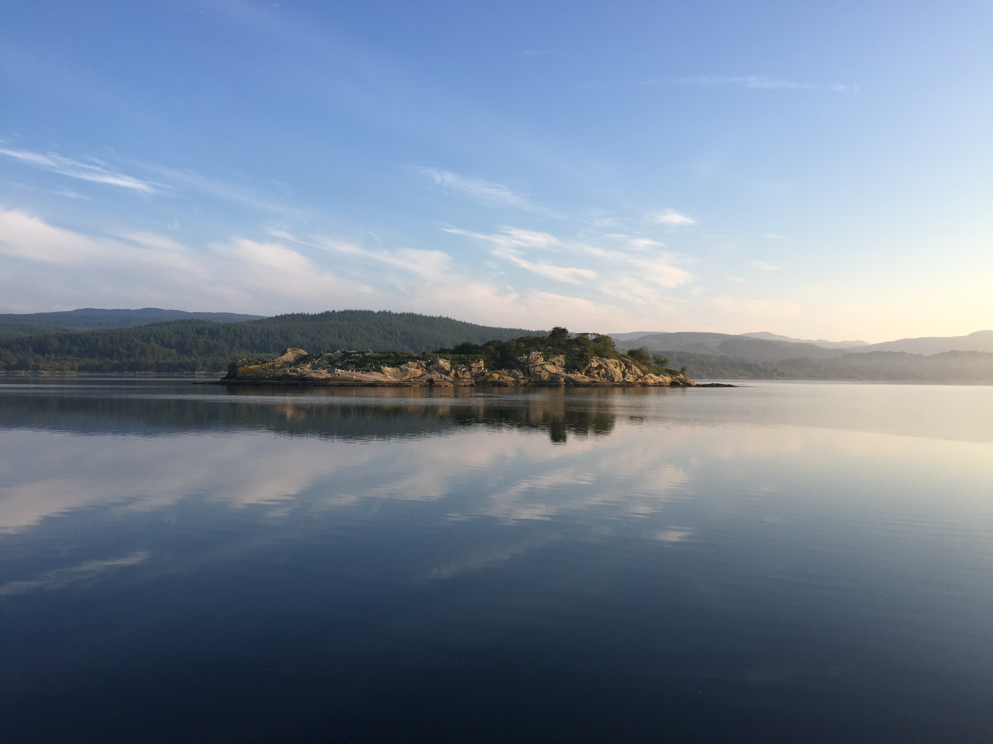 I woke about 0530 and all was peaceful. I could tell the sun was up so quietly clambered out of bed just to view the scene. I stood on deck and took night perfect morning. The sun was indeed up casting a golden glow on the world and the water was completely calm with uninterrupted reflections. The sea birds on the nearby island were squawking wildly which seemed to strangely add to the peace. Returned to bed and sleep for another hour or so.