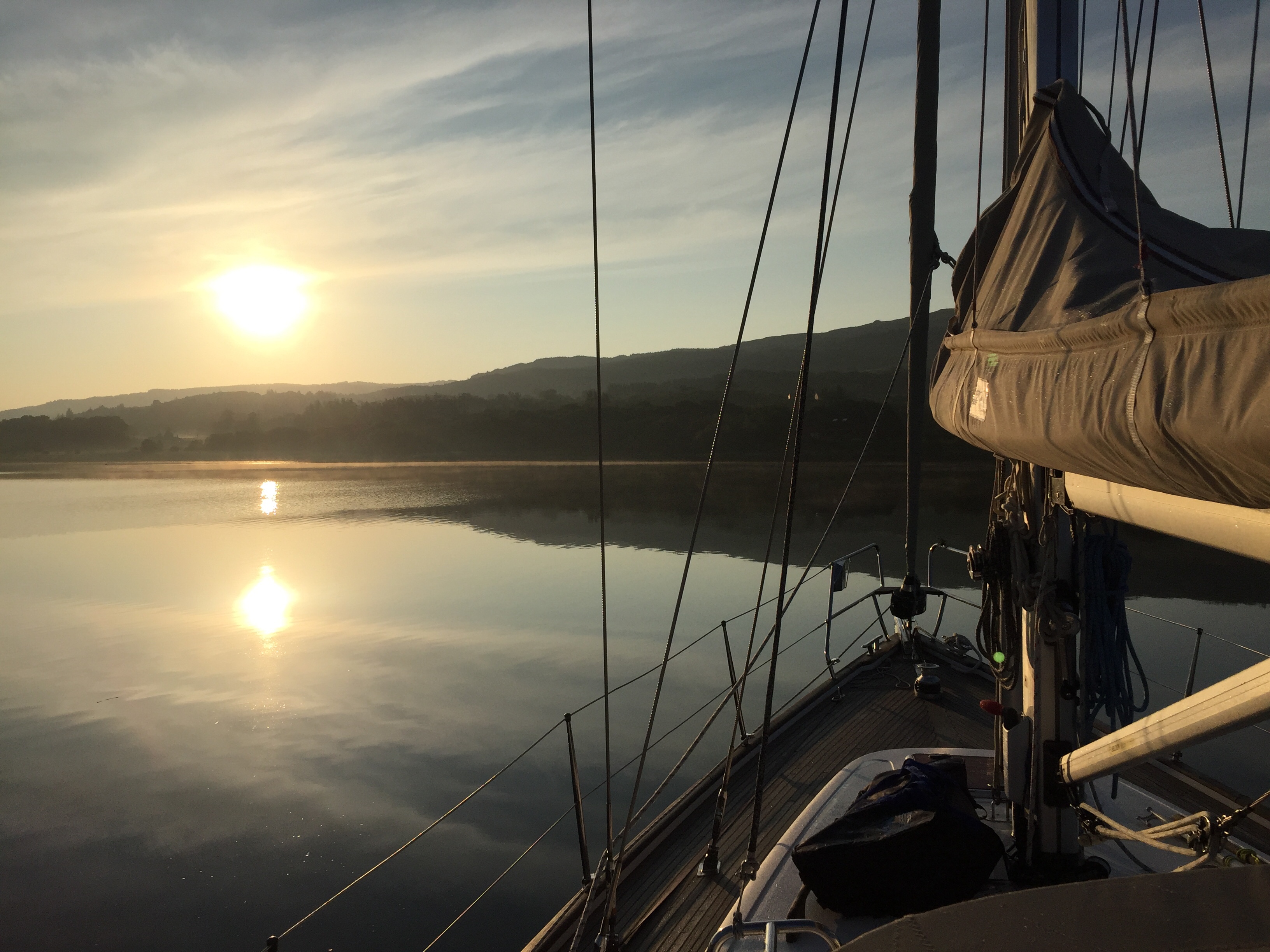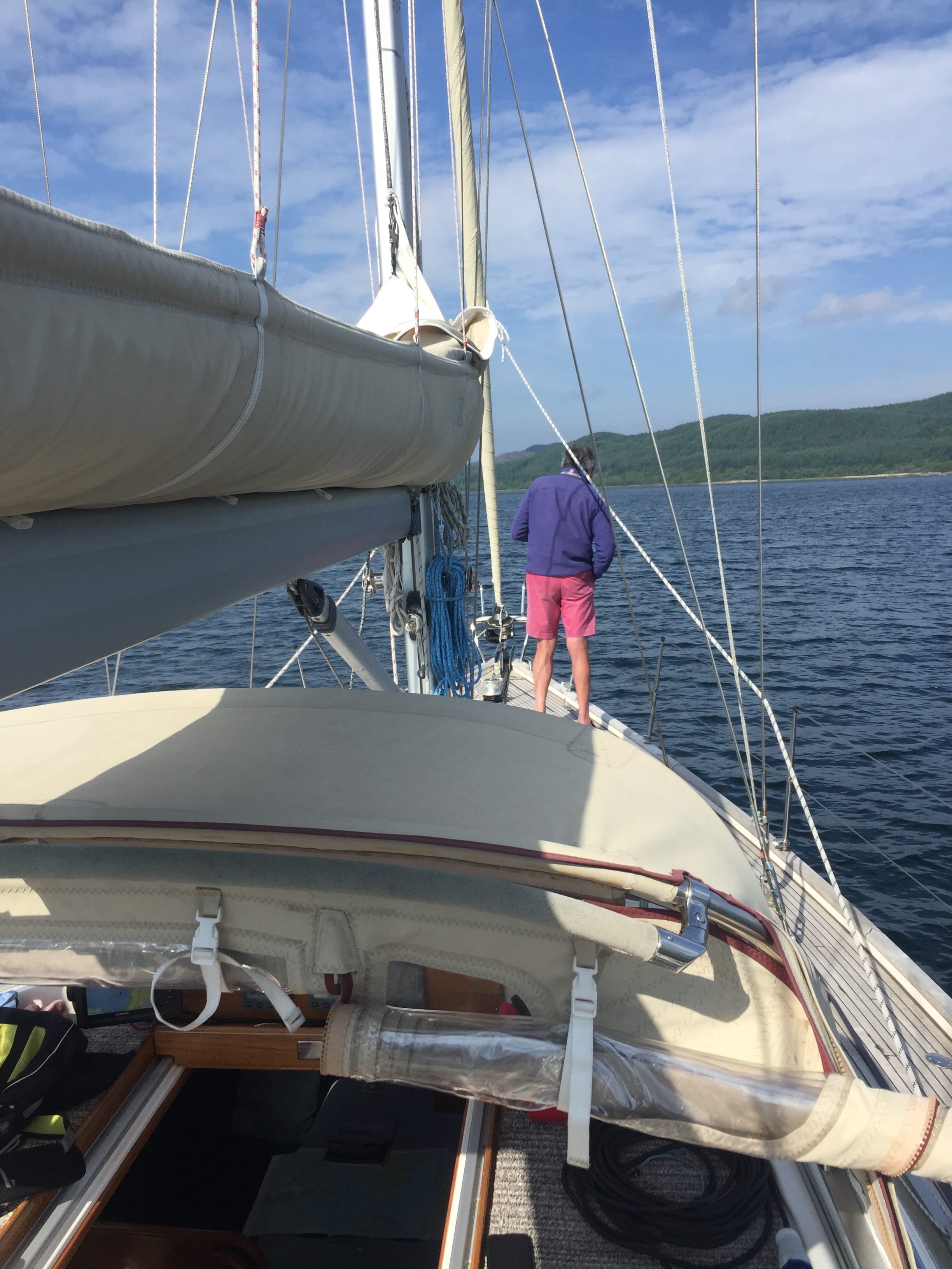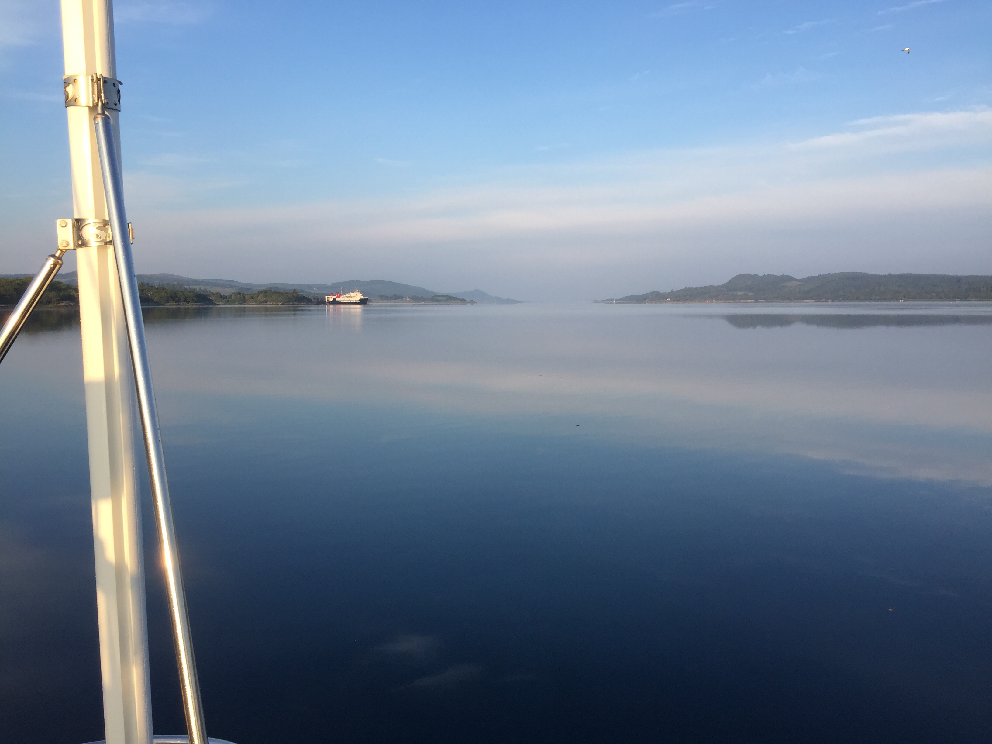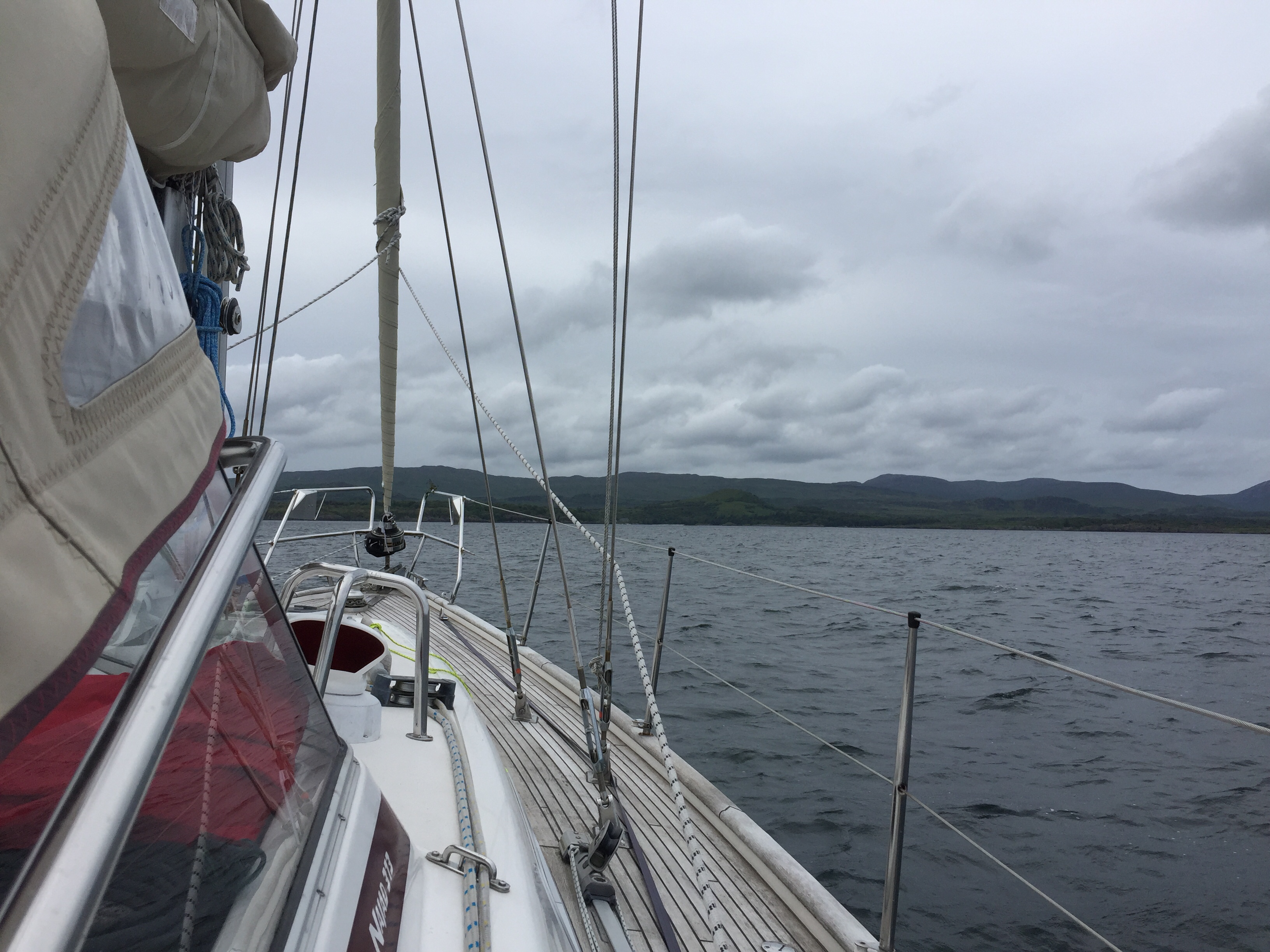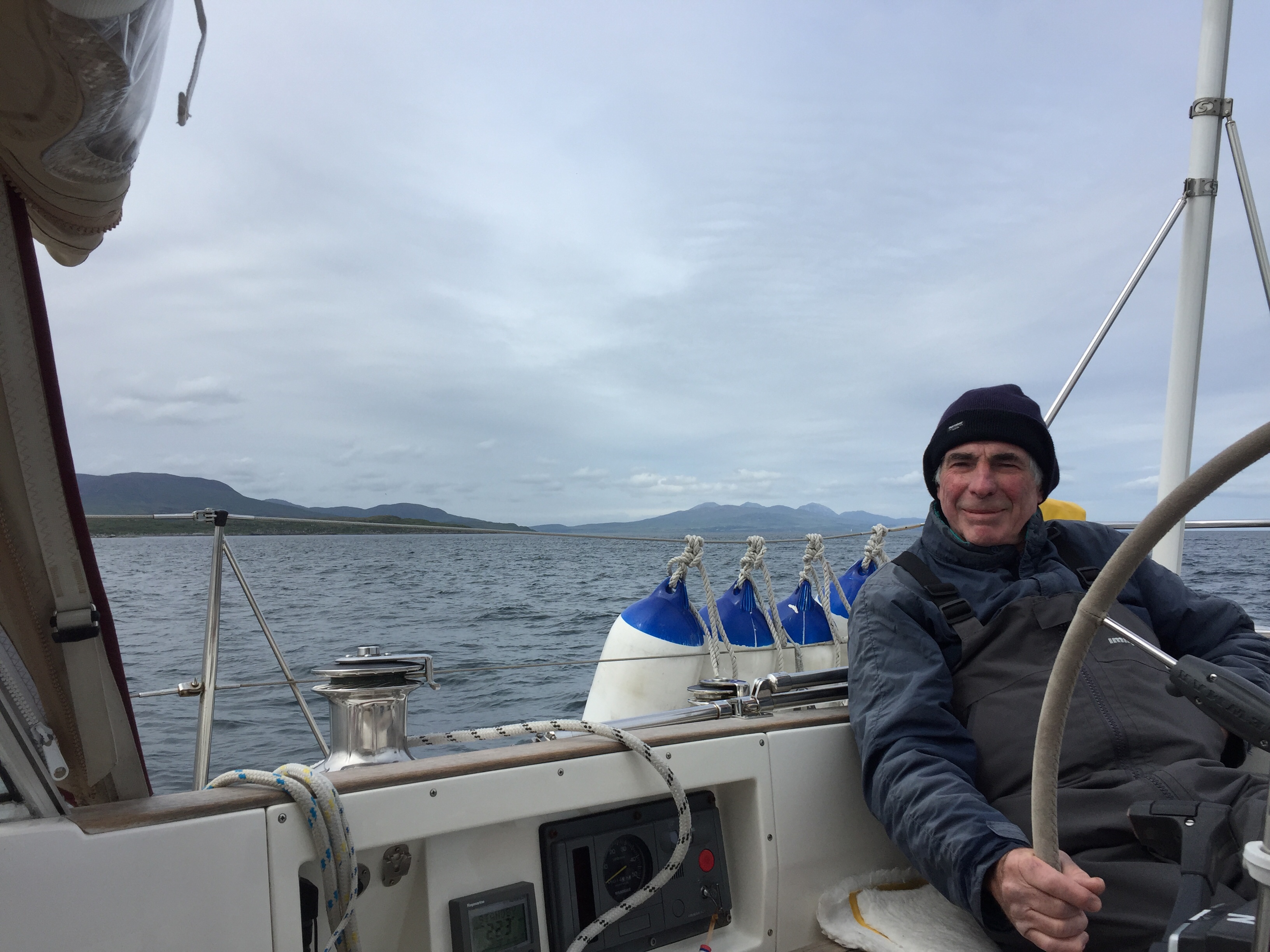 We set off from the lovely anchorage at Rhu point in a little breeze which was just rippling the surface. The sunshine was turning hazy and the air temperature chilly , which has been a feature of this year. the Islay ferry came past but no panic! Some breeze stung up before exiting the Loch so we put the sails up and headed towards Islay round the northern point of Gigha. We had to then roll away the headsail and motor for a bit. I wrote the blog and we had Cornish pasties for lunch still under a sun and cloud sky. Sadly the sun got less and the cloud more, but the wind kindly blew more from the west and eventually we approached the little white lighthouse signalling the Ardmore islands. This couldn’t be wilder or feel more remote. It’s an archipelago of islets, all it seems home to a huge number of grey seals. We almost felt we were intruding. We anchored at the far end after picking our way through carefully according to the plotters and the pilot. We sat at anchor tide rode for sometime, as the tide pushed us one way and the wind the other. A slightly uncomfortable position as you want to be protected from the wind by pointing into it. Never mind we sat and watched the seals and ate peanuts beforeJ cooked supper . I tried to work out port Ellen tides which was very challenging and I’m still not sure are right. 🤔