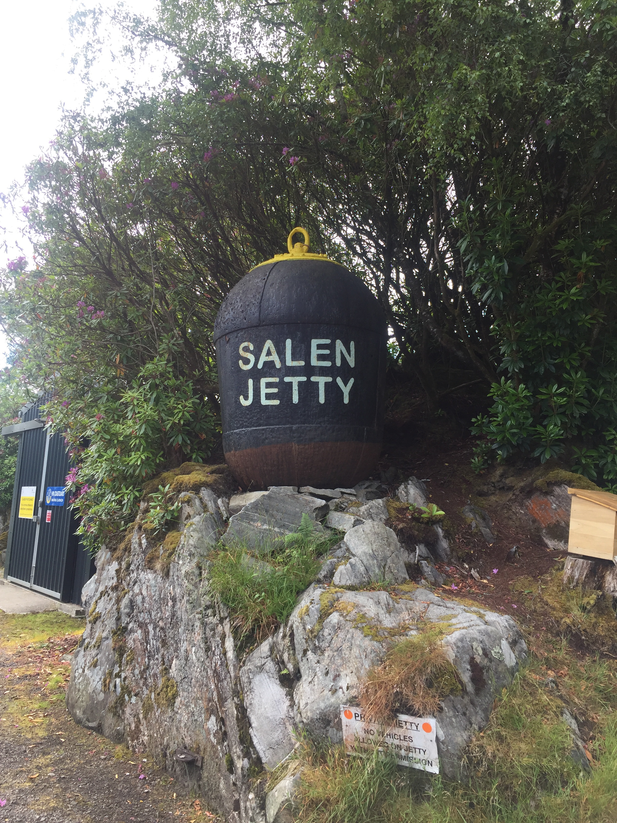 Weather still dry, bright but cloudy. We left Loch Drambuie and pottered up Loch sunsart under a combination of sail and motor. We had made a plan with our friends from Arwen to meet them at Salen Jetty this evening. As we didn’t have far to go we investigated some anchorages that we hadn’t been into on the way. A lot of the terrain in these Scottish lochs and anchorages is rock strewn,. This makes for interesting navigation at times and I’m constantly amazed that anyone was brave enough to be bothered with the challenge before the advent of detailed digital charts that plot your exact location by gps. I apologise for having to admit that.
