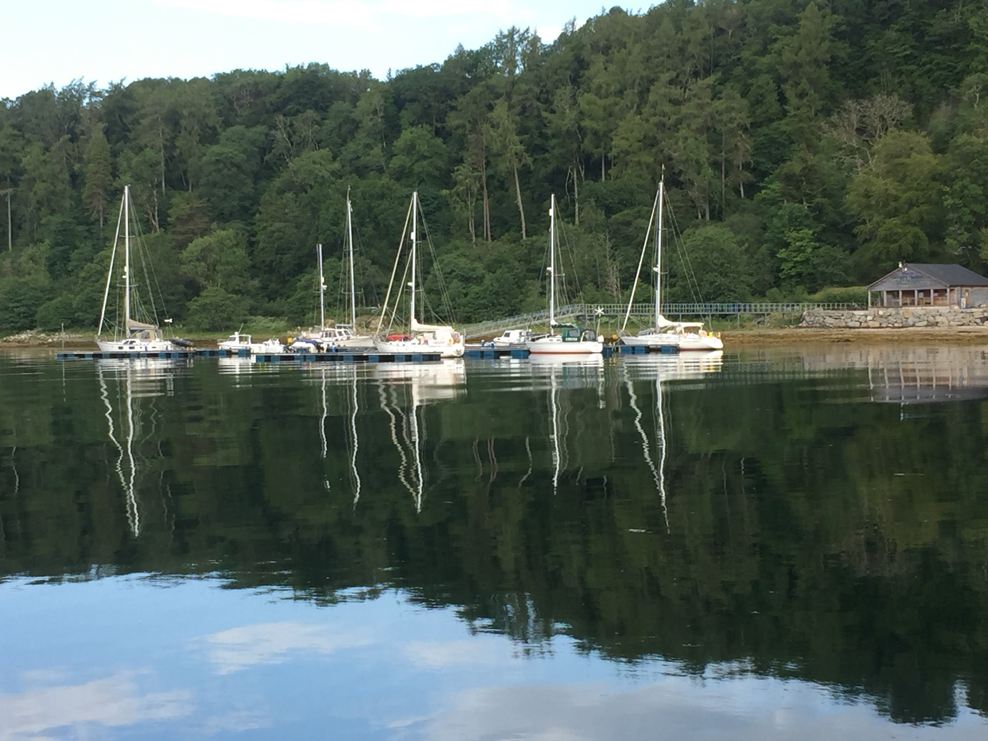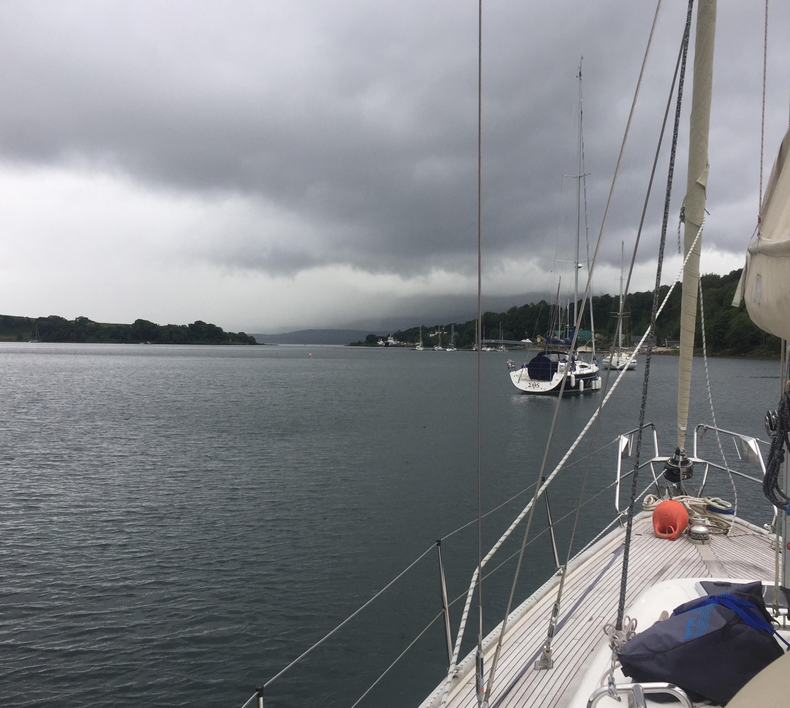 A very wet night! Not particularly windy but one of those Scottish days when it is just dreak! I was glad we had decided to move as it was near enough the marina to pop over in the dinghy. We’d already decided to have a day staying put and planning our next week or so trip. Between showers we managed a trip ashore.. I had a shower and amazingly had remembered to take pound coins and 20 p for the hair dryer even… just forgot my shampoo.☹️ As the day went on many more boats came to pick up moorings probably to get out of the weather, but interestingly there were only a few boats on the pontoons. We decided to go and anchor at the head of the Loch in the early evening, near the castle which was actually lovely and peaceful and good muddy holding!