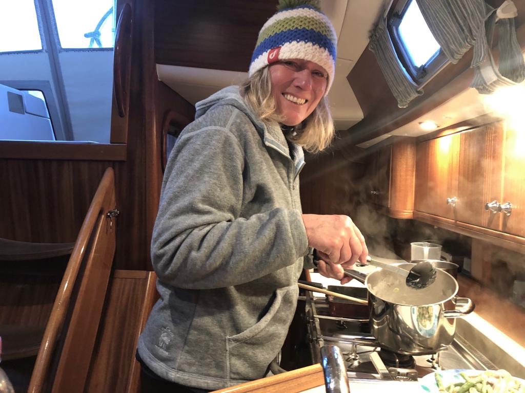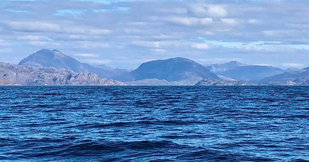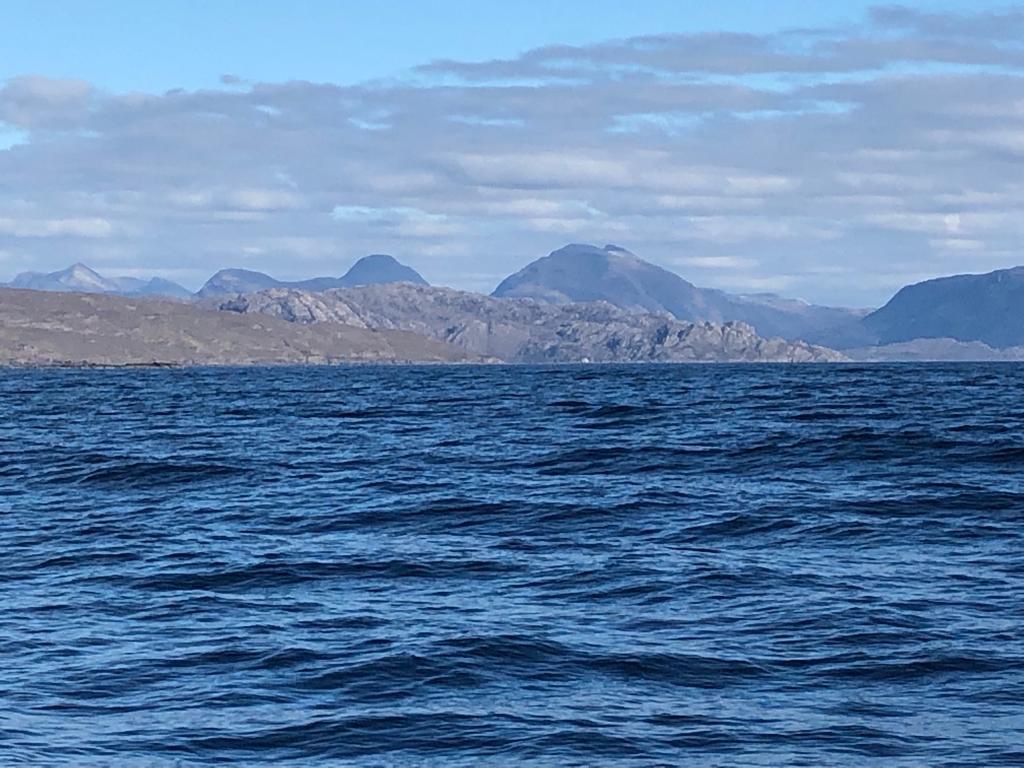 It had been a peaceful night and the water was calm. We let go our big friendly orange mooring buoy and headed for the bridge. Some bridges you have to work out lots of maths to make sure you’ll fit under, but this one is high enough not to worry. Heading out from this point really does seem like a gateway and that we’re leaving civilisation behind. The next “Town “ will be Stromness! 😬 . Still a cold Northerly wind blowing about force 3 so we started tacking up the Inner sound, past the Crowlin Islands, past Raasay and Rona on the left, and all the stunningly majestic mountains of Torridon on the Right. The edge of the grey band of cloud above us, got gradually nearer and eventually we were in icy sunshine. Tacking all day means the boat is going towards the wind and it was cold and physically demanding. We were glad to eventually turn into Gairloch where we knew there were visitors moorings at Badachro. By this time it was 1915 and we were too tired to get the dinghy off and go to the pub. Maybe tomorrow. We’ve also got to sort the navionics plotter business out and fix the gas and go up the mast……😳 tomorrows another day…