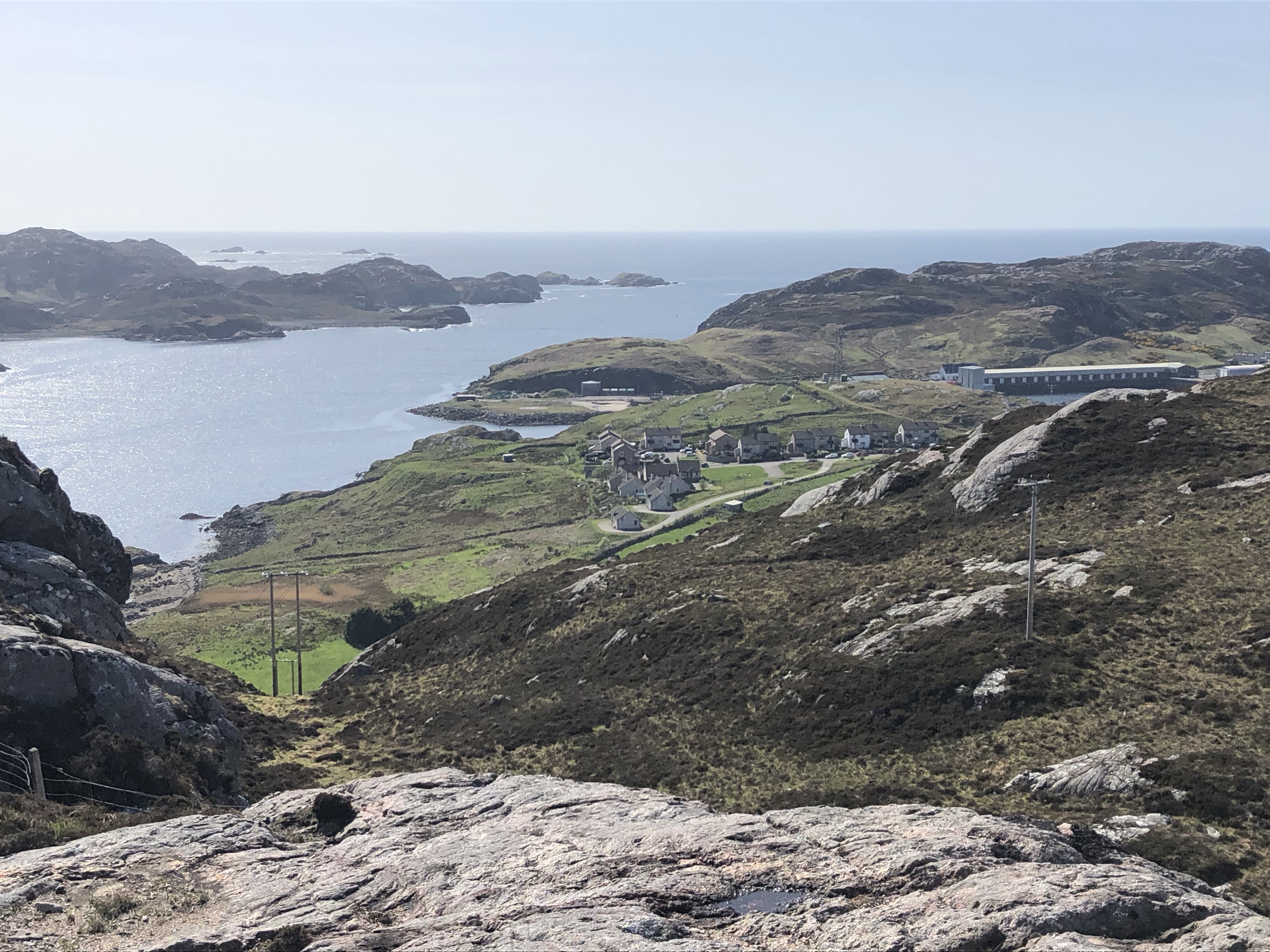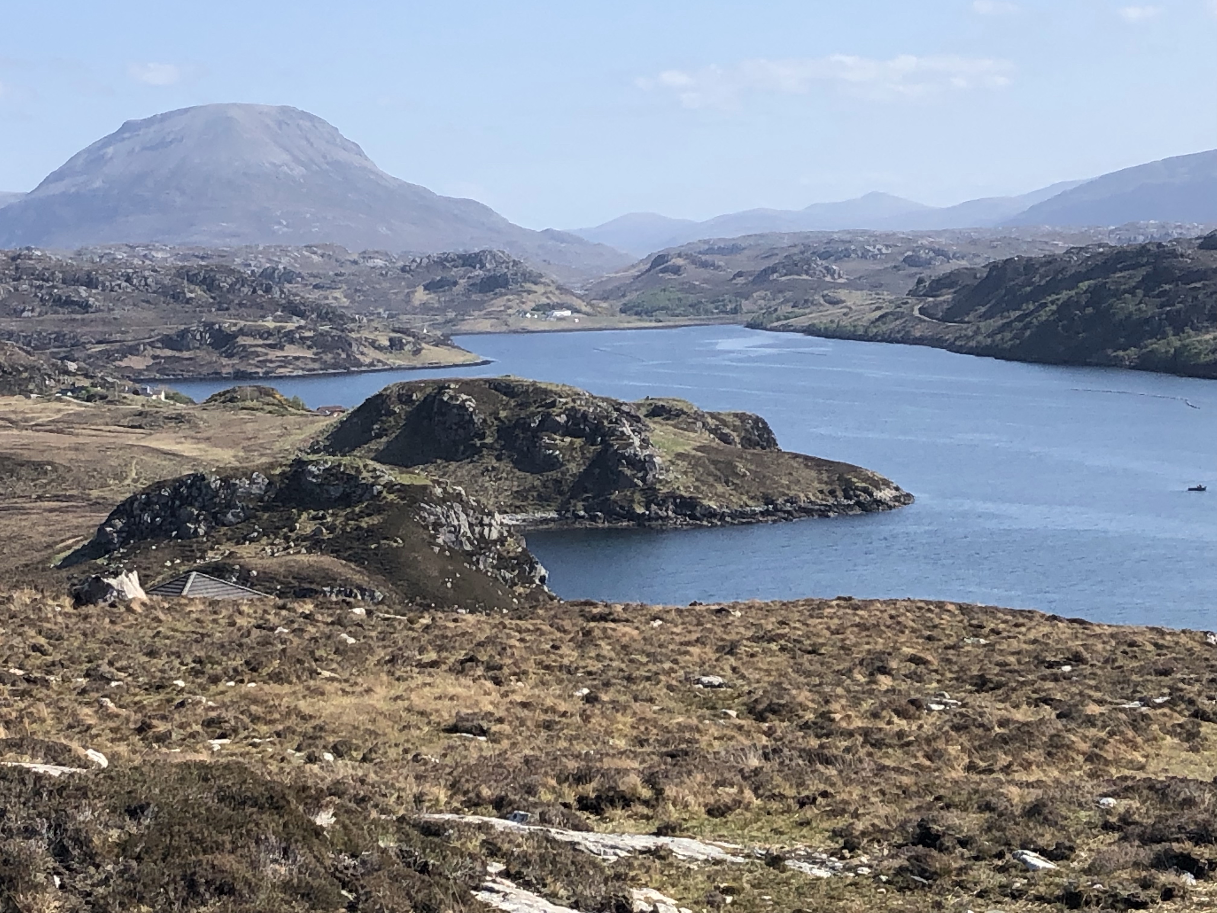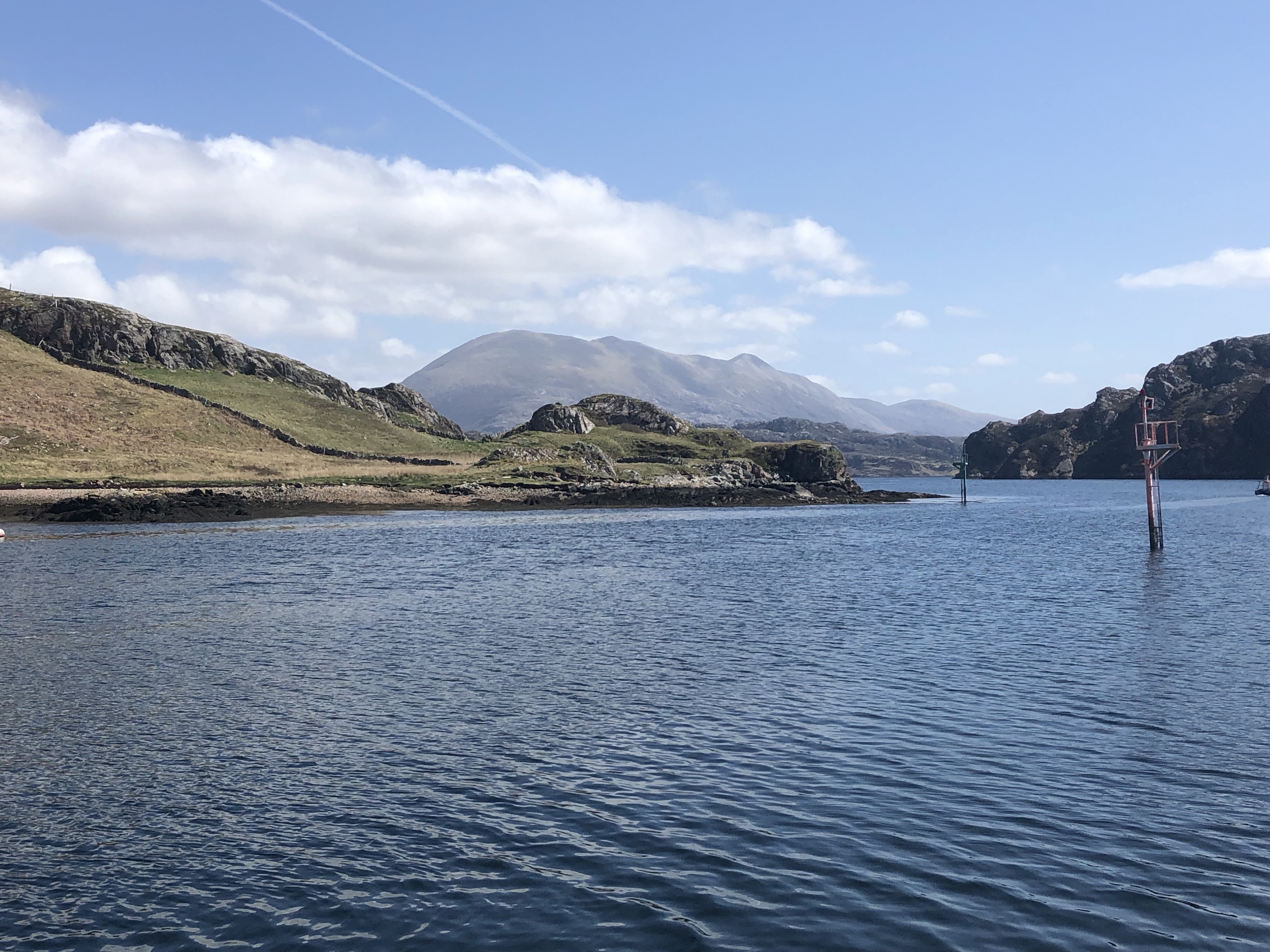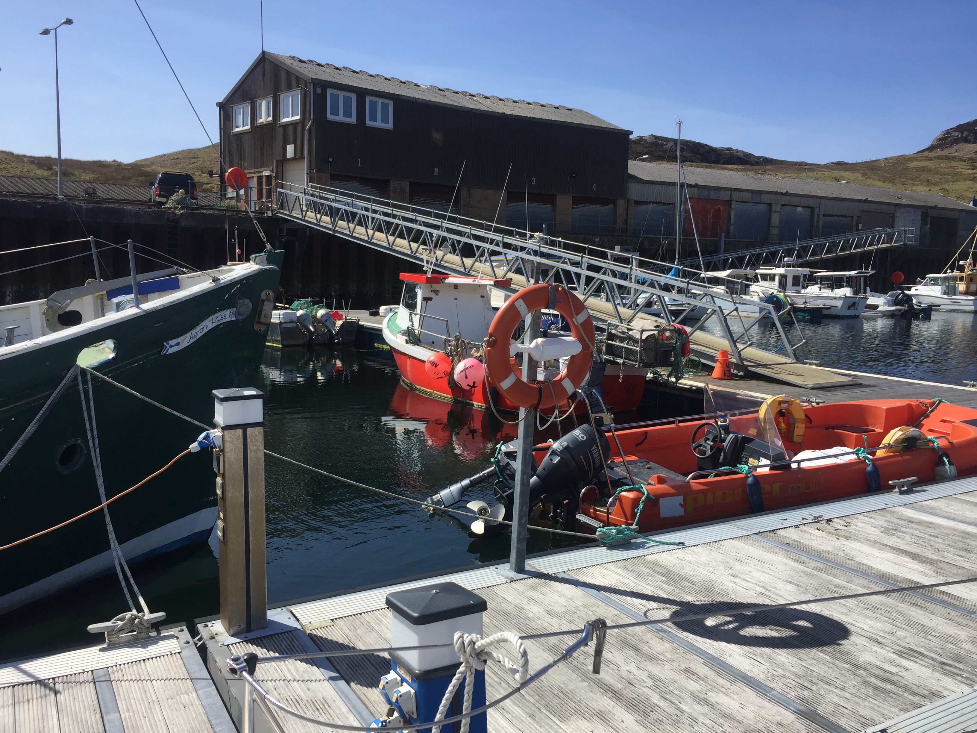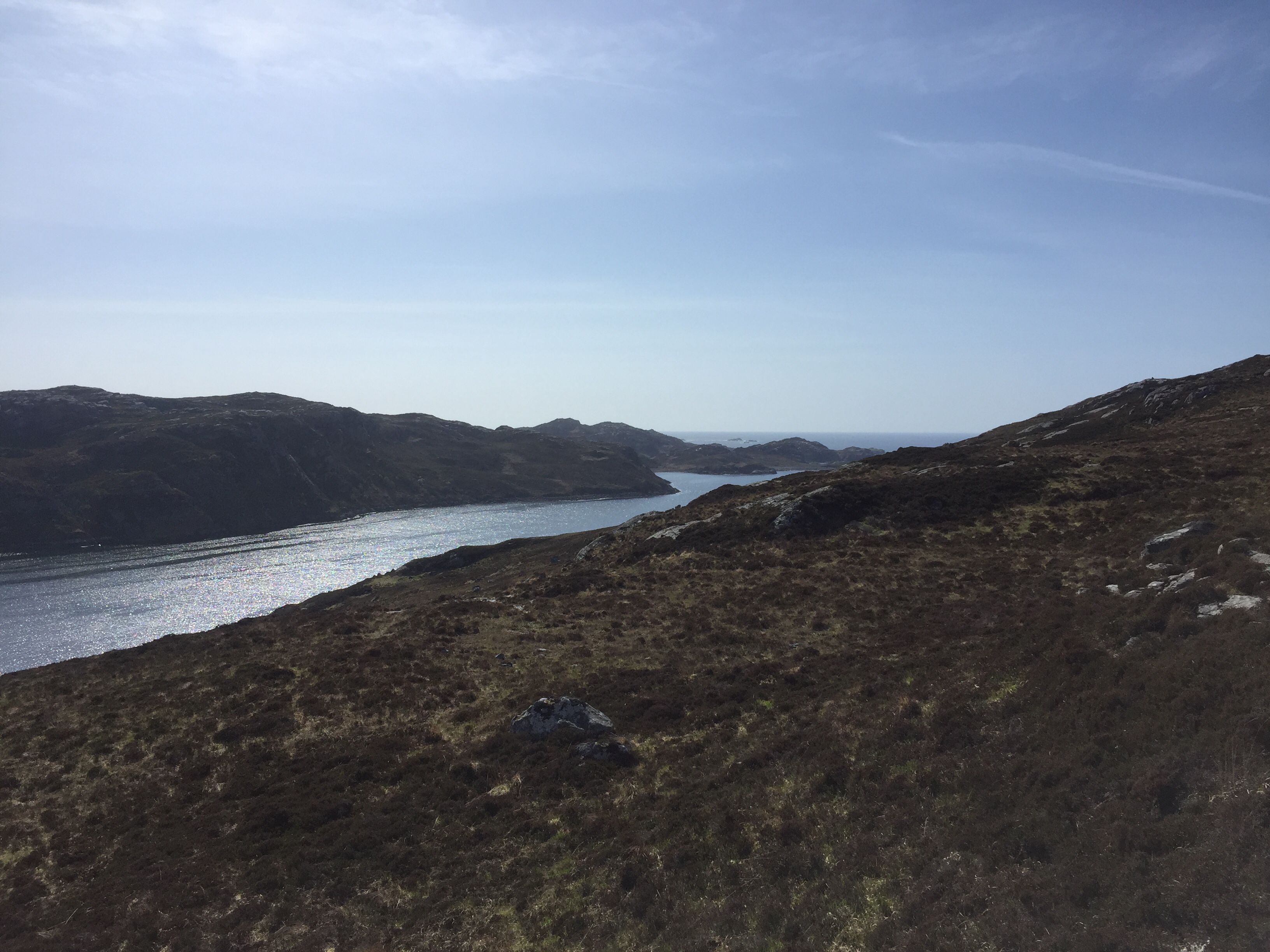 Today dawned bright and sunny transforming Kinlochbervie into a magical place. We noticed that the main pontoon was completely empty so decided to go on over after breakfast. Once moored we noticed all the electricity points had padlocks on them ☹️ . Julian went to see the HM but he wouldn’t be back till Monday apparently . Anyway we discovered that some had padlocks that didn’t actually padlock anything together 🤗. Happy days! We then set to to replace the worn clevis pin which holds the bin to the mast. Bit of a palava ( as my mother would have said) ! …. but we did it thanks to very calm conditions, and a lot of patience. Once that was done we went for a wonderful walk the other way .., ie following loch Inchard inland. The pictures show what we found!