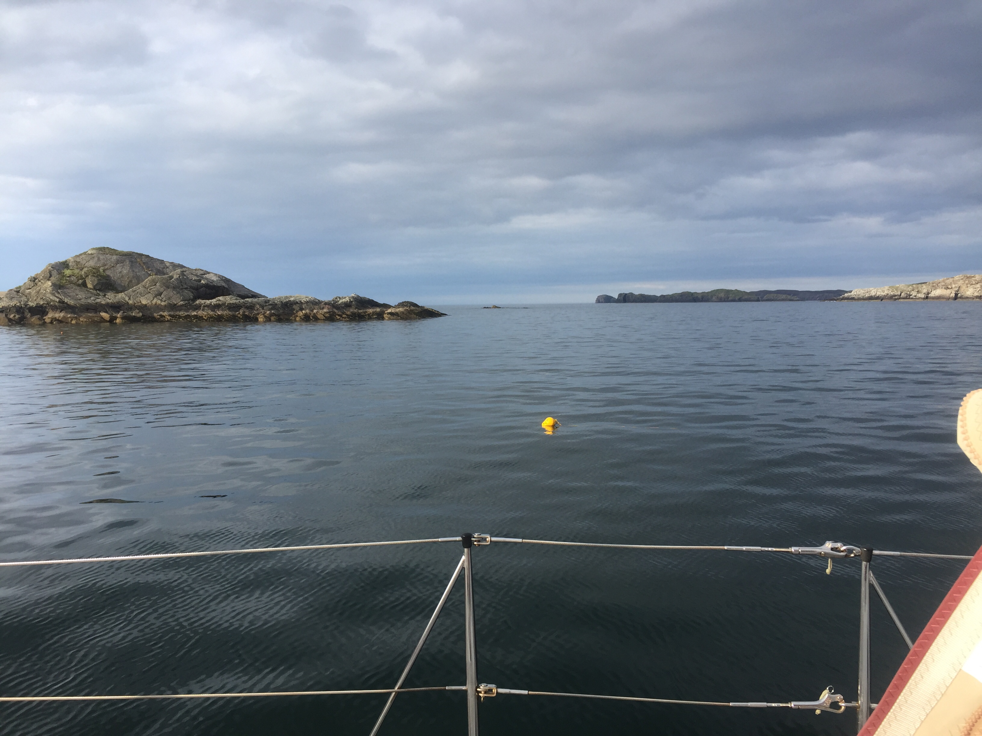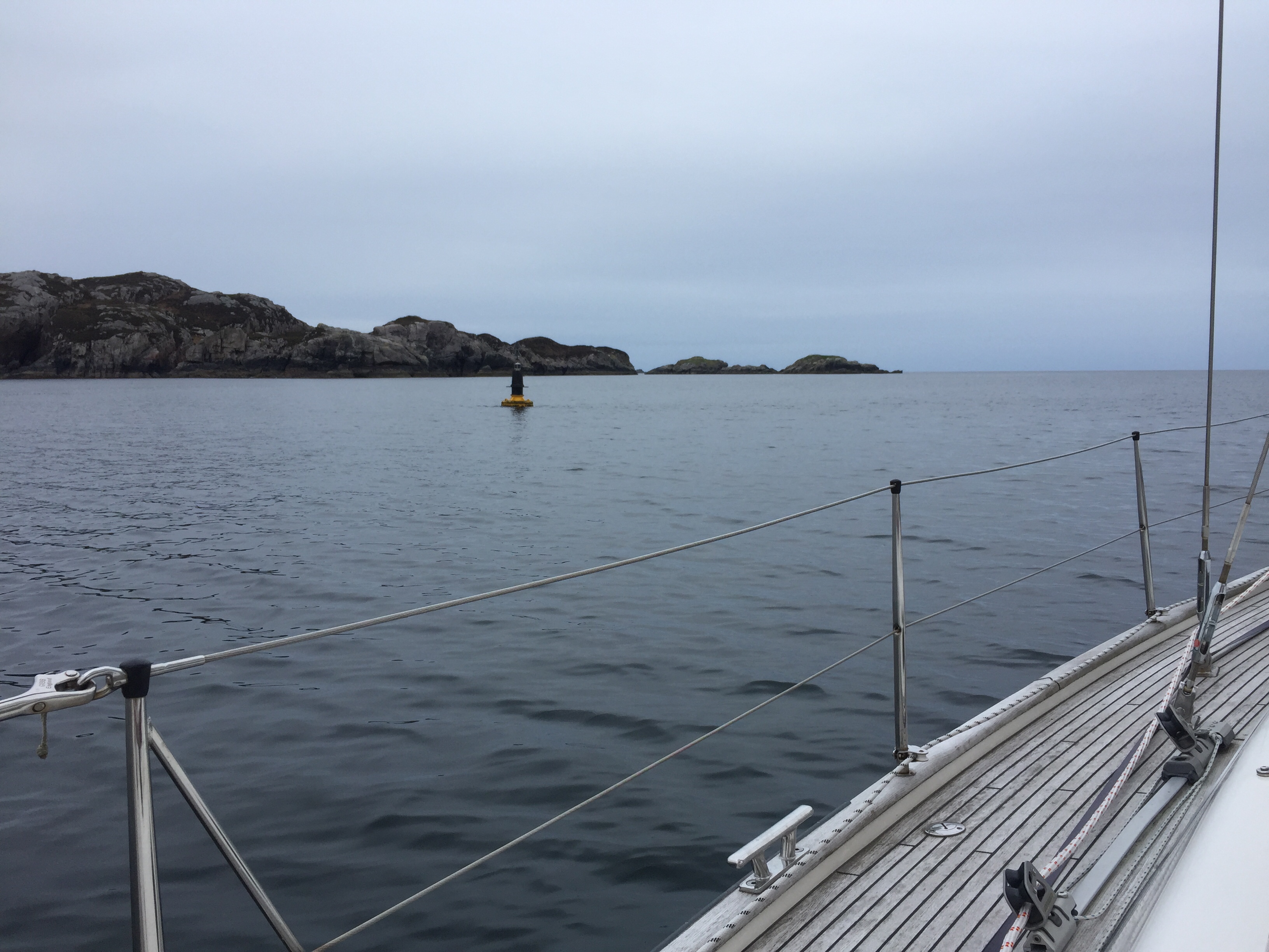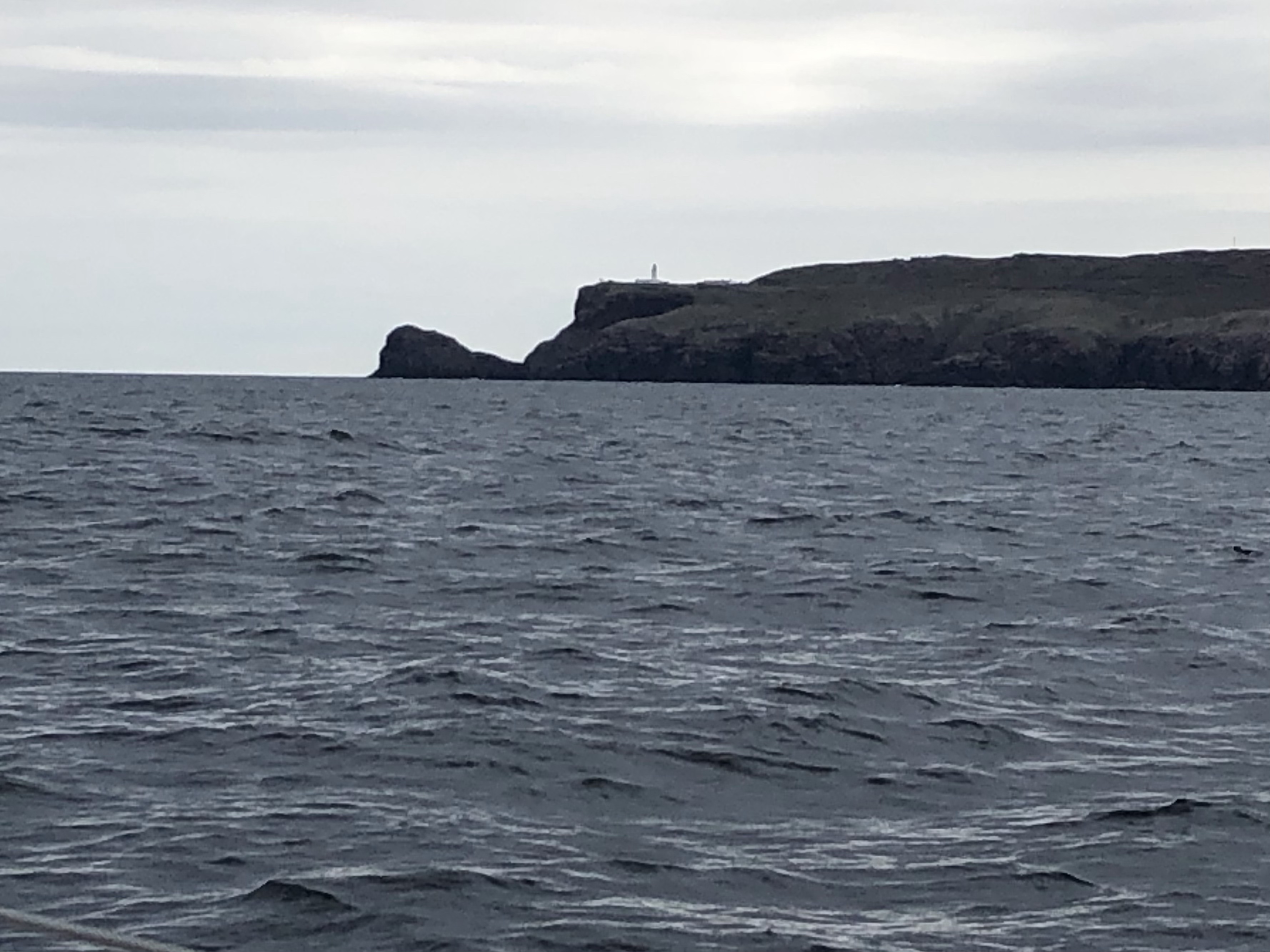 I have been thinking about this particular trip for about 3 years.. ever since we decided to do this. So quite a strange and exciting feeling when the morning eventually happened. The alarm went off at 6 as we had to be away by 8 am in order to get to Cape Wrath at slack water ( when the tides are at their weakest) . The weather was kind. It seemed calm and dry, if not as sunny as yesterday. We put up a full main and headsail and headed north under a southwest wind . The wind strength was perfect… 10-15 knots . We were able to see cape Wrath as soon as we turned out of Loch Inchard and were able to basically sail straight towards it. The scenery of the coast was stunning but all looked quite gloomy because of the grey light. Birds accompanied us. We saw no ships. Approaching CW I was waiting for the water to become lumpy and horrid with all the notorious reflected waves. I had studiously avoided looking at the pictures they love to put in the pilot books! As it happened.. today it was fine! We got there at exactly 1057 and although there was a swell, there was no white water and it was calm enough for us to take the inshore route, inside Dulic rock. Such a lonely place with the white lighthouse perched way up on the massive black cliffs looking north to the Faroe Islands and Iceland. After turning corner we trimmed the sails, pulling them in as it was more of a reach to get to our destination of Tamline bay in the Kyle of Tongue on the north coast. The wind eventually dropped and we motored for the last hour . The anchorage we were looking for is a little community around a beautiful sandy bay surrounded by the Rabbit islands. I can only presume there are a lot of rabbits on them or maybe they look like rabbits? 🤔 We anchored using a trip buoy as apparently there are many old mooring chains on the ground and you don’t want to become attached to one. The trip buoy means you can pull the anchor so it unhooks its hooky bit first, thus freeing it from anything it might be caught on. We had the rest of the delicious spaghetti Bol that J had made and had an early night ……. ready for horrible early start tomorrow. It was a beautiful evening and a special anchorage.