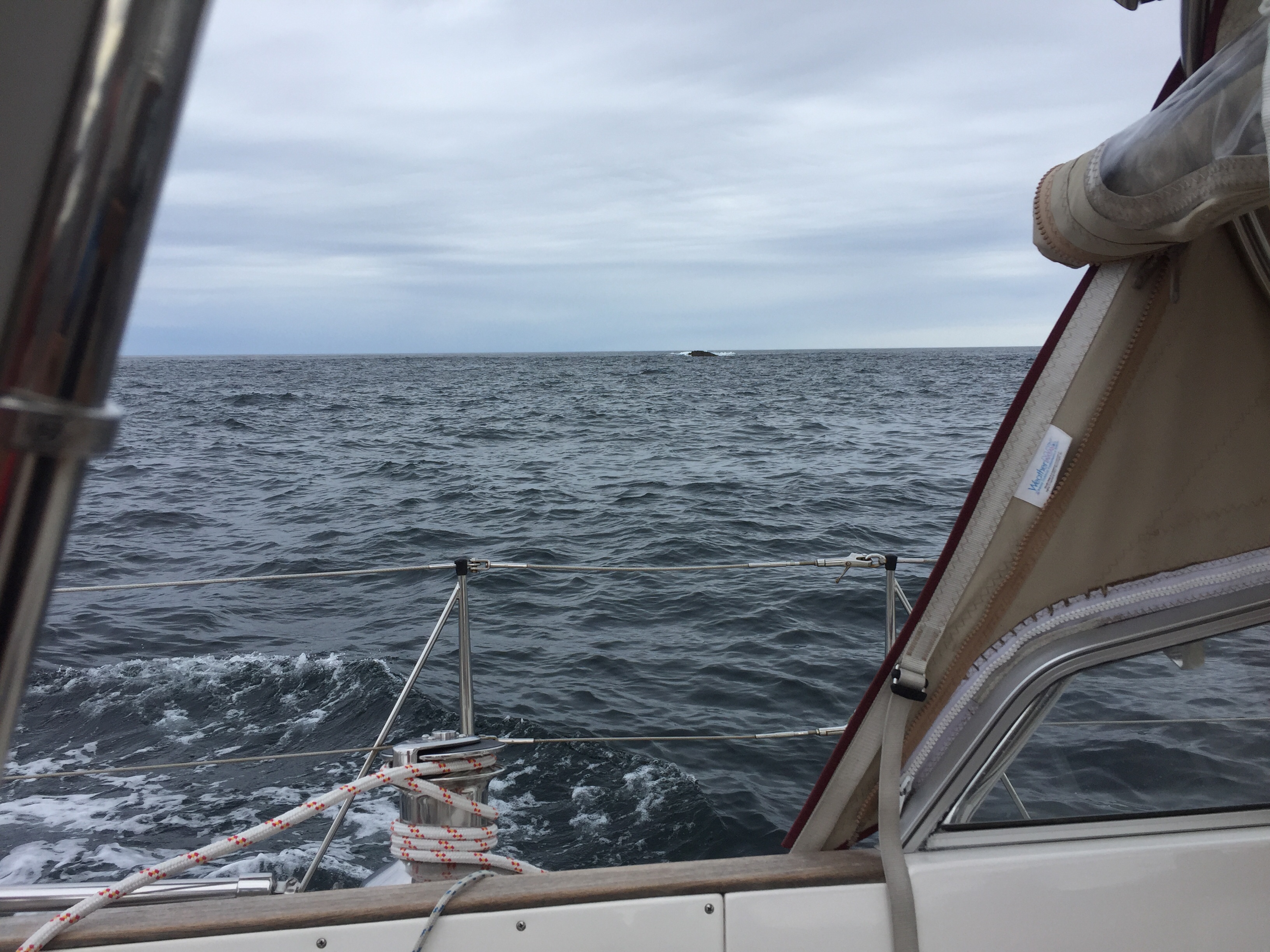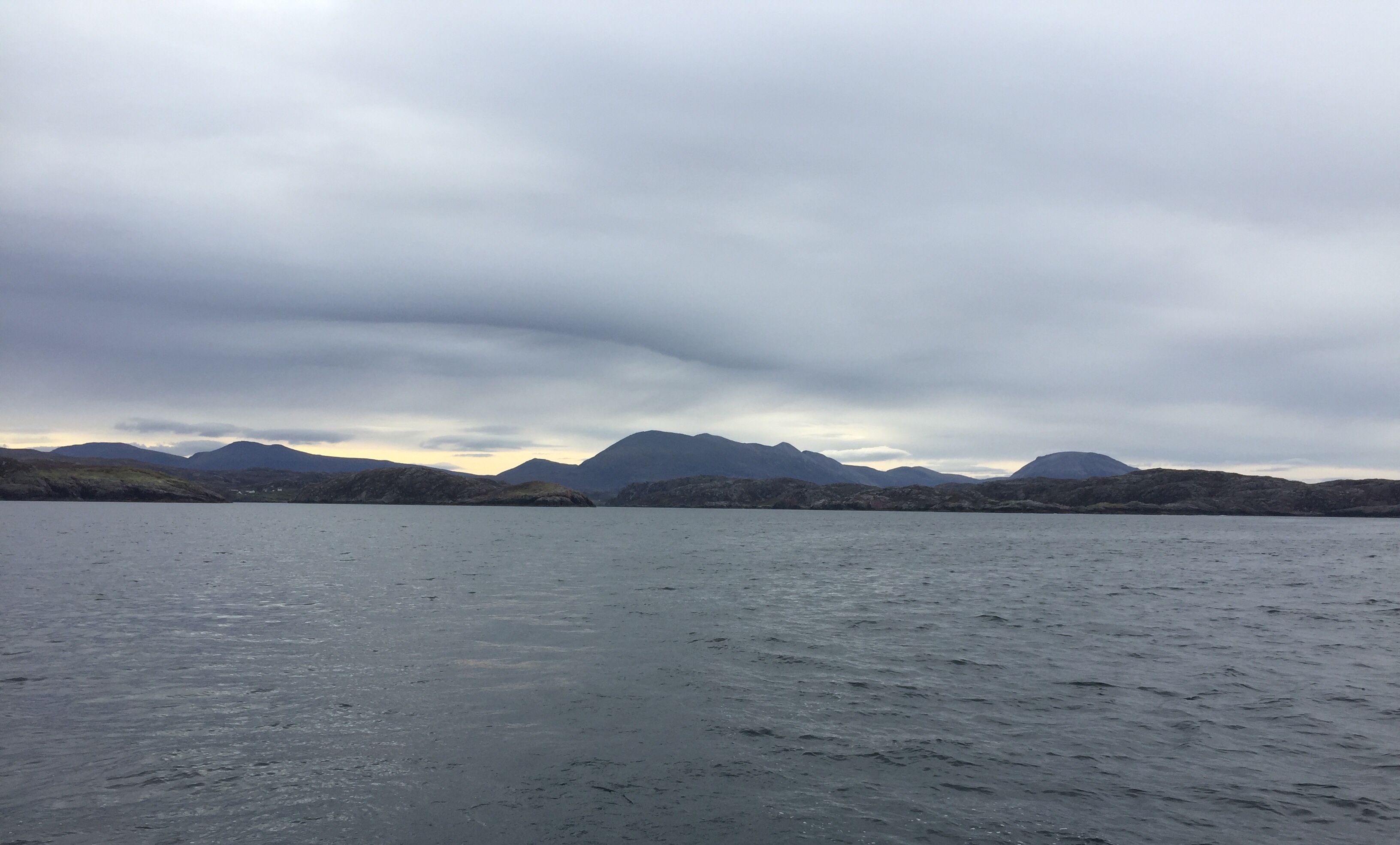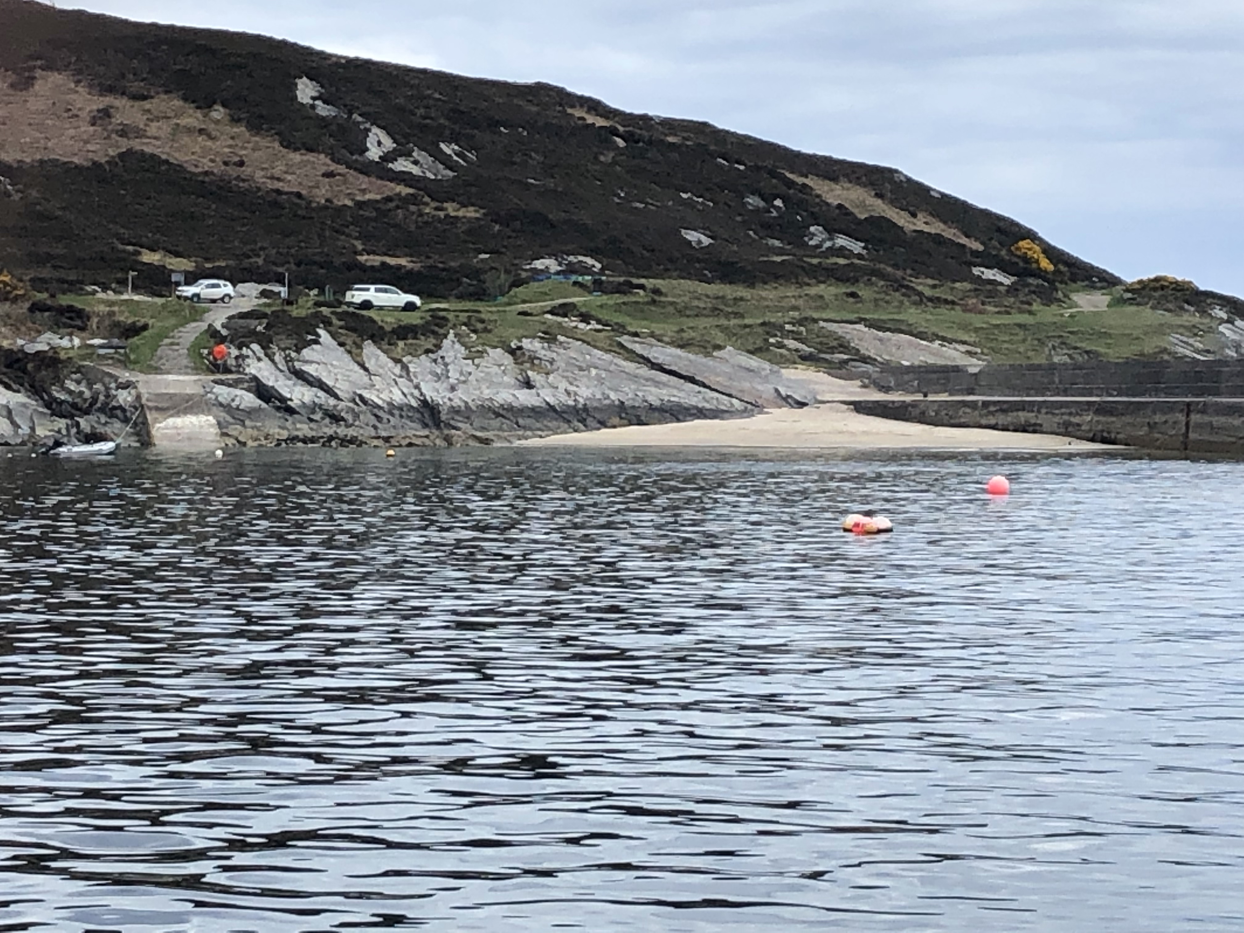 I have been thinking about this particular trip for about 3 years.. ever since we decided to do this. So quite a strange and exciting feeling when the morning eventually happened. The alarm went off at 6 as we had to be away by 8 am in order to get to Cape Wrath at slack water ( when the tides are at their weakest) . The weather was kind. It seemed calm and dry, if not as sunny as yesterday. We put up a full main and headsail and headed north under a southwest wind . The wind strength was perfect… 10-15 knots . We were able to see cape Wrath as soon as we turned out of Loch Inchard and were able to basically sail straight towards it. The scenery of the coast was stunning but all looked quite gloomy because of the grey light. Birds accompanied us. We saw no ships. Approaching CW I was waiting for the water to become lumpy and horrid with all the notorious reflected waves. I had studiously avoided looking at the pictures they love to put in the pilot books! As it happened.. today it was fine! We got there at exactly 1057 and although there was a swell, there was no white water and it was calm enough for us to take the inshore route, inside Dulic rock. Such a lonely place with the white lighthouse perched way up on the massive black cliffs looking north to the Faroe Islands and Iceland. After turning corner we trimmed the sails, pulling them in as it was more of a reach to get to our destination of Tamline bay in the Kyle of Tongue on the north coast. The wind eventually dropped and we motored for the last hour . The anchorage we were looking for is a little community around a beautiful sandy bay surrounded by the Rabbit islands. I can only presume there are a lot of rabbits on them or maybe they look like rabbits? 🤔 We anchored using a trip buoy as apparently there are many old mooring chains on the ground and you don’t want to become attached to one. The trip buoy means you can pull the anchor so it unhooks its hooky bit first, thus freeing it from anything it might be caught on. We had the rest of the delicious spaghetti Bol that J had made and had an early night ……. ready for horrible early start tomorrow. It was a beautiful evening and a special anchorage.