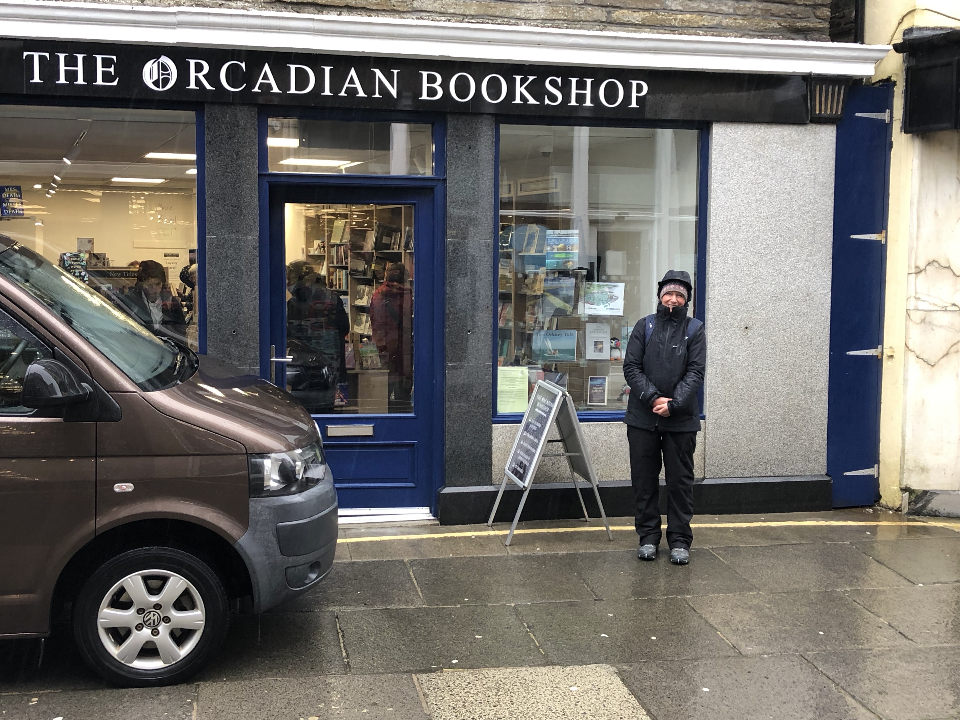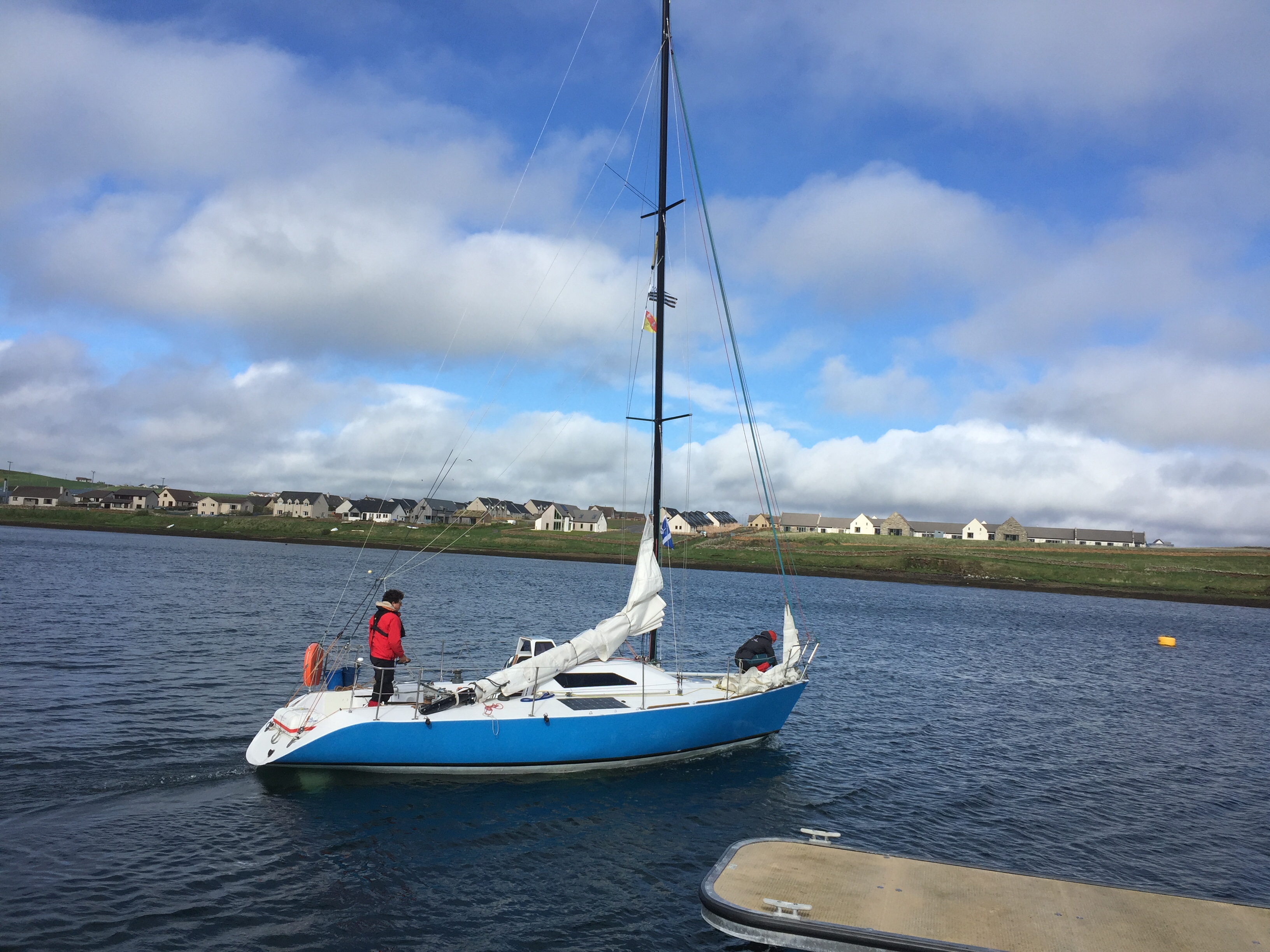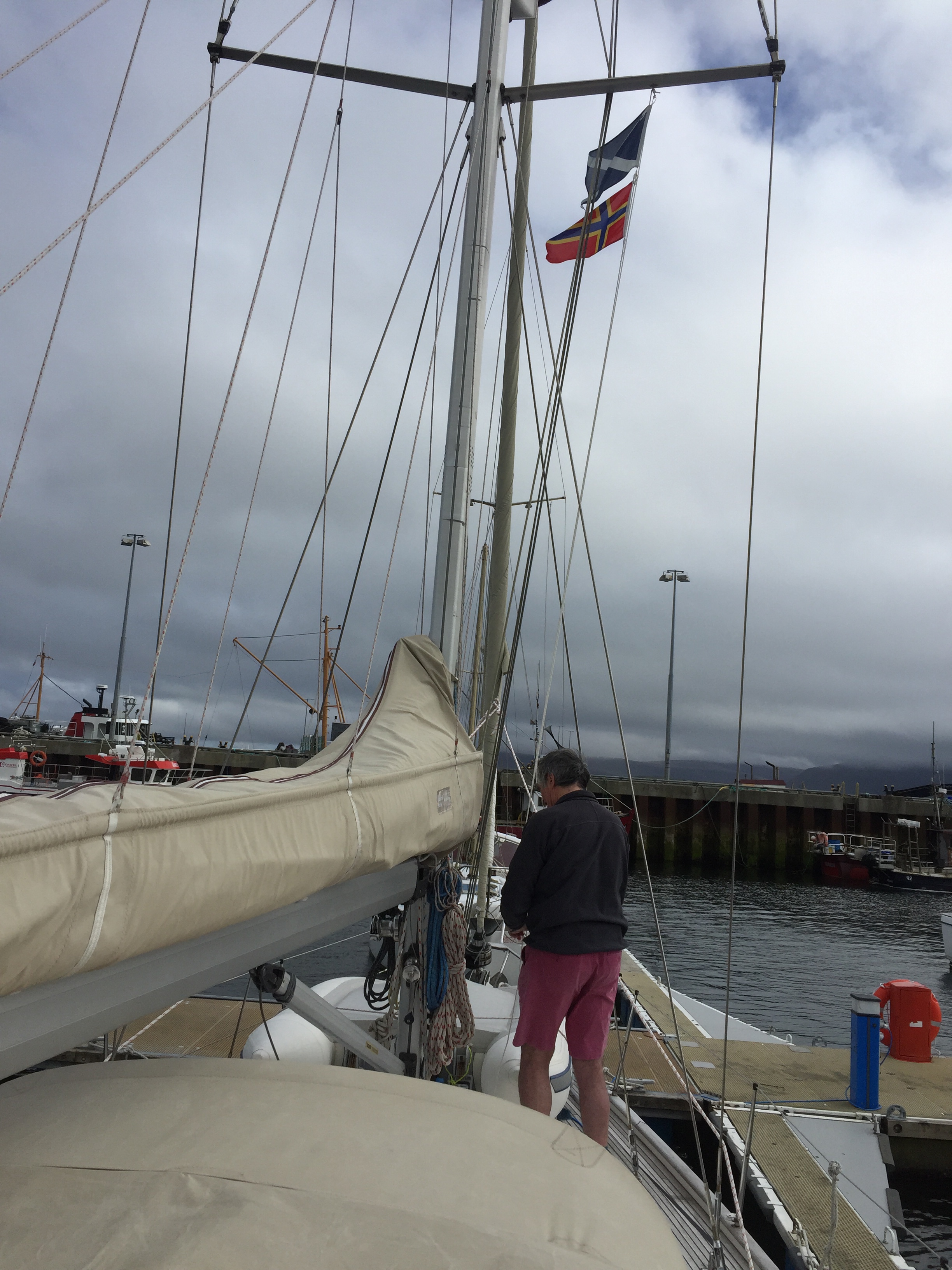 Our last holiday day here! And a very soggy one! We returned our hire car to Kirkwall via a look at the marina there. Always easier coming into a marina if you’re familiar with its layout. Kirkwall is beautiful with the huge red stone cathedral at its centre. As it was so wet we had a brief look in some shops selling lovely jewellery and local art. Then to get out of the rain we went to the cathedral visitor centre to watch a film about the history of the Orkneys and poor old St Magnus who ended up with an axe in his head. Very interesting. After a coffee and cake nearby we wandered back to the bus station . In the afternoon Julian went to look at the museum in Stromness and also found the well where Erebus and Terror took on water , prior to setting off for the Quest of the Northwest passage between the arctic and Canada . It’s a story too long for here but well worth reading about. I bought a ( very expensive) guaranteed resistant to UV light Orkney flag to go with our Scottish one, that we can fly whilst in these waters. The rest of the day was spent getting ready to go tomorrow. We also said farewell to our neighbors , 2 french youngsters who set off for Bergen in Norway ( non stop) in their little boat, on their way to the Lofoten islands. Hoping the weather will be more cheery tomorrow!