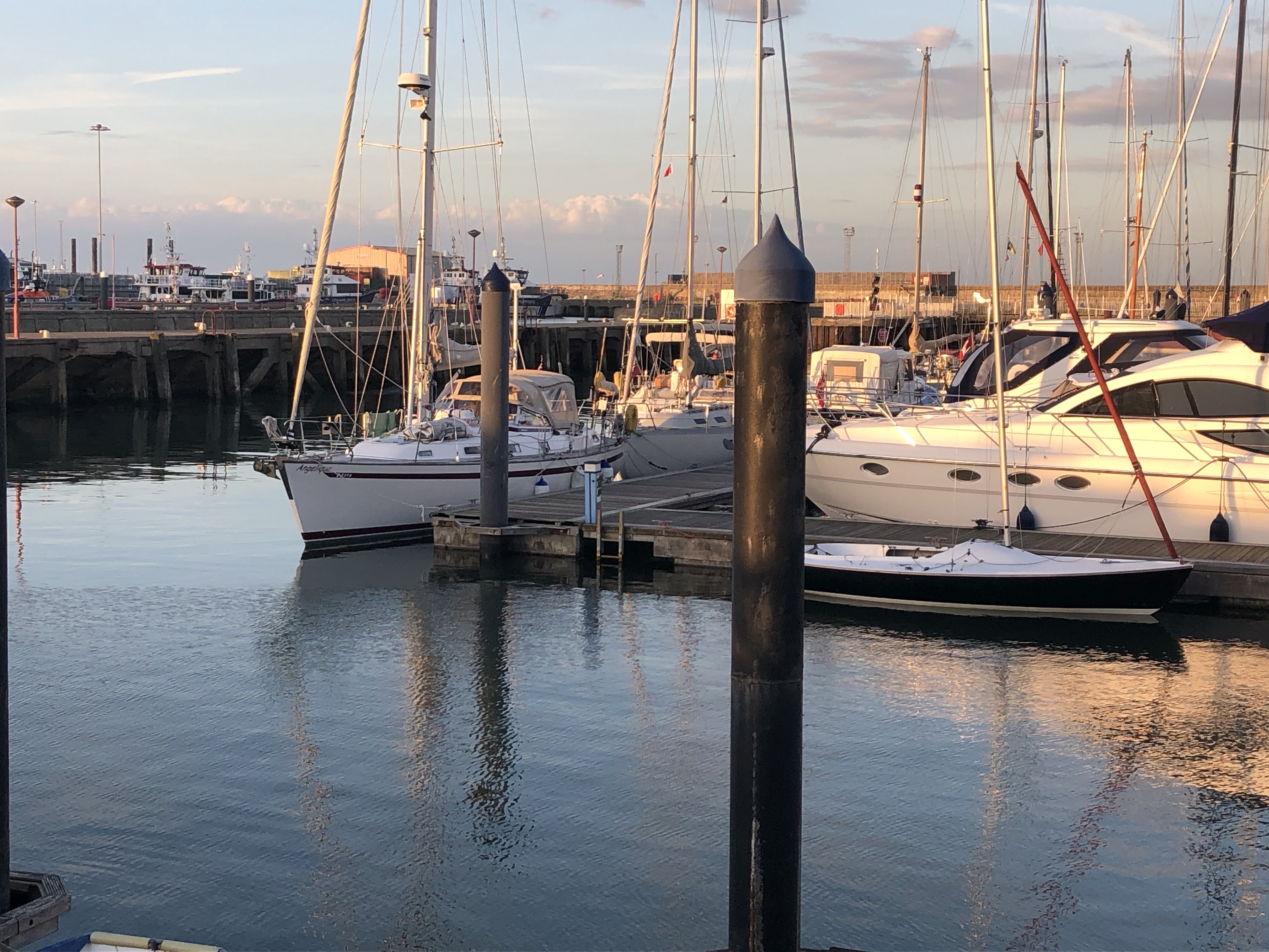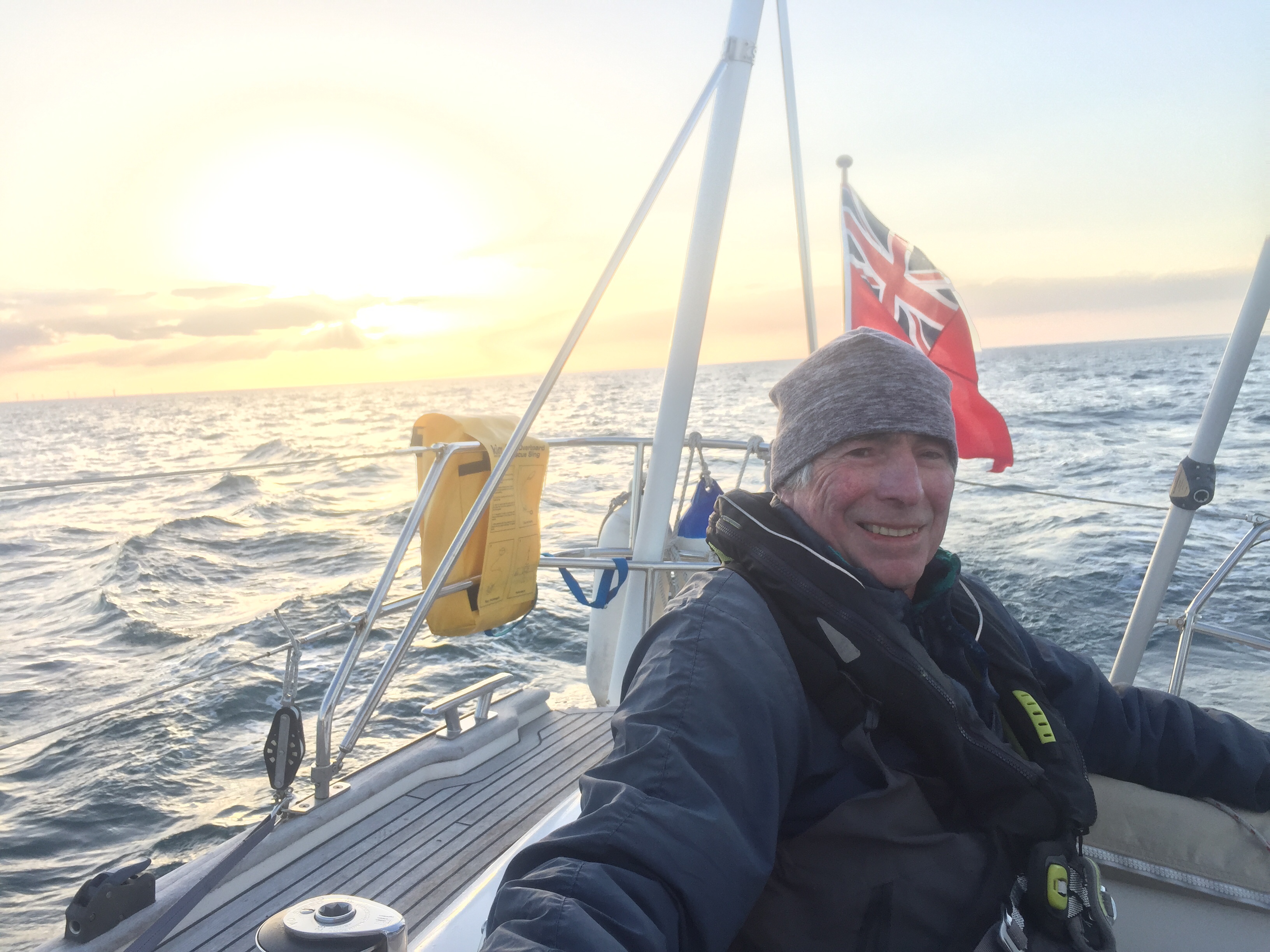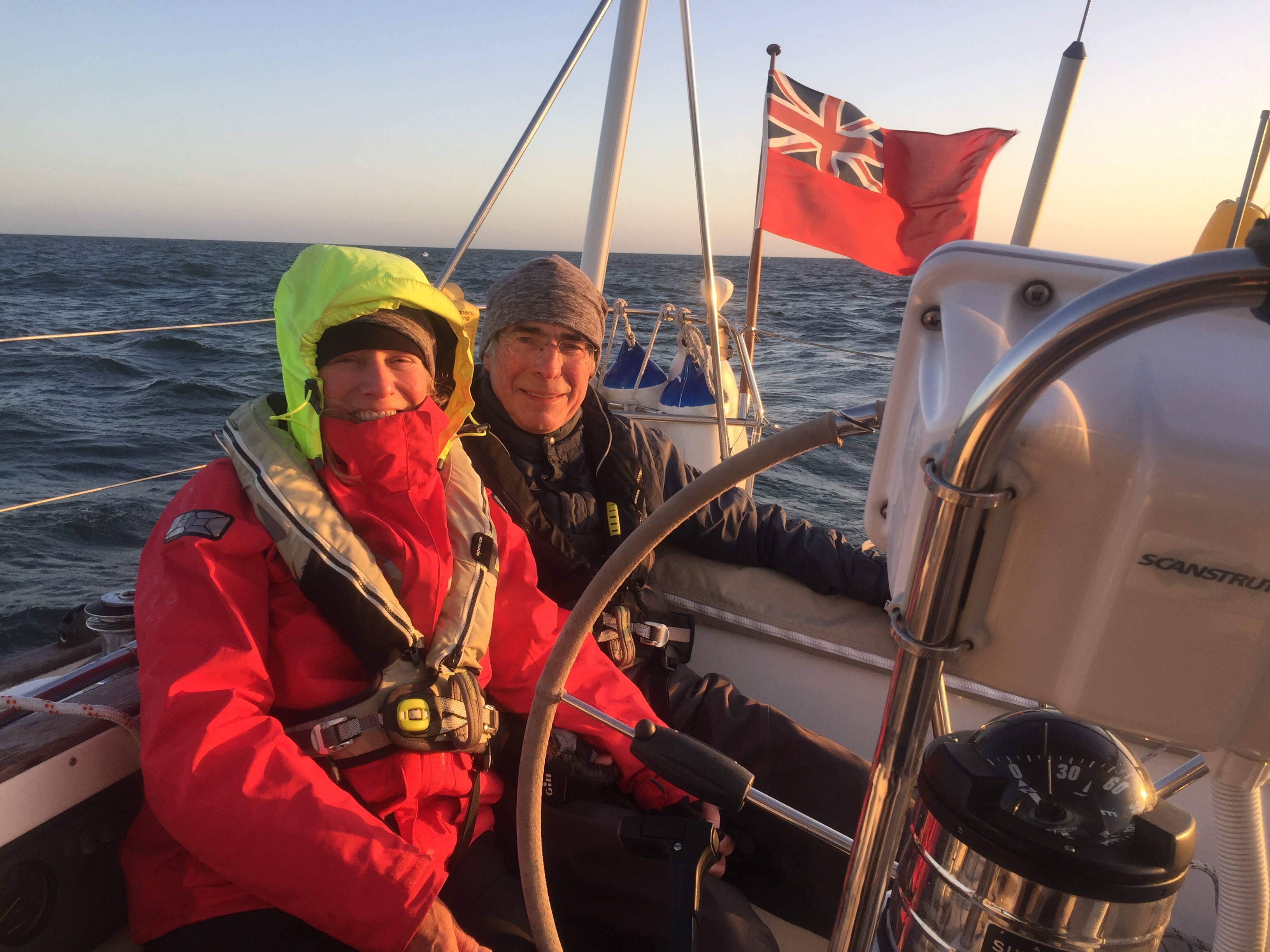 A long way! This is the longest bit of the trip. We had abandoned the idea of going to Grimsby due to various tidal constraints and timings. Proved to be the right decision. Friday morning dawned sunny. With a breeze blowing from the SW. perfect! And it did for once turn out to be a brilliant sailing wind in the right direction for the entire 24 hour voyage. Not many times that’s happened!We left Whitby at 1105 when the swing bridge opened. We were sad to leave this lovely town. Pottering towards the entrance it was so easy to imagine how it would have been in the 1700s with all the harbour lined with boats and taverns alive alive o. Leaving the harbour behind us the sea looked very different to when we arrived! We turned right, along with our friends from Serenity ( the westerly storm). I did take lots of pictures of you! We’ll email them! We set up a watch system., Having this discipline is good as it makes the time go quickly and does allow for some rest. So …..the on watch person is basically on the helm ( or in charge of the auto helm), second person is in charge of keeping them company, looking out for lobster pots and generally being helpful! Third person can rest. Julian did of course have one eye open all the time! As I said the wind was kind. Blowing from the SW meant the water was flattish. The strength varied between 10-17 knots the whole way, which meant we went the first 140 miles on one tack. To begin with we had one reef in, but took it out when the evening approached as the wind dropped slightly. Lowestoft has no tidal constraints so we could go as fast as possible……. and we were averaging 6.6 , top notch 10 knots… it felt like we were going like a train! We waved bye to Serenity as they dived off towards Scarborough. We were alone on our way to the south. Soon we were leaving land behind and heading out to sea, crossing the entrance to the Humber and then the Wash. we ate the pasta bolognese which I’d prepared earlier and Julian heated up. The sun set over one of the many wind farms we passed. the moon shone brightly on our starboard side. We all noted how strange it was that lobster pots completely disappear at night. 🤔 . wind farms are lit up by white light at the base and a red light at the top of each turbine . So there are great fields of lights. Then there’s shipping lights and navigation marks. Some are moving and some stationary. Having the chart plotter you can match up the lights you see with what’s on the chart. It even has the boats on so that really helps with interpretation of what you’re seeing! Usually! One rather interesting moment was a green light in the distance in front of us which was getting bigger quite quickly. Not on the plotter until it appeared apparently right in front of us, it was another sailing boat which we passed quite close to in the end, but maybe the dark made us just feel it was! Time passed and so approached the mile stone moment of our 1000th mile!!! We celebrated by having an orange club biscuit ! Julian and I were on watch as the sky lightened into a beautiful dawn. The colours a mixture of yellow oranges and blues in what appeared to be a cloudless sky. We saw the first blip of a huge orange sun peep above the horizon. Magical. That was about 4 am. Another 40 miles to go. Eventually we rejoined the coast. We had left England in Yorkshire and rejoined in Norfolk! This coast becomes very shallow and the last 2 hours are tricky navigating as you have to keep going from buoy to buoy down the deeper channel. This was the first time since leaving that we had to tack! Eventually we arrived outside the harbour and took down the sails. It had been an amazing nights sail. One which we will all remember. We had been truly blessed with wind strength, direction and tides. The whole trip took exactly 24 hours. We tied up in the marina of the Royal Norfolk and Suffolk yacht club. We then all went to 😴 sleep for about 5 hours. Tired but exhilarated and relieved to be here. Later in the evening Sue joined us eventually having had the usual train nightmare journey, and we re-celebrated🥂!