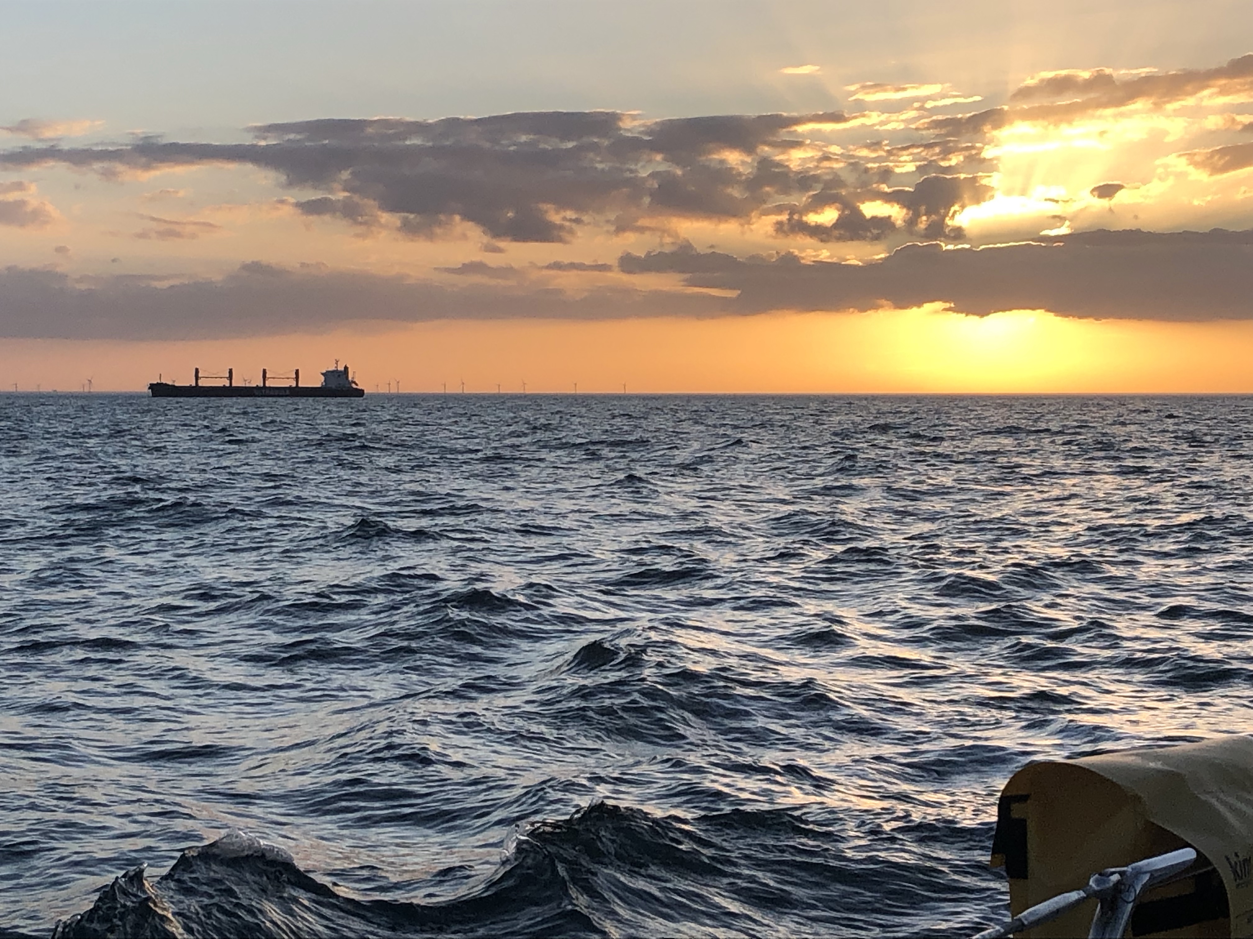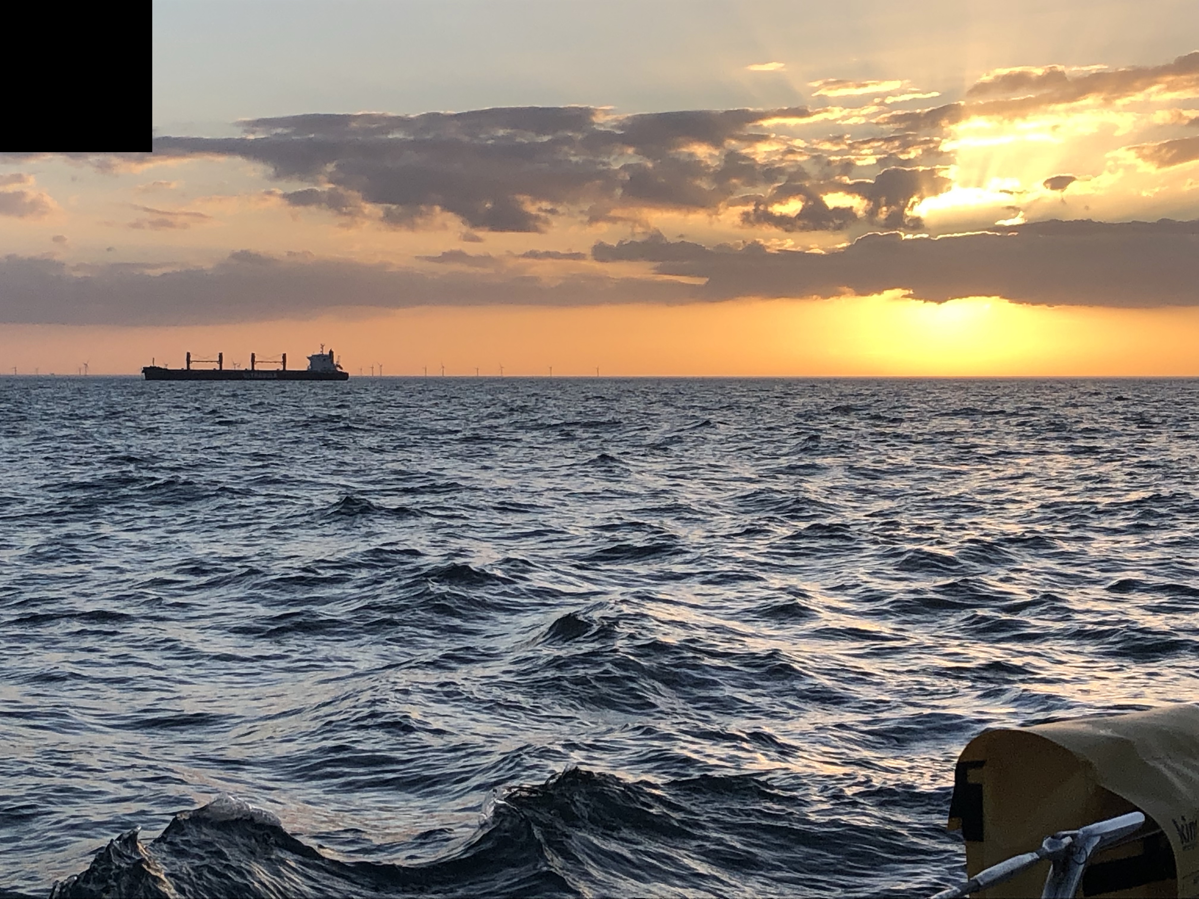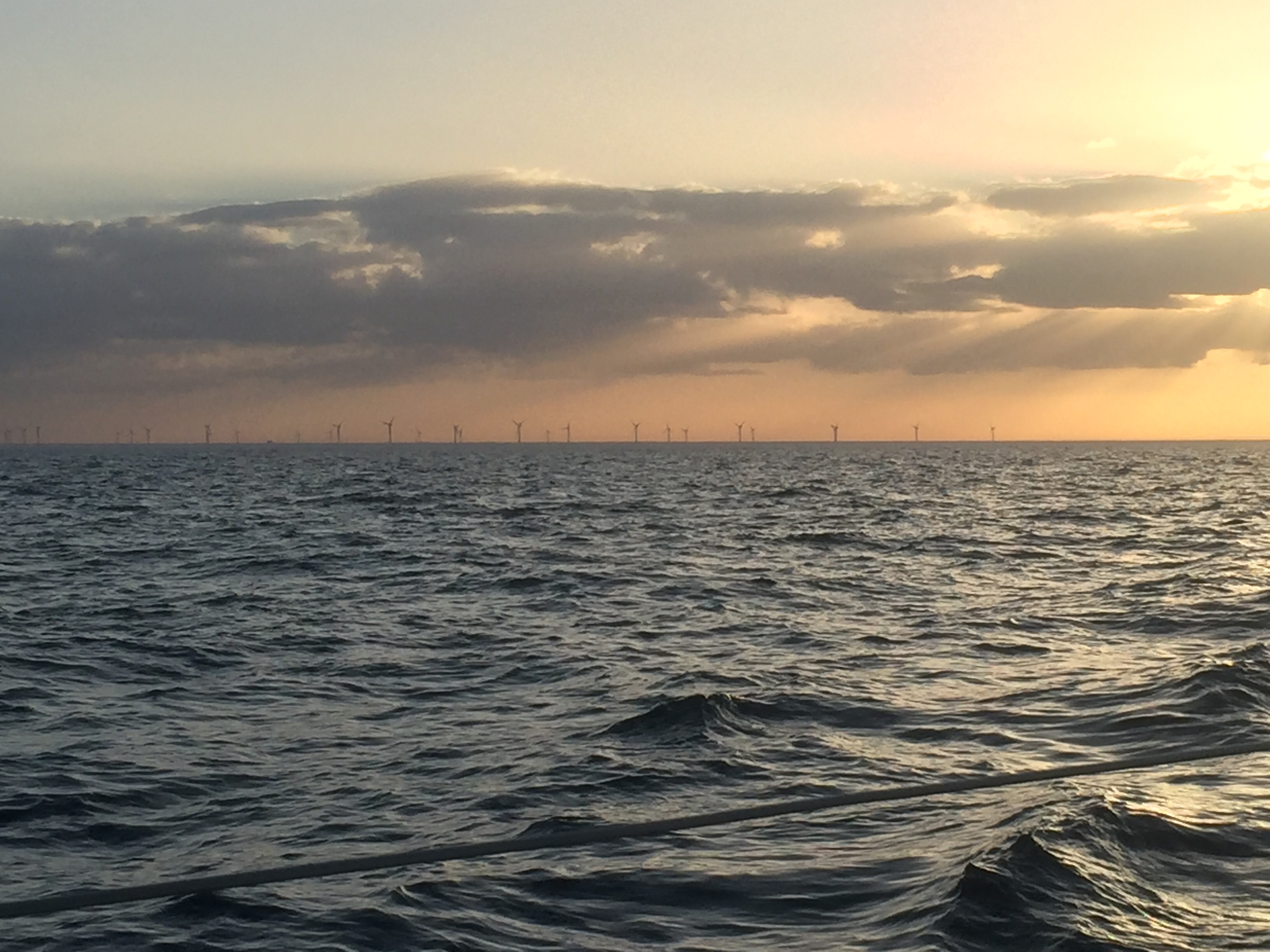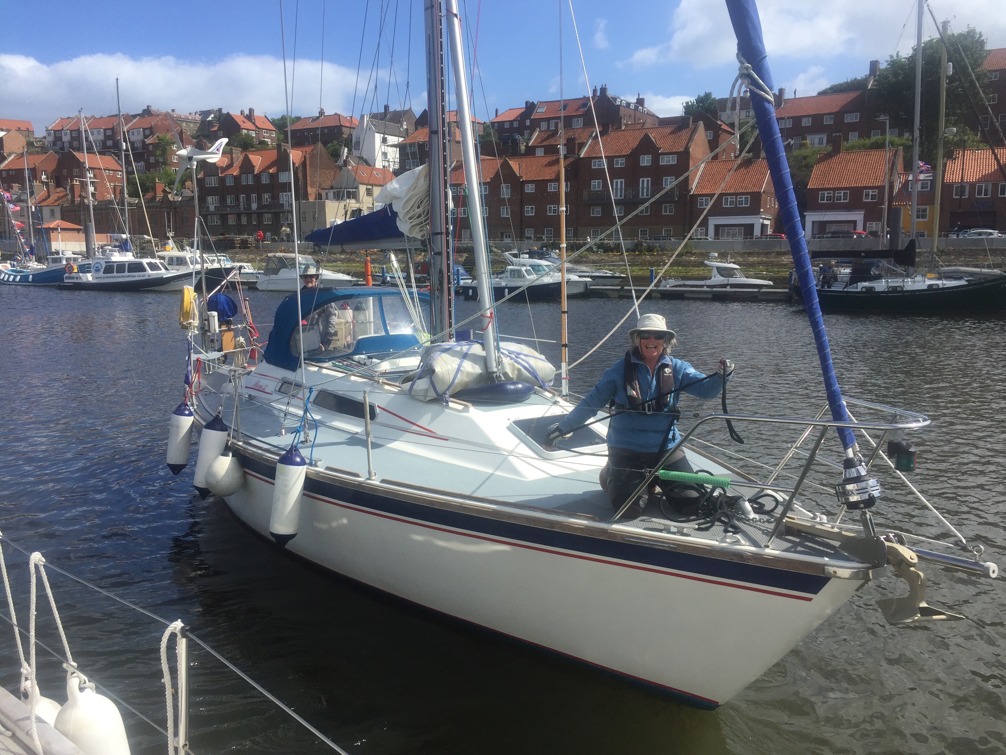 A long way! This is the longest bit of the trip. We had abandoned the idea of going to Grimsby due to various tidal constraints and timings. Proved to be the right decision. Friday morning dawned sunny. With a breeze blowing from the SW. perfect! And it did for once turn out to be a brilliant sailing wind in the right direction for the entire 24 hour voyage. Not many times that’s happened!We left Whitby at 1105 when the swing bridge opened. We were sad to leave this lovely town. Pottering towards the entrance it was so easy to imagine how it would have been in the 1700s with all the harbour lined with boats and taverns alive alive o. Leaving the harbour behind us the sea looked very different to when we arrived! We turned right, along with our friends from Serenity ( the westerly storm). I did take lots of pictures of you! We’ll email them! We set up a watch system., Having this discipline is good as it makes the time go quickly and does allow for some rest. So …..the on watch person is basically on the helm ( or in charge of the auto helm), second person is in charge of keeping them company, looking out for lobster pots and generally being helpful! Third person can rest. Julian did of course have one eye open all the time! As I said the wind was kind. Blowing from the SW meant the water was flattish. The strength varied between 10-17 knots the whole way, which meant we went the first 140 miles on one tack. To begin with we had one reef in, but took it out when the evening approached as the wind dropped slightly. Lowestoft has no tidal constraints so we could go as fast as possible……. and we were averaging 6.6 , top notch 10 knots… it felt like we were going like a train! We waved bye to Serenity as they dived off towards Scarborough. We were alone on our way to the south. Soon we were leaving land behind and heading out to sea, crossing the entrance to the Humber and then the Wash. we ate the pasta bolognese which I’d prepared earlier and Julian heated up. The sun set over one of the many wind farms we passed. the moon shone brightly on our starboard side. We all noted how strange it was that lobster pots completely disappear at night. 🤔 . wind farms are lit up by white light at the base and a red light at the top of each turbine . So there are great fields of lights. Then there’s shipping lights and navigation marks. Some are moving and some stationary. Having the chart plotter you can match up the lights you see with what’s on the chart. It even has the boats on so that really helps with interpretation of what you’re seeing! Usually! One rather interesting moment was a green light in the distance in front of us which was getting bigger quite quickly. Not on the plotter until it appeared apparently right in front of us, it was another sailing boat which we passed quite close to in the end, but maybe the dark made us just feel it was! Time passed and so approached the mile stone moment of our 1000th mile!!! We celebrated by having an orange club biscuit ! Julian and I were on watch as the sky lightened into a beautiful dawn. The colours a mixture of yellow oranges and blues in what appeared to be a cloudless sky. We saw the first blip of a huge orange sun peep above the horizon. Magical. That was about 4 am. Another 40 miles to go. Eventually we rejoined the coast. We had left England in Yorkshire and rejoined in Norfolk! This coast becomes very shallow and the last 2 hours are tricky navigating as you have to keep going from buoy to buoy down the deeper channel. This was the first time since leaving that we had to tack! Eventually we arrived outside the harbour and took down the sails. It had been an amazing nights sail. One which we will all remember. We had been truly blessed with wind strength, direction and tides. The whole trip took exactly 24 hours. We tied up in the marina of the Royal Norfolk and Suffolk yacht club. We then all went to 😴 sleep for about 5 hours. Tired but exhilarated and relieved to be here. Later in the evening Sue joined us eventually having had the usual train nightmare journey, and we re-celebrated🥂!