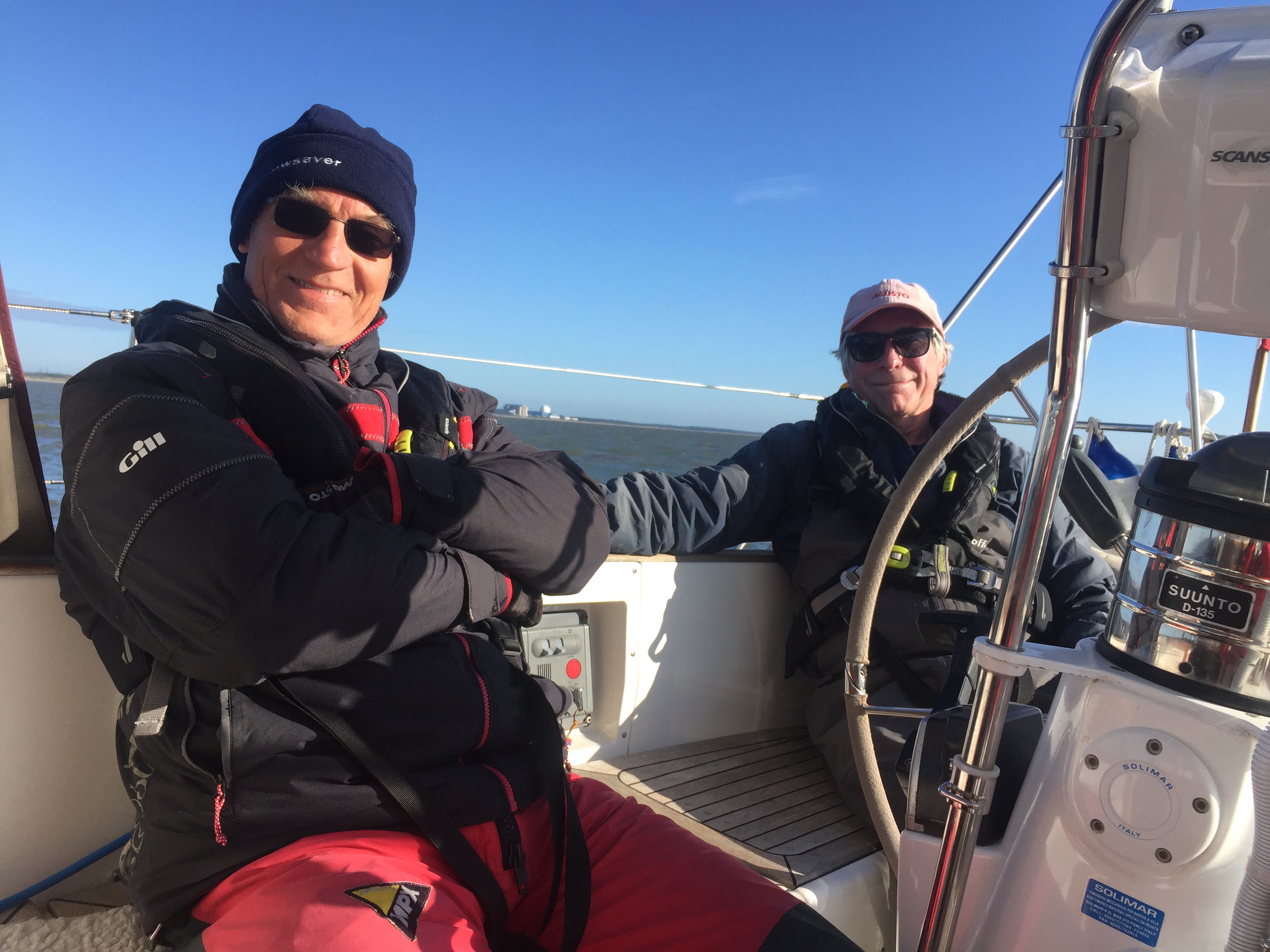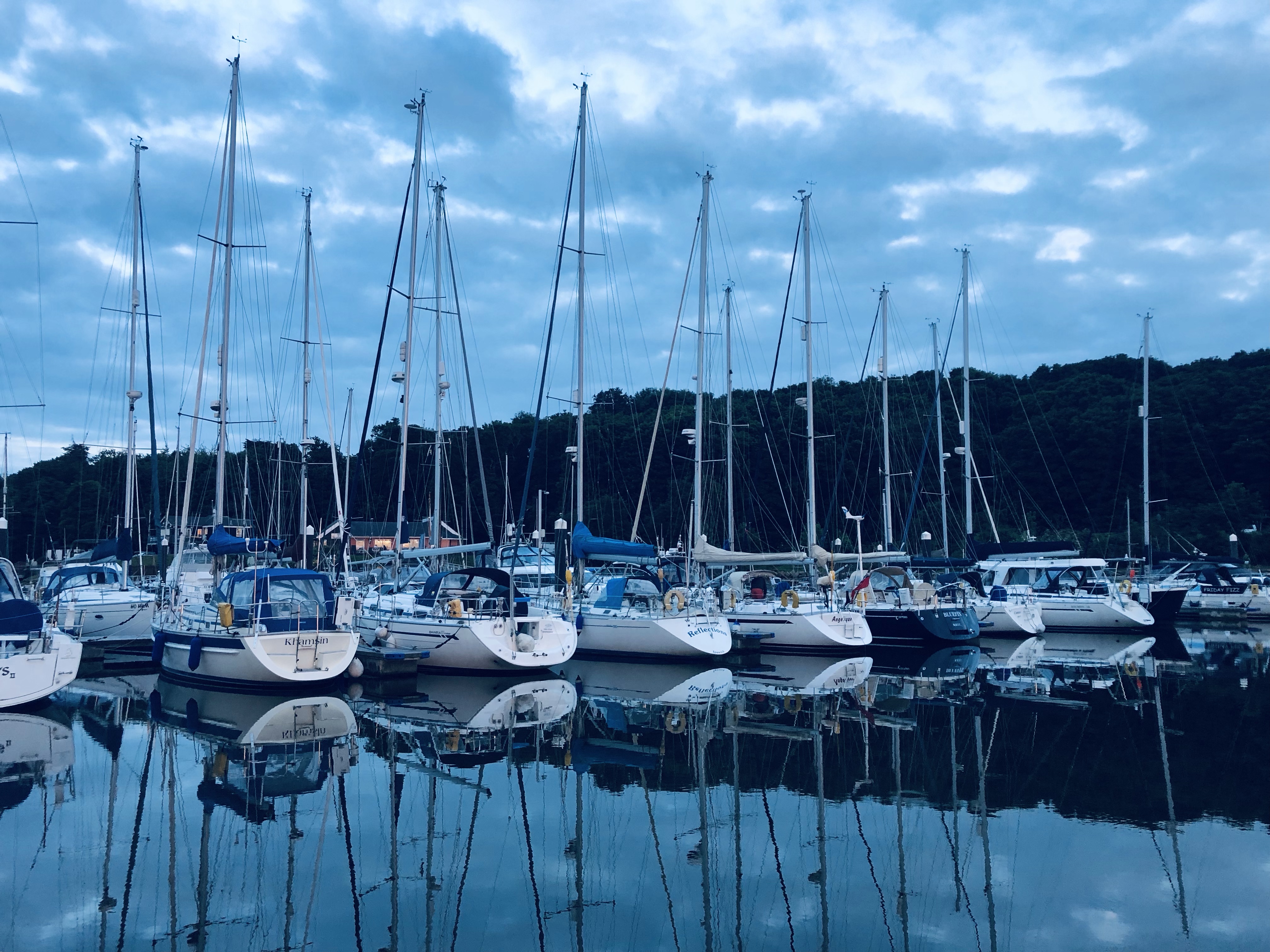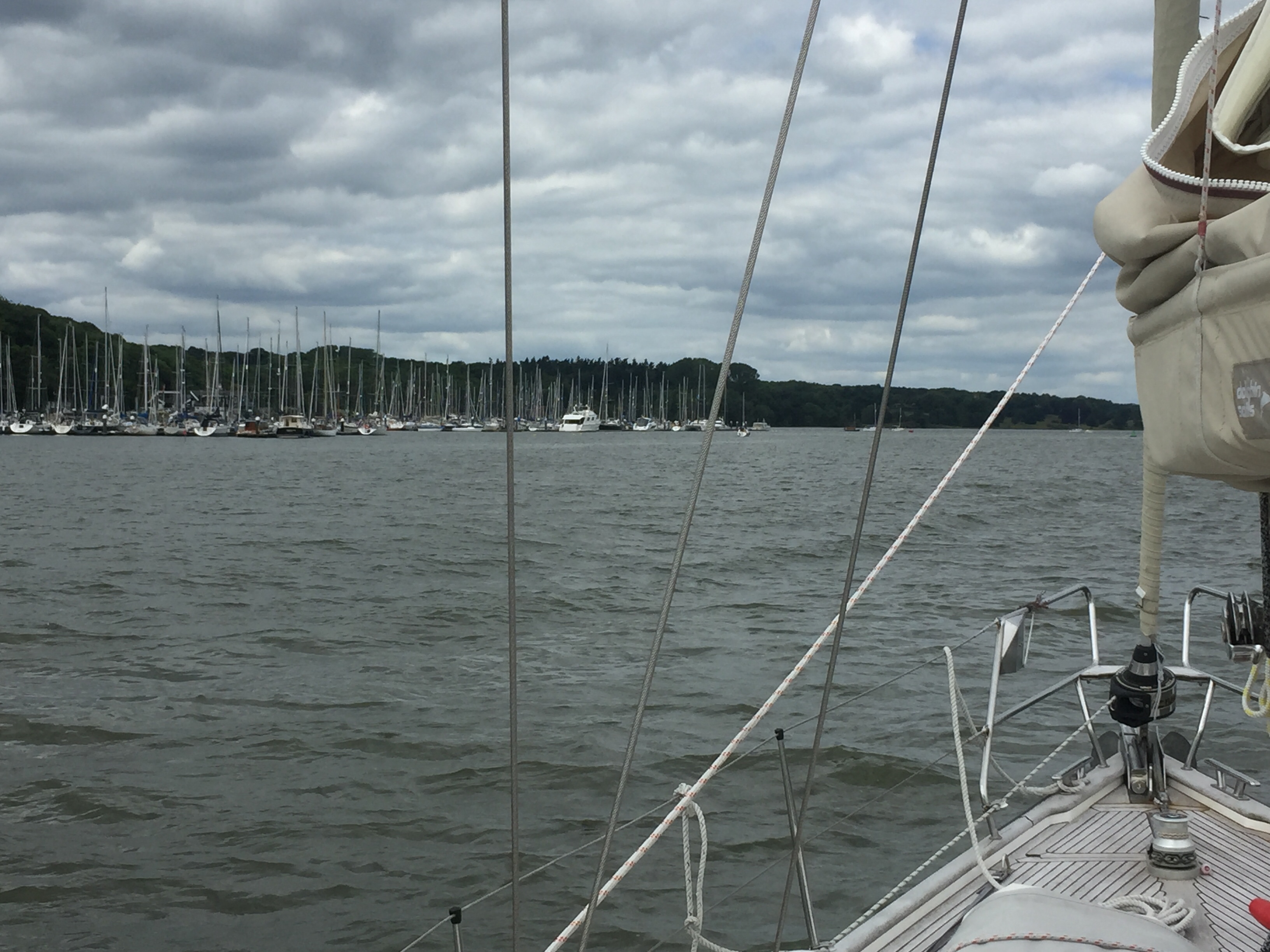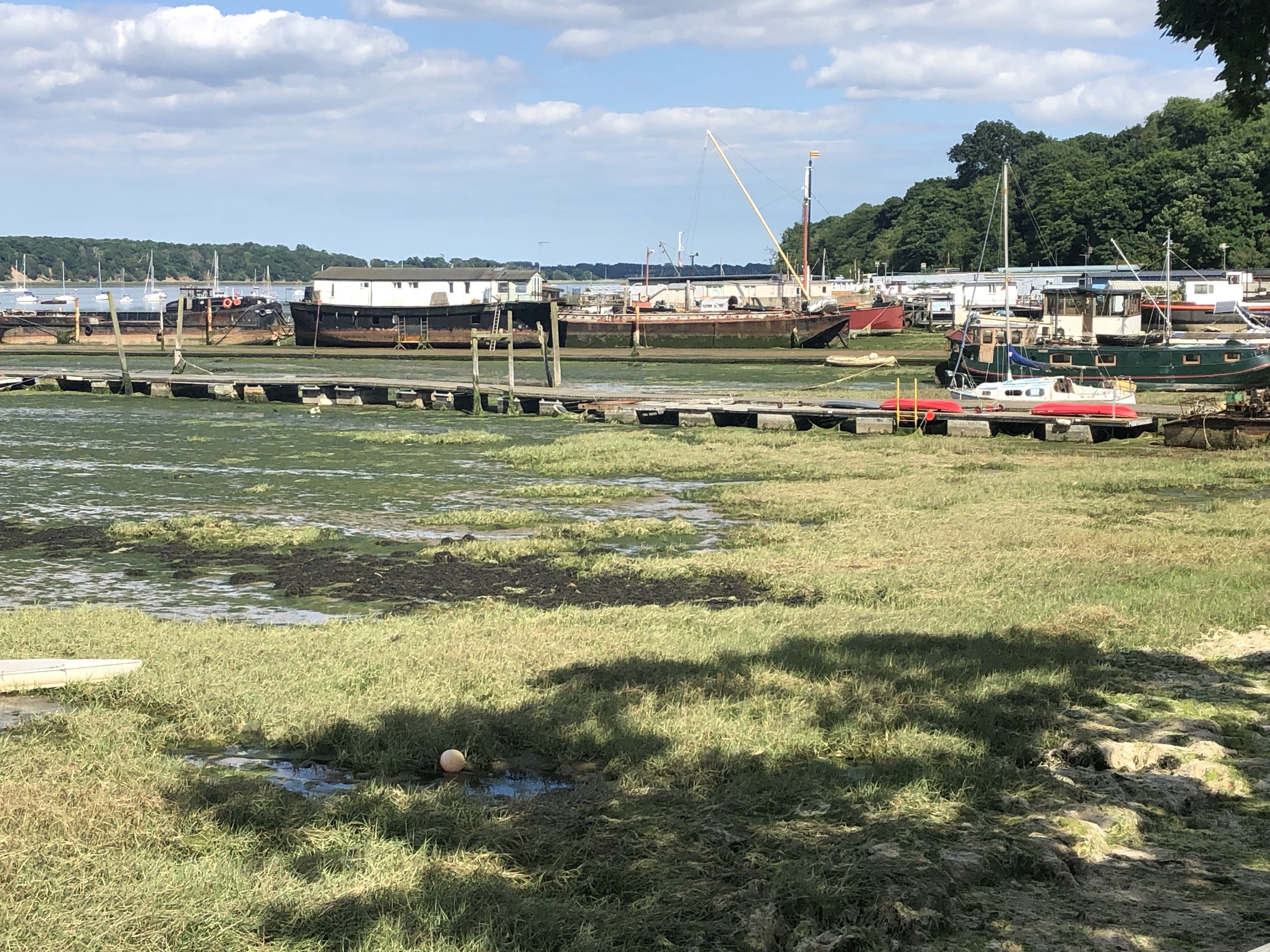 Another 0330 wake up☹️. But the sky is light and looks as if it’s going to be a sunny day! It was , in fact cloudless. We radioed the port to ask for permission to leave ( getting more familiar with this) and off we went. The water was flat because the wind has west in it and therefore an offshore wind. And brown! So despite the blue skies the water has gone from grey to brown! Cos it’s so shallow and churns up the sand and mud below I’m presuming. So just to compare…. in the N of Scotland we usually sail in depths of 100 odd metres. Here it’s 10 -20! Had full sails up and what bliss there didn’t seem to be any lobster pots! We flew down the coast doing 8-10 knots. The wind was on our beam ( side) and blowing a nice 10-15 knots. We passed Sizewell nuclear place… very identifiable with its huge white dome and then continued on towards Harwich with its massive cranes. The approach is interesting with lots of shallow bits and loads of navigation marks everywhere to identify. Thank goodness for the plotter.. again! There is a “recommended route” got yachts shown which is helpful so we just followed that after taking our sails down just before the entrance. Once into the entrance we marvelled at the enormous container ships in the dock. You can just imagine all the stuff inside and where it’s all going. Each one on a lorry. Hardly seems to support the name! See picture! The tide is still running quite strongly but we are now into a pretty river. The Orwell. Wide and flanked with fields and woodland. Many boats bobbing about on moorings and a few sailing up and down. We hadn’t been able to get into Shotley marina ( our original intention) as it was full, so made our way up river to Woolverstone where we had arranged to meet our lovely friends John and Christine. A slightly less than perfect landing wounded our pride a bit, a tight corner, tide and wind blowing us off. ☹️What a lovely marina though! So peaceful and pretty and so different from anywhere we’ve been. They arrived early afternoon and we ate cake , watched the swallows swooping to and fro and chatted in the sunshine. After which , we visited Johns beautiful boat Salamander on the same marina and then went for a delightful walk along the shore to the pretty village of Pin Mill. A typically quaint Suffolk village with painted cottages and roses round the doors. We had a beer at the pub and took a walk past the community of boat houses ( many built on top of the old working barges) along the way, through a leafy green wood. What an interesting country we live in, so different, so diverse. John and Christine left us after a lovely afternoon -and we slumped in front of the tv with a simple supper. Lie in tomorrow 😊.