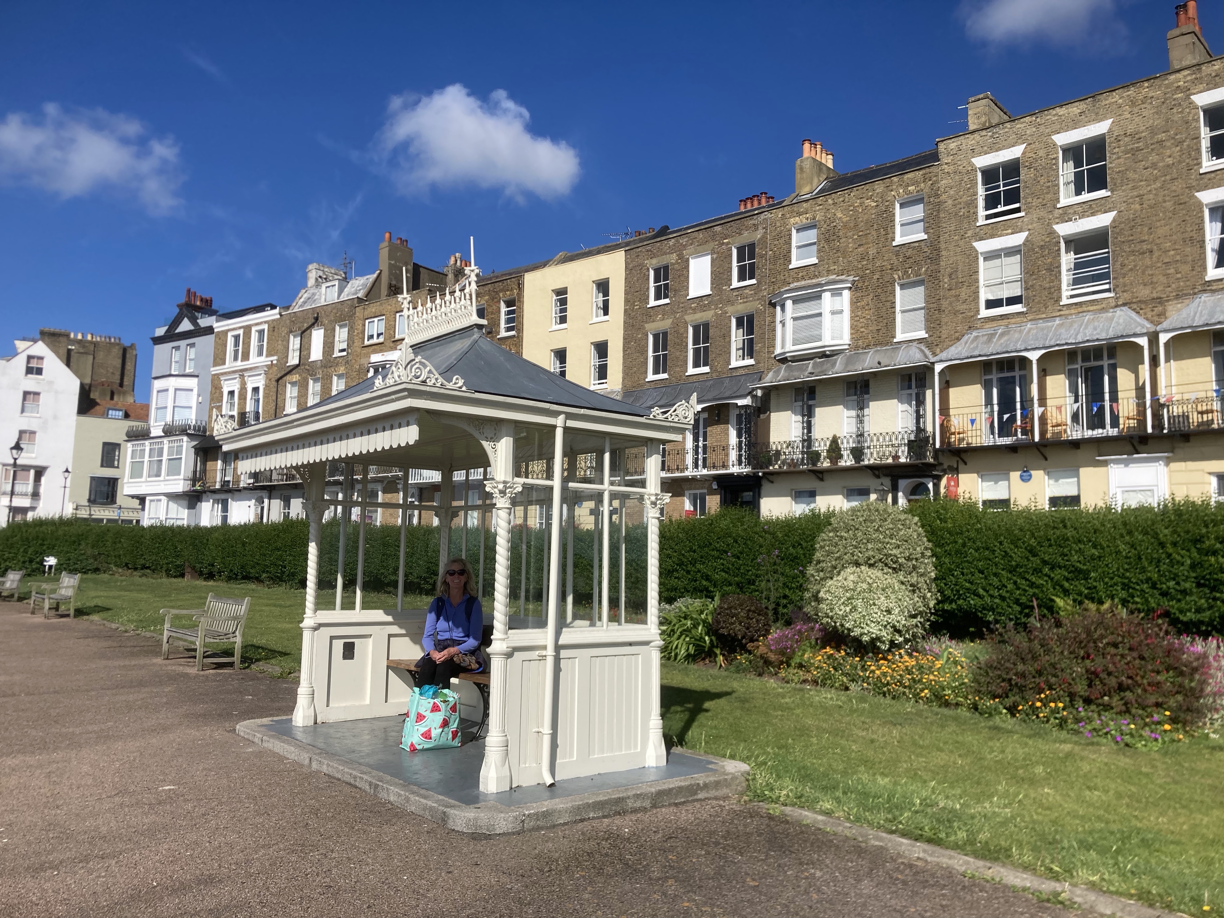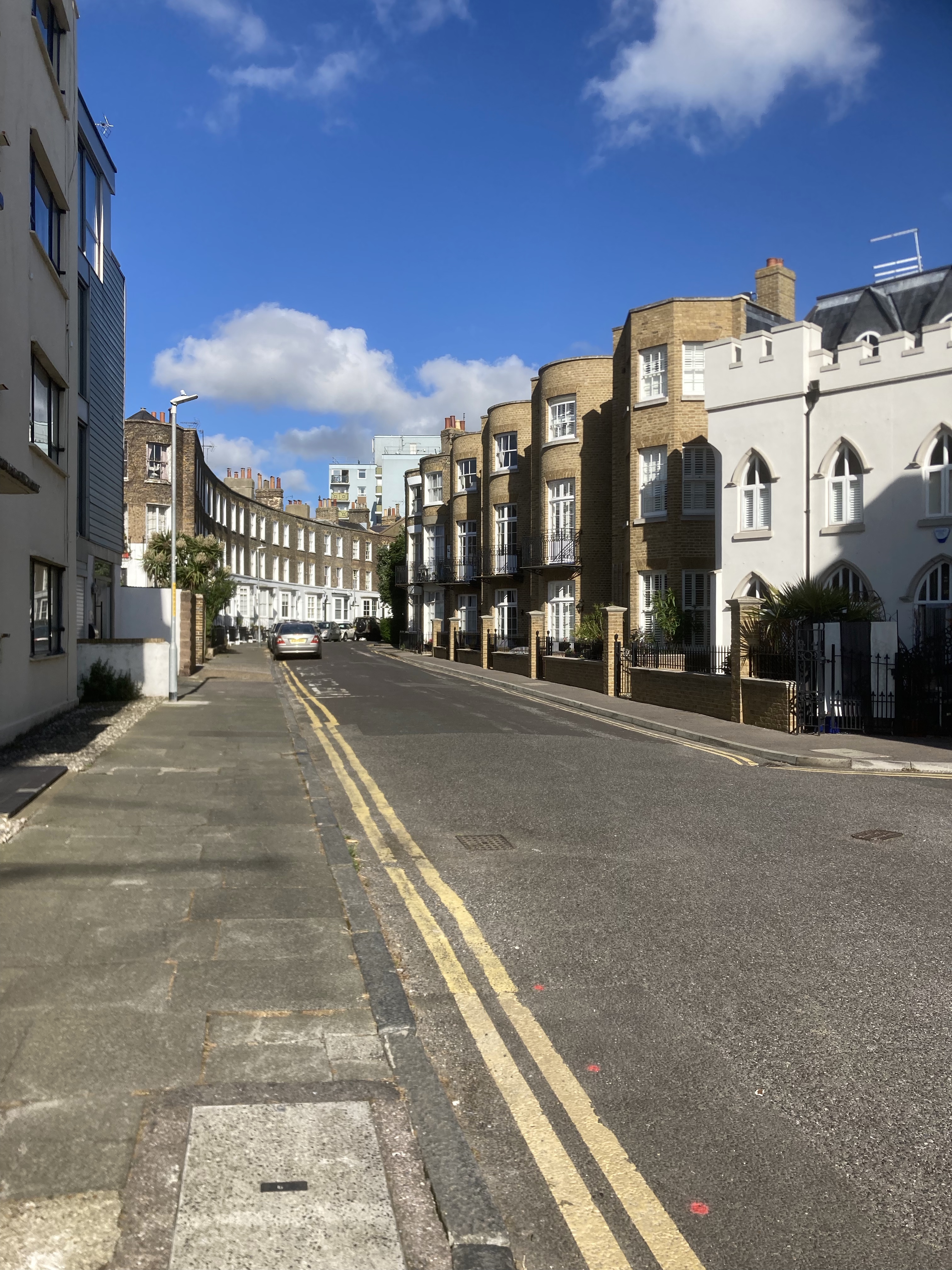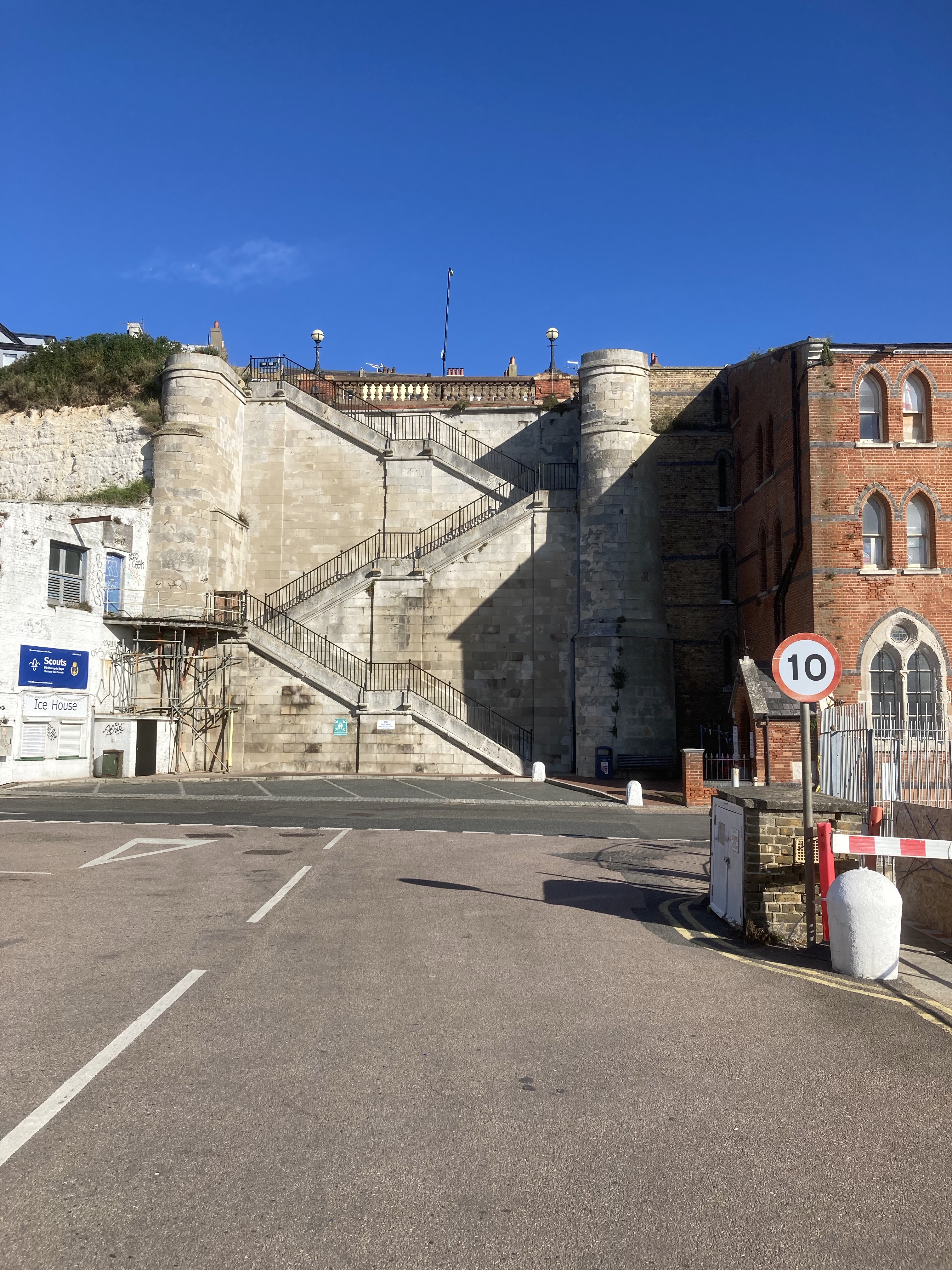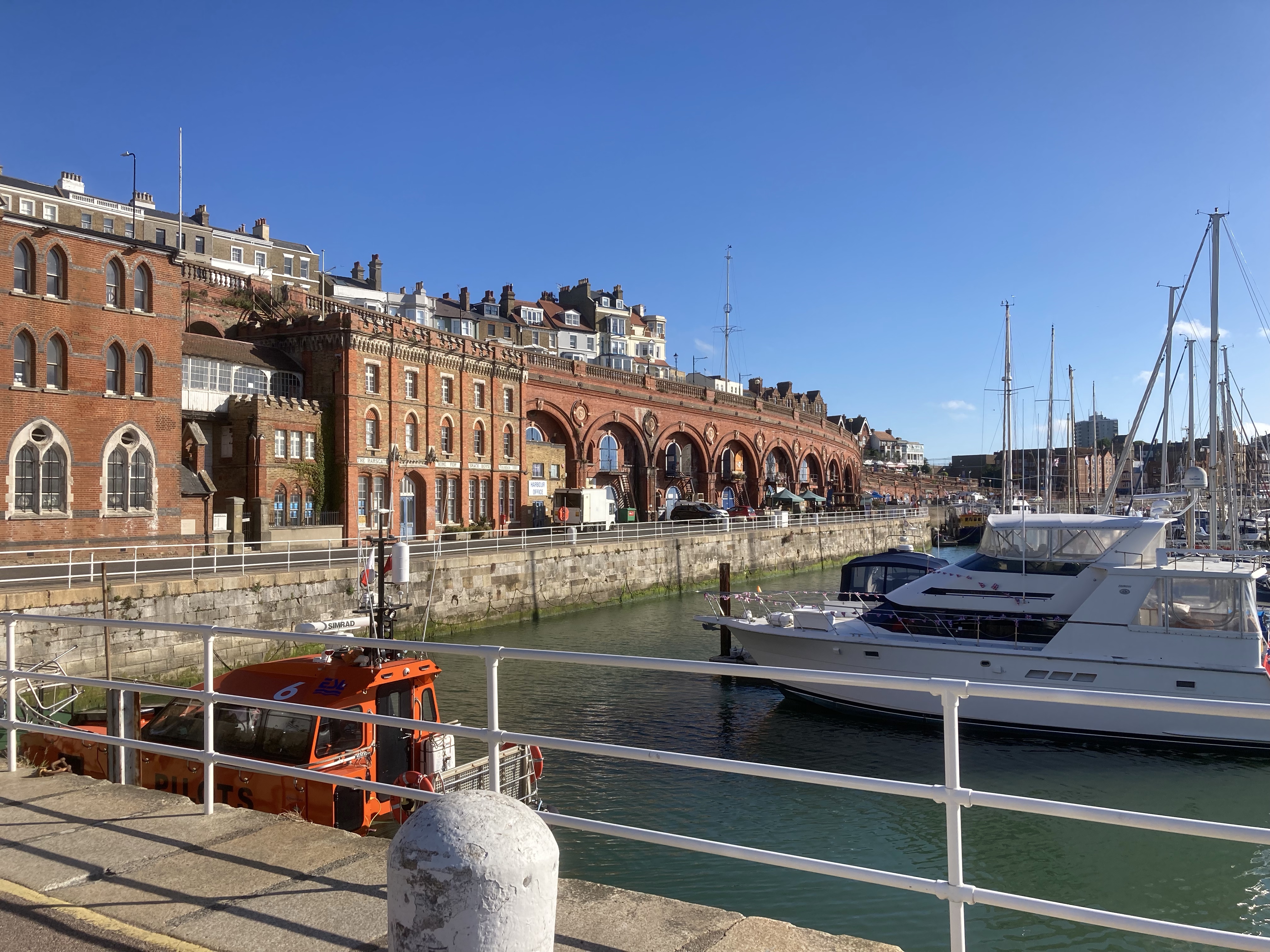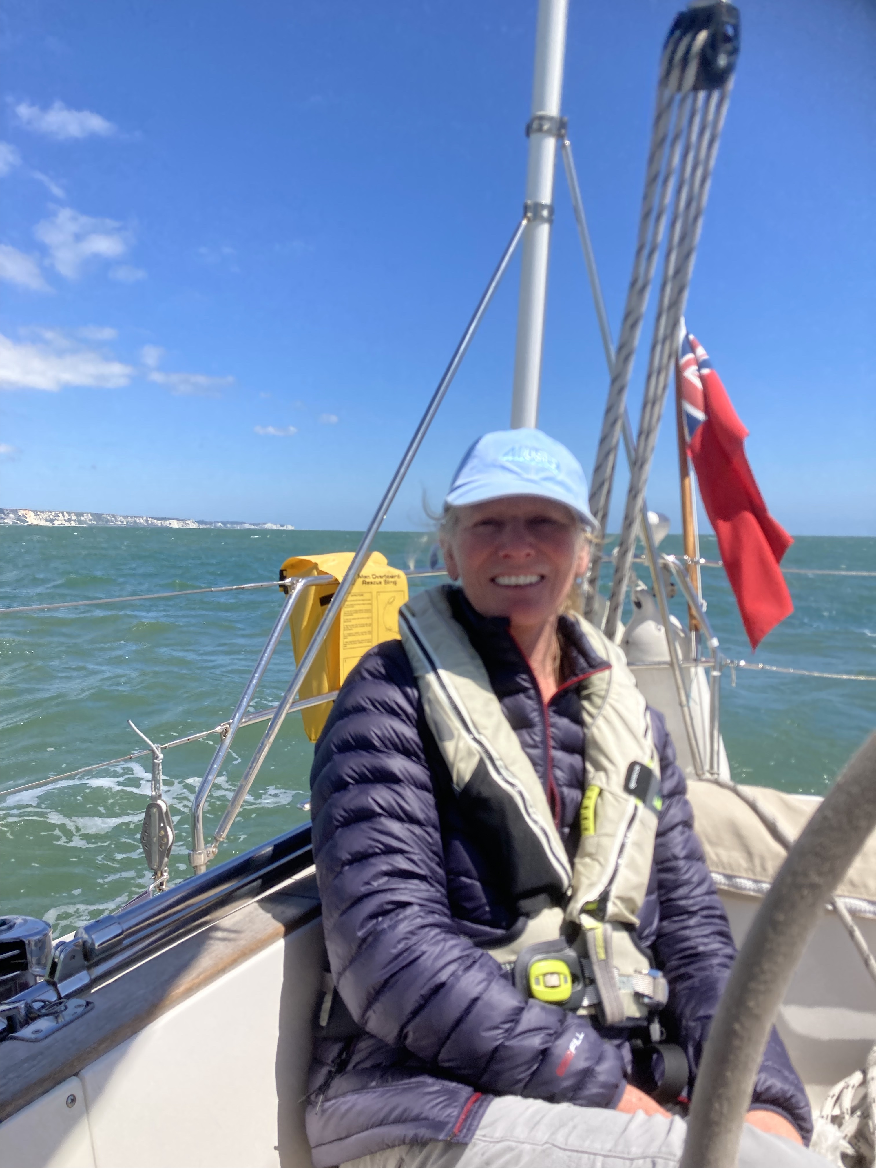 Sun shining again! Getting used to this now! We got up early in order to get to Waitrose for 8 am in order that we could leave at 0920. Sue and I walked up the interesting zig zag flights of steps up which had obviously been built up the original cliff face. The amazing ( presumably) Victorian facade runs alongside us to the right, covering the white cliffs. At the top we have a great view over the harbour. There are beautiful crescents of smart, tall terraced town houses, with wrought iron balconies looking out to sea. We found a post box that we needed and then the nearby Waitrose, just opening up. Just the fact that there IS a Waitrose means we must mean we have come a long way. An interesting observation was that when buying milk in these parts, ( in a Waitrose!)the UHT cows milk occupied a very small proportion of the shelves and it was on the bottom shelf….. whereas the main stock was milk made out oats, almonds, soya, potato and the jolly person stacking the shelf commented that they would soon be making milk out of cardboard 🤪. We returned to Angelique with our wares and got ready to leave. We ate fresh croissants and drank coffee on the way and soon we could see “the corner “ approaching!Only a few miles of the east coast to go! The white cliffs of Dover are dramatic against the blue green sea and the sky. A quiet emotional moment as we all thought about the war and what these cliffs and these waters had witnessed. For us, leaving the east coast behind and turning west was also poignant. This coast has had its challenges and rewards which we won’t forget in any hurry. Playing Vera Lynn from you tube, we sang along as we sailed. Dover Marina is closed for refurbishment at the moment, so we have no choice but to progress to The Sovereign marina at Eastbourne. It’s a big lock entrance with high pontoons on both sides. We had to sort the fenders at higher than normal height. The instructions were that we would receive berthing instructions once in the lock. That didn’t happen so we just sat there. Eventually we asked again on the radio and they told us to go to E 05. And that it would be starboard hand side Unfortunately arriving at E 05, it was obvious we wouldn’t fit in and would have completely squashed the other boat ! Radioed again they told us to go to E 15 which was almost as equally tight and the issue was confused by telling us it would be starboard side and it was port! So a complete shambles…. glad we had extra crew to help keep moving things around! A sausage supper and a bottle of fizz to celebrate rounding the third corner of our trip!