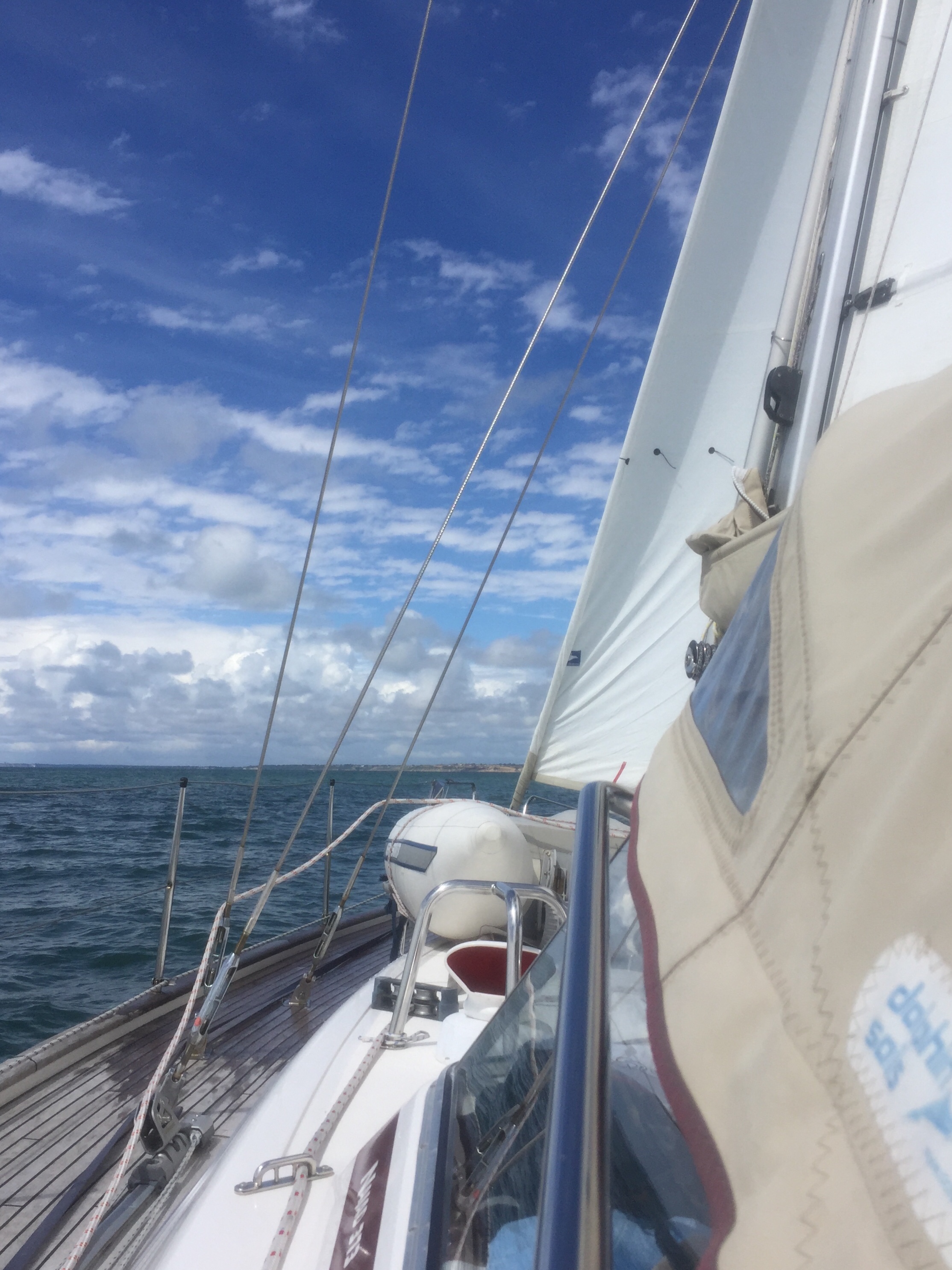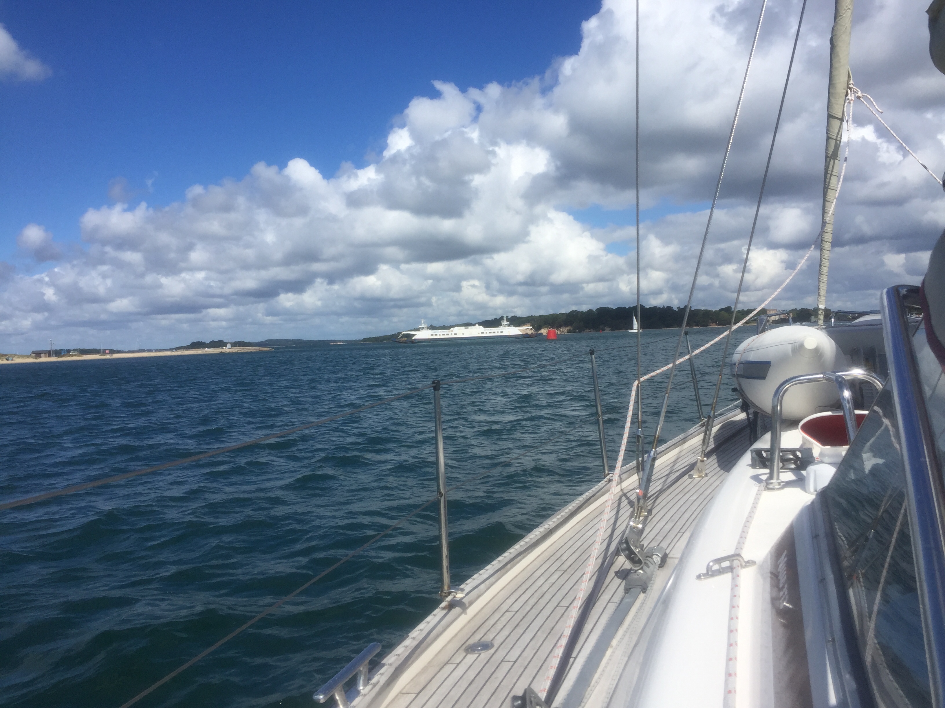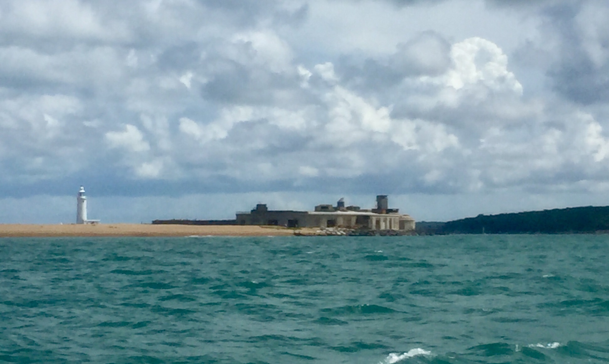 Still sunny we left Lymington late morning and emerged into the Solent with a few other boats. Tacking back and forth, dodging boats and all the “rules of the road “ involved, reminded me of happy days gone by on Quango….. a Hunter 707 we used to race up in North Wales. Once past the nice bright white lighthouse and Hurst castle.. presumably napoleonic? We took the Route of the North channel rather than bucking lumpy wind and tide out by the needles. Which did mean no iconic pictures! We had one reef in the main and in the headsail and we sailed on the wind putting in a couple of tacks as needed. It was only a few hours journey and with the wind still blowing 15-20 knots as usual we were approaching Studland bay off Poole, in no time. The very obvious white cliffs and stacks of Old Harry approaching are truly stunning. Especially as we had blue sky and sea with green fields to complete the scene. What amazing geology we have in this island of ours. We were aware of all the issues surrounding anchoring in Studland bay, given its been in yachting monthly etc, but couldn’t find out on the internet just exactly what was there… we gathered there were some visitors mooring buoys but it wasn’t clear how many. We could see a line of neatly separated boats maybe 6 or 7 , and then a few random ones. We rightly guessed that the line did represent moorings but they are small and white, so not easy to see. However, binoculars in hand we made our a free one between two boats and headed for it. On arriving at it, no pickup but a nice open metal hoop of narrow gauge. J turned around so I could get my yellow mooring tool ready and a line. Not easy as it’s still windy but we managed to get a line on it to secure us. Once secure we did the same with our ( heavy duty….. weighs a tonne) chain bridle. Fixed for the night! There is a website that you’re directed to, to make a donation to the seahorse trust. I did this but wondering how many people do? I’m hoping they do because that’s the only way they will afford to put more mooring buoys down. At the moment there are only 10, which patently obviously is nowhere near enough if you look at photos of this place on summer holiday weekends. We loved the place and despite the wind we had a really comfortable night. We watched Wimbledon and the world go by…… eventually the sun went down. Good to imagine the little long-snouted seahorses in their weedy home underneath our boat .
