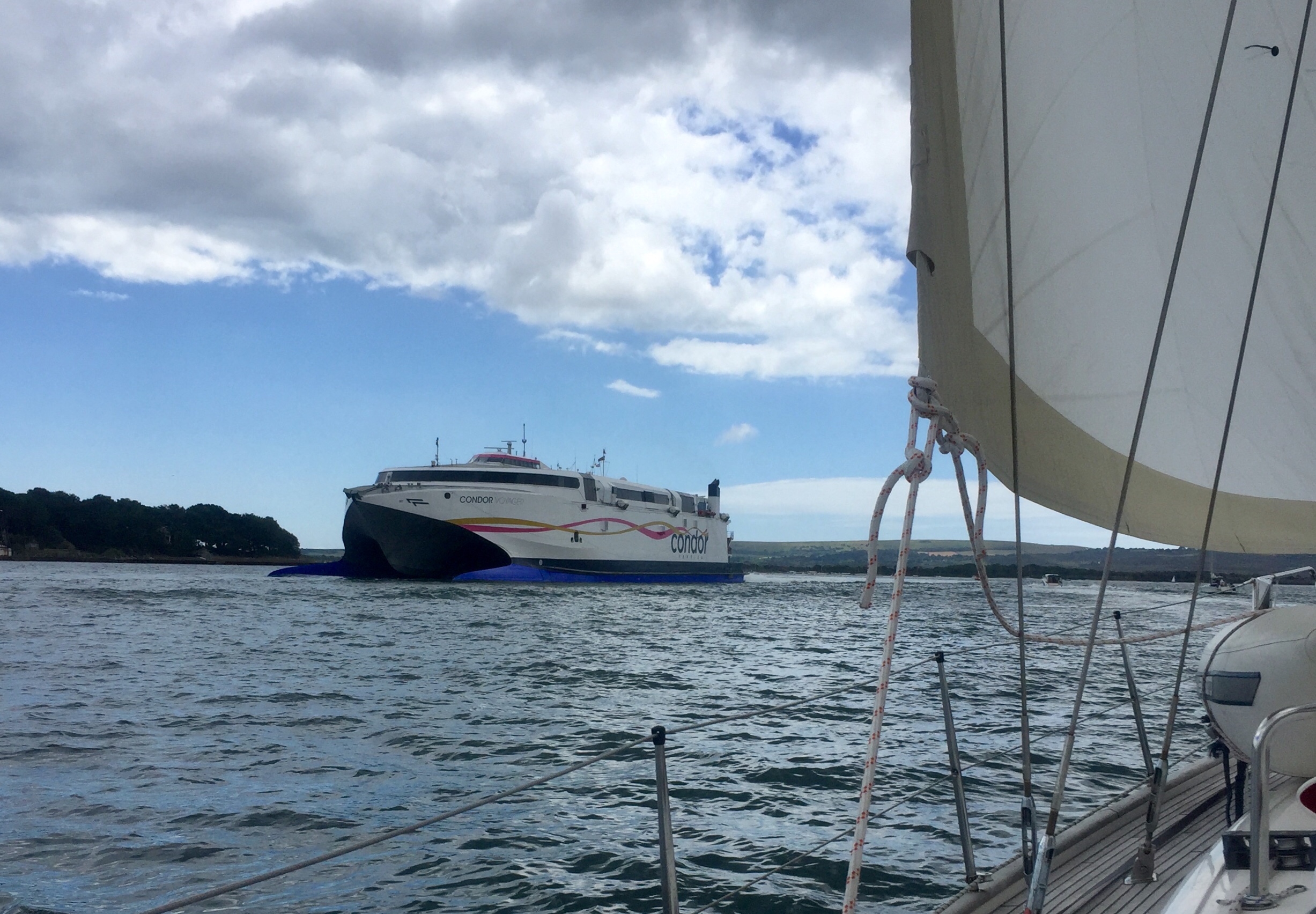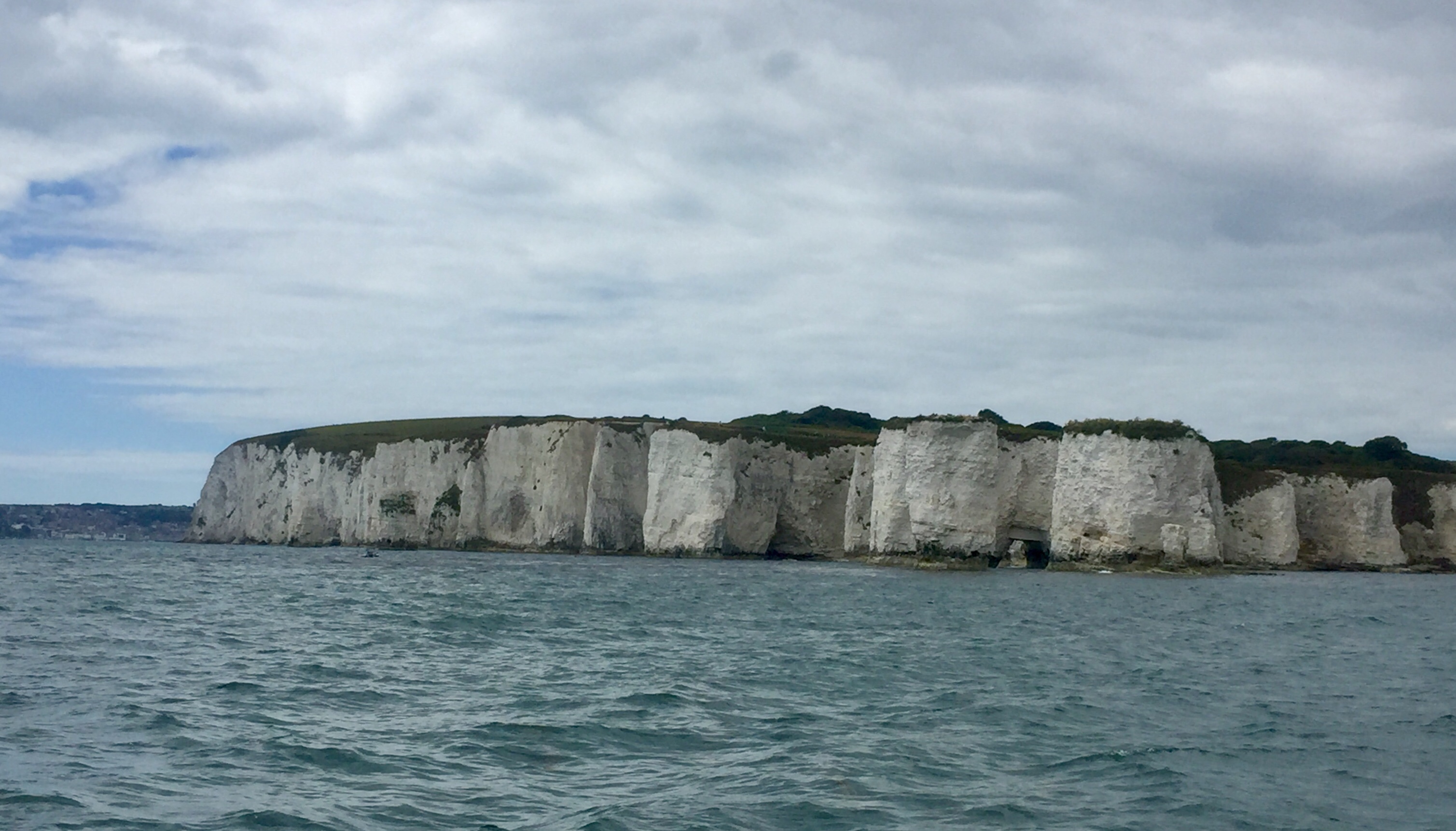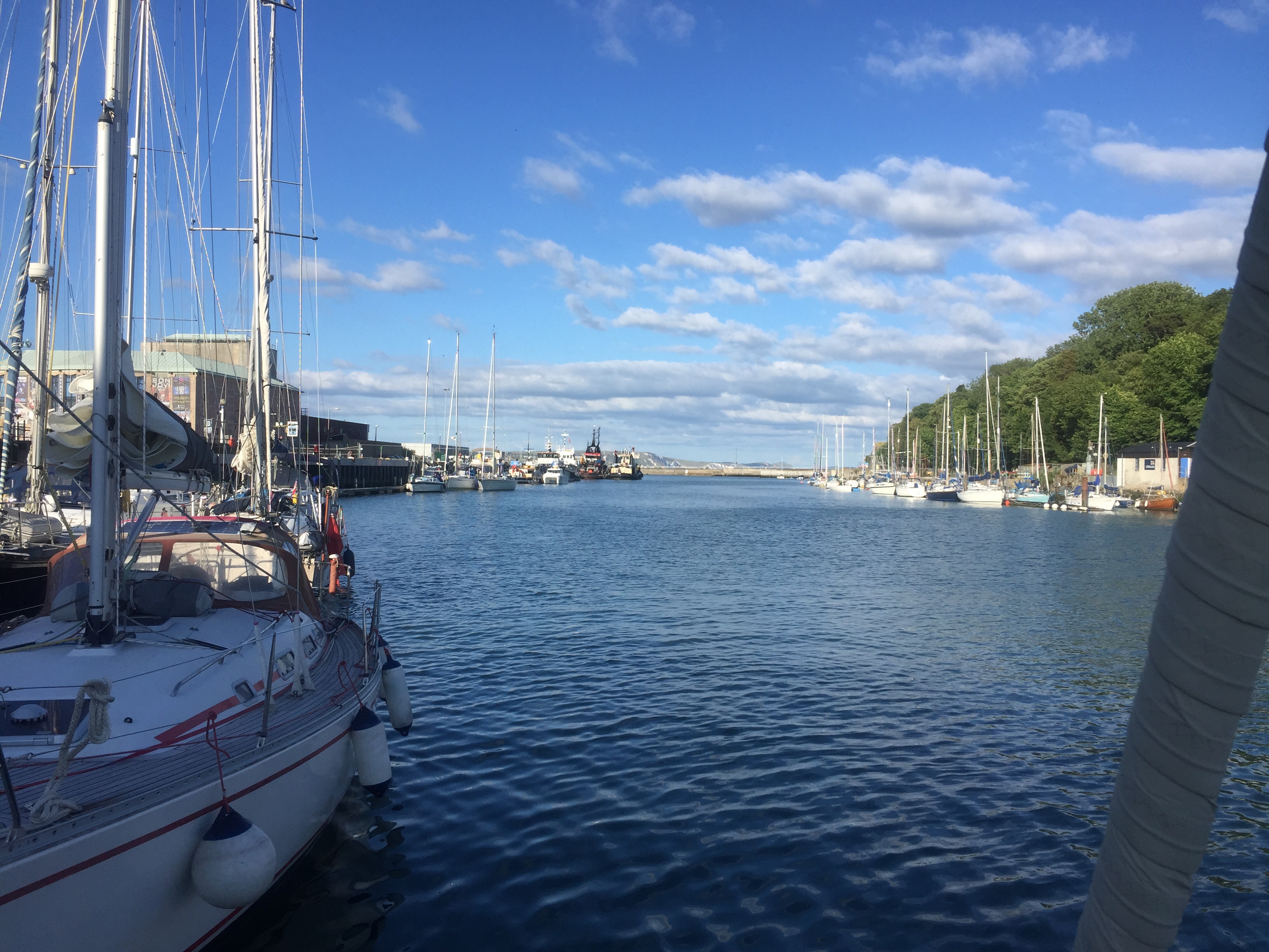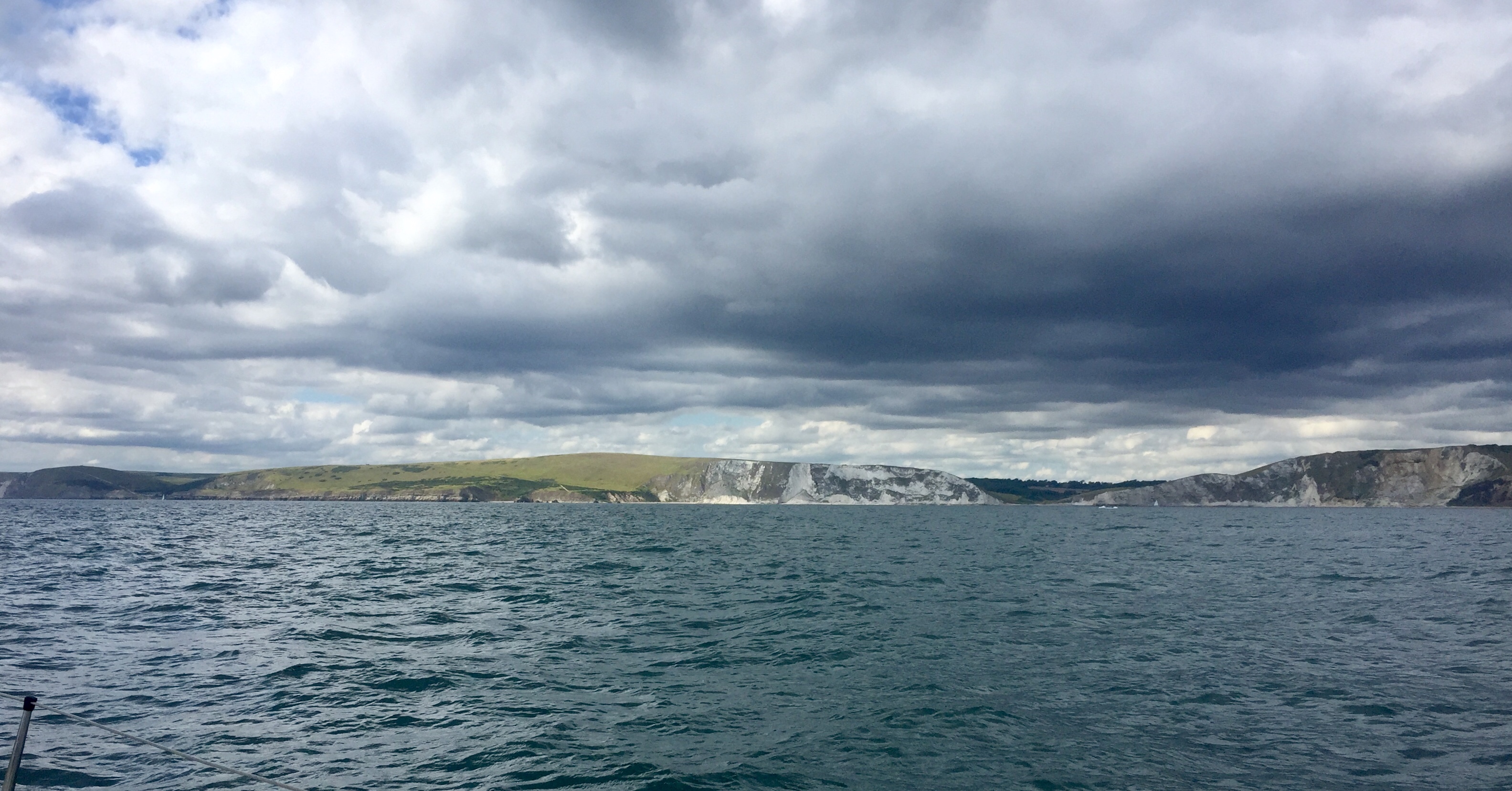 Sunday. A busy day in Poole harbour. Boats going all over the place. We left about 1130 after having bought a Sunday paper, filled up with water, made the cheese and ham rolls ….etc. The wind was thankfully light for once, weather warm and sunny. We sailed out of the harbour with full main. The wind is Southwesterly so perfect for the beginning of our journey. We’d enjoyed Poole but were quite glad to get back in the open sea without having boats everywhere to dodge. As we left the harbour and headed towards Handfast point, we noticed loads of boats in Studland bay. Presumably mostly local boats… just ignoring the prohibition??? We passed by Old harry and his wife, and on past Swanage up to Anvil point and then St Albans head which you have to give a wide berth. That’s because there’s a shallow ledge which runs out from it, under the sea, creating overfalls ( breaking waves) because of tidal flows. It actually seemed relatively quiet today and caused us no problems. Although the wind was on the nose, and the tide with us, the water stayed pretty flat and we made good progress. It was in fact an amazing days sailing.. maybe the best yet! We passed close to the Jurassic coast and the beautiful white cliffs reflecting in the late afternoon sunshine. Passed Worbarrow bay, Lulworth cove and Durdle door. The whole coastline looks like the edge of a vaguely folded pile of washing . Some bits of it just obviously crumbling into the water… revealing hidden treasures behind? Eventually we arrived near Weymouth and took down the sails. We radioed as instructed along with quite a few other boats waiting outside and were told to go to B5 where we would be second boat out from Firebird of Arne. We entered the harbour, thankfully sheltered in this wind direction ( never forget Whitby😱) , and spotted Said neighbour. Julian turned the boat round so were were into the bit of tide, and we drew alongside. Weymouth is gorgeous! By now you know we love a river harbour! Beautifully peaceful, protected water surrounded by glorious, colourful, well maintained, old buildings. I used to hate rafting up but it’s actually rather nice. You get to meet interesting people who always ask “ where have you come from “ ? and seem genuinely interesting when we tell them. You also pick up lots of tips and local knowledge which is invaluable. It was 1830 by the time we were there, so not a lot of time to explore but it was just lovely sitting watching the world go by.