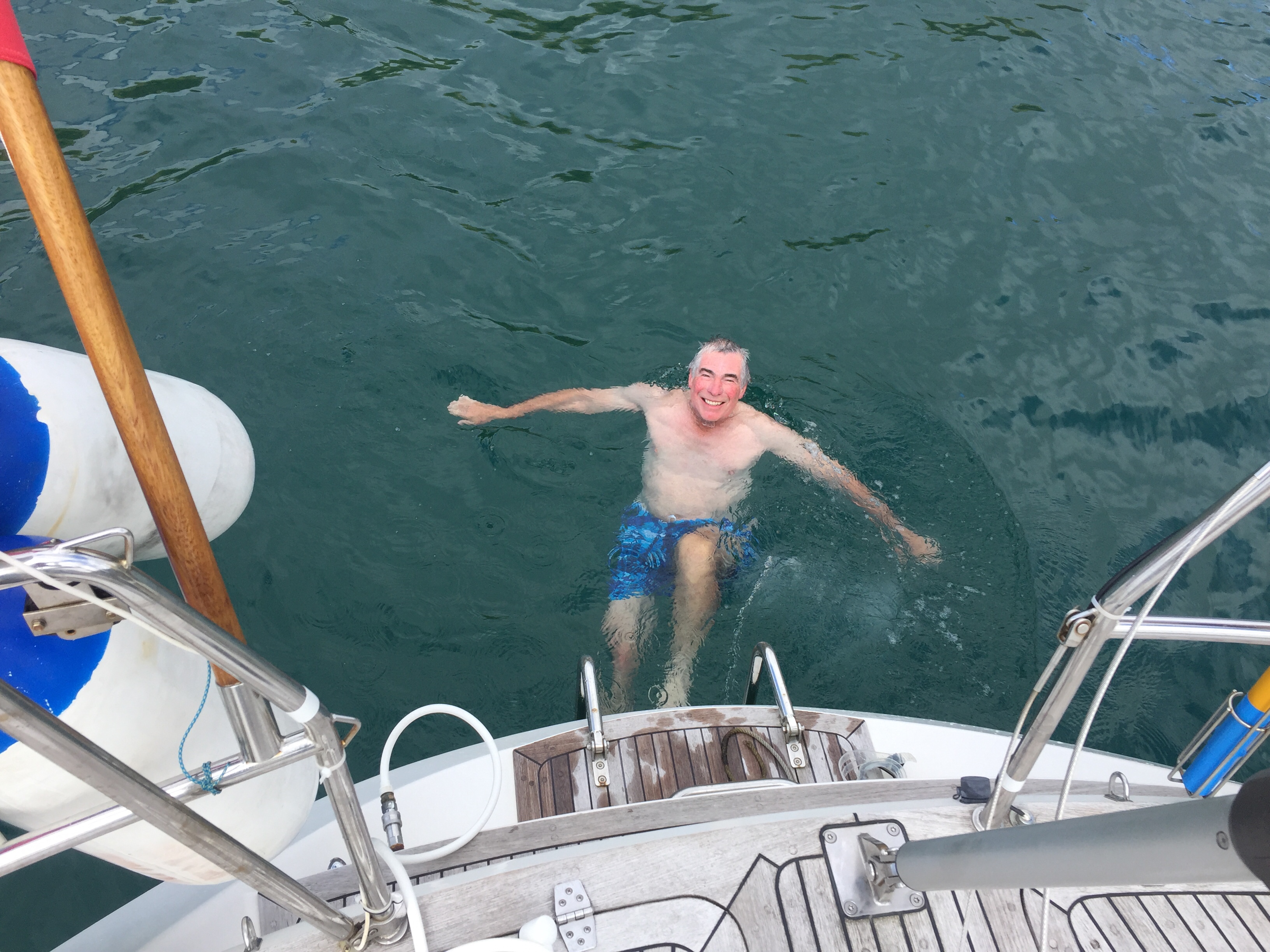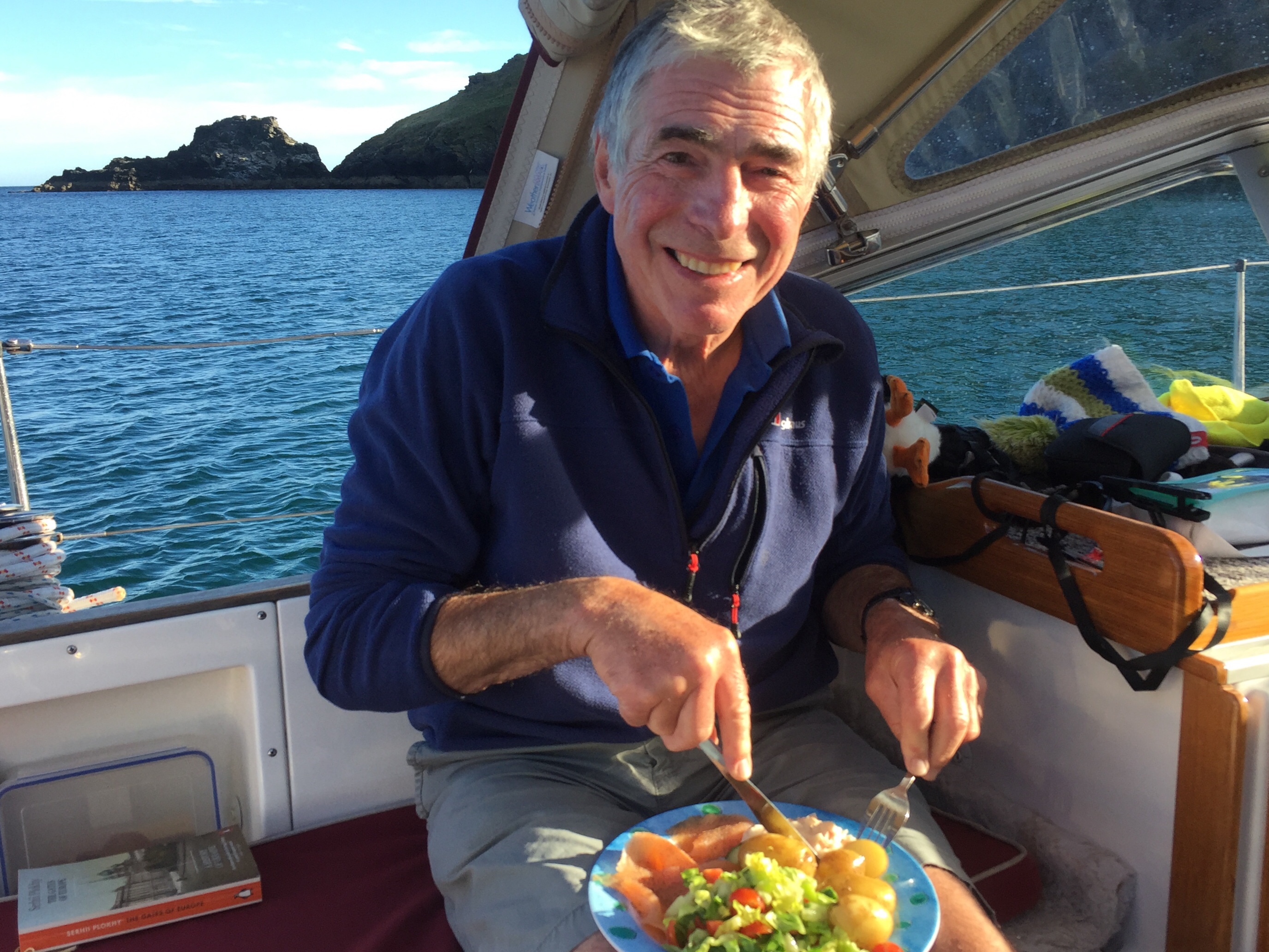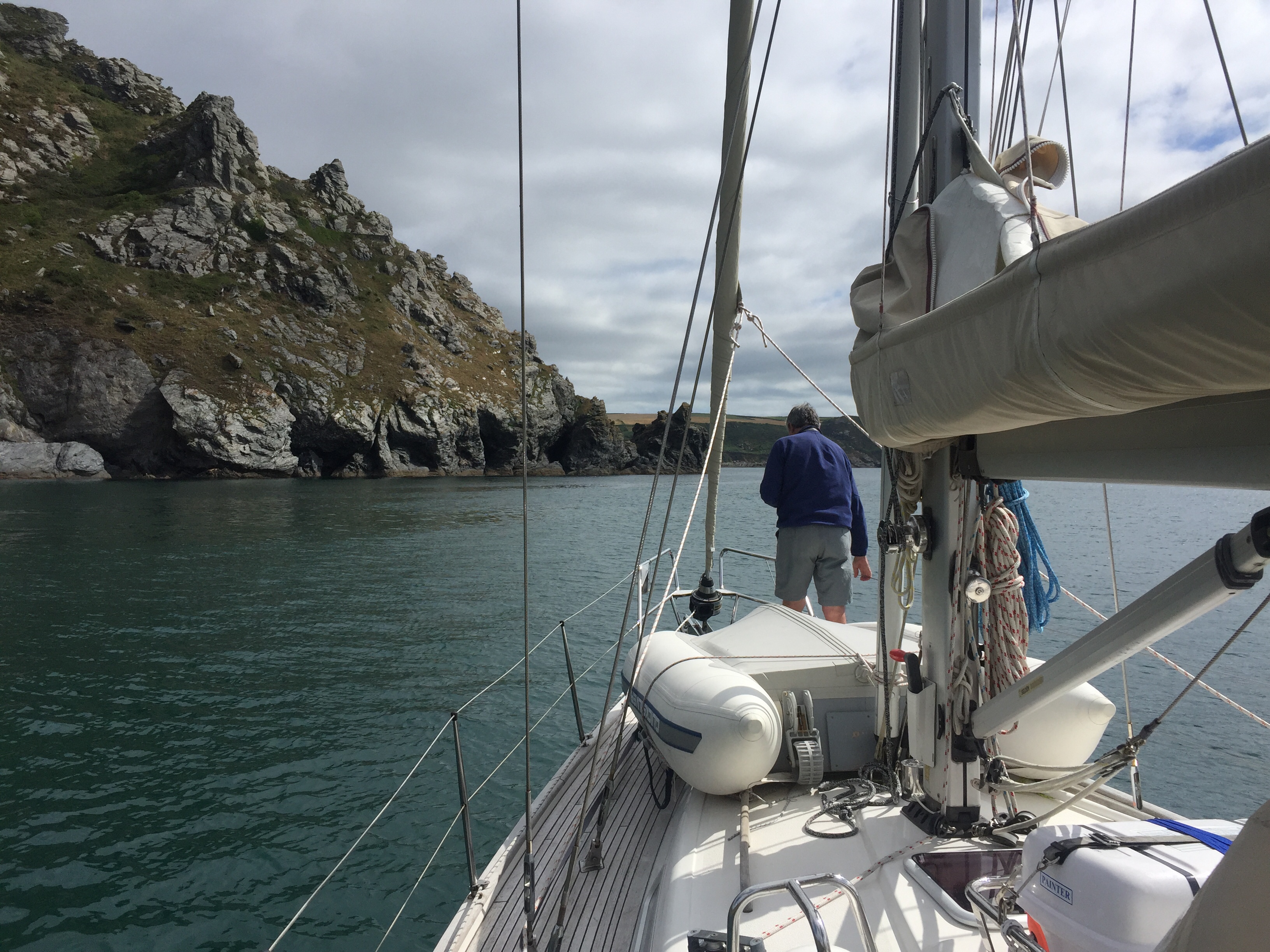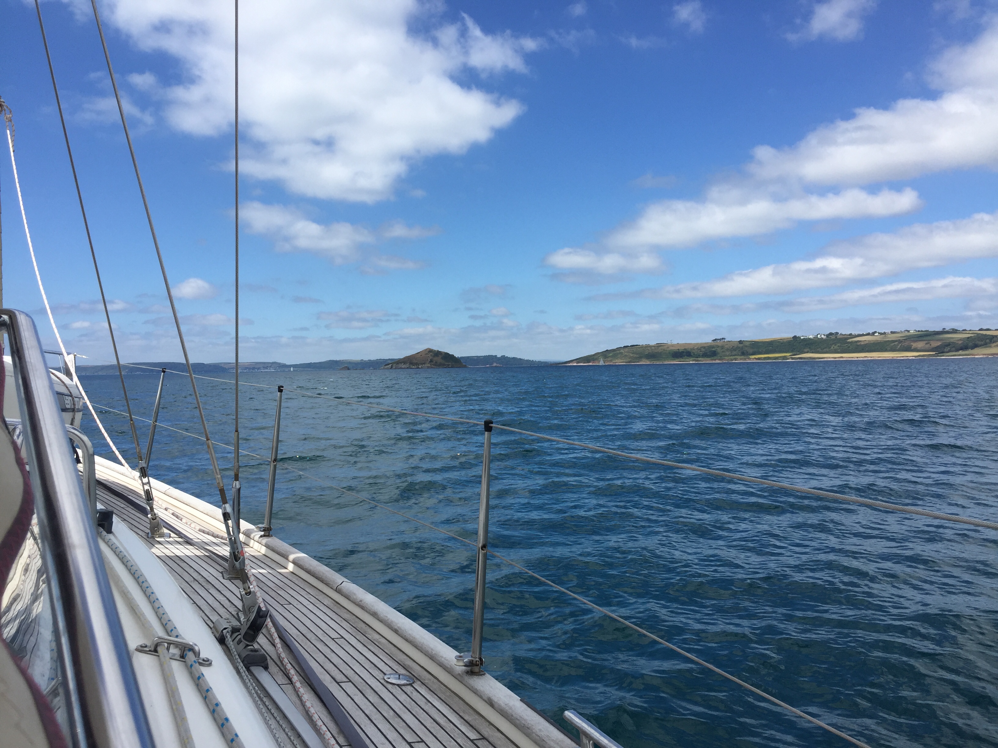 Another nice morning. There was not much wind so we motor sailed most of the way. No matter, the sky was blue and it was peaceful looking at the coastal scenery . As we approached the turning into Plymouth entrance, the wind picked up so we were able to sail into the sound and on towards the marina. This is a bit of a homecoming, as it was here that we originally set eyes on Angelique, and where we sailed in our initial few years of owning her. We passed the entrance to the Beautiful Yealm river and looked across to Kingsands / Cawsands, where hopefully we’ll be anchored tomorrow. We had hoped to go back to Plymouth Yacht haven but they couldn’t fit us in as they’re hosting a regatta for a fleet of J 24 s. So…. we’re going to Queen Anne’s Battery instead. We need to be on a pontoon as we’re having a rigging check tomorrow. We’d noticed some chafing of the main halyard and Also that the mast was bending off to leeward more than J thought it should have been…. when beating into heavy winds. So that was booked for 0830 in the morning! We were told to moor up on the visitor pontoon behind Emily Morgan. A very beautiful yacht that does charters to the Caribbean if anyone’s interested! We’d hoped to fill up with fuel as well, whilst here but unfortunately the pump wasn’t working because of some IT glitch. We had showers and then a beer in the bar overlooking the marina, which is beautifully situated apart from the fact there’s a car park in between. We ate aboard… smoked salmon and salad. It’s sooo nice having this fantastic weather!!!