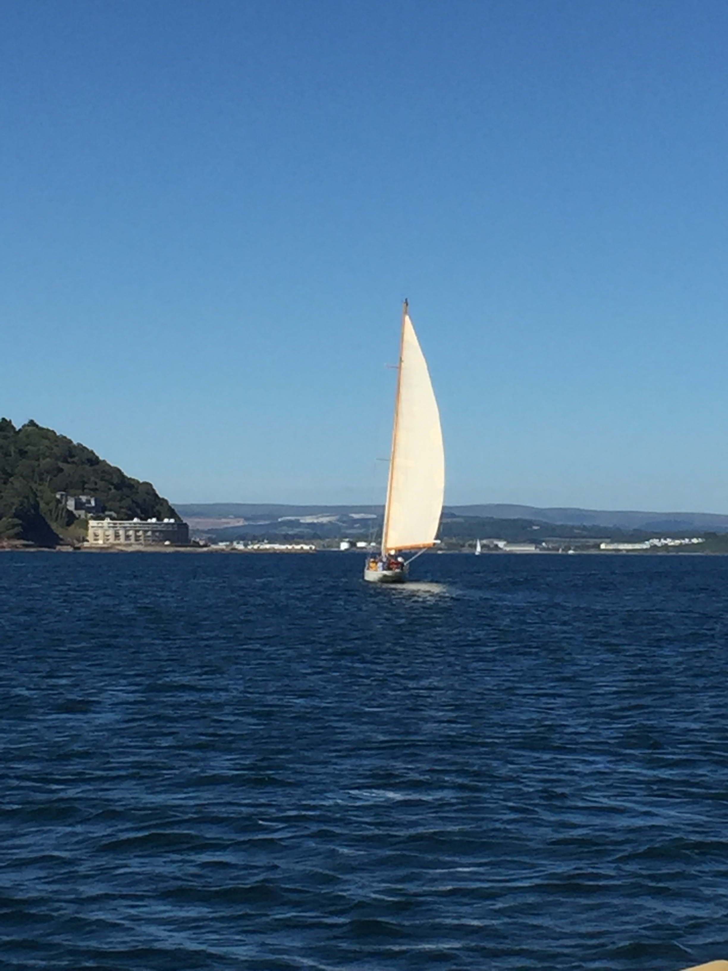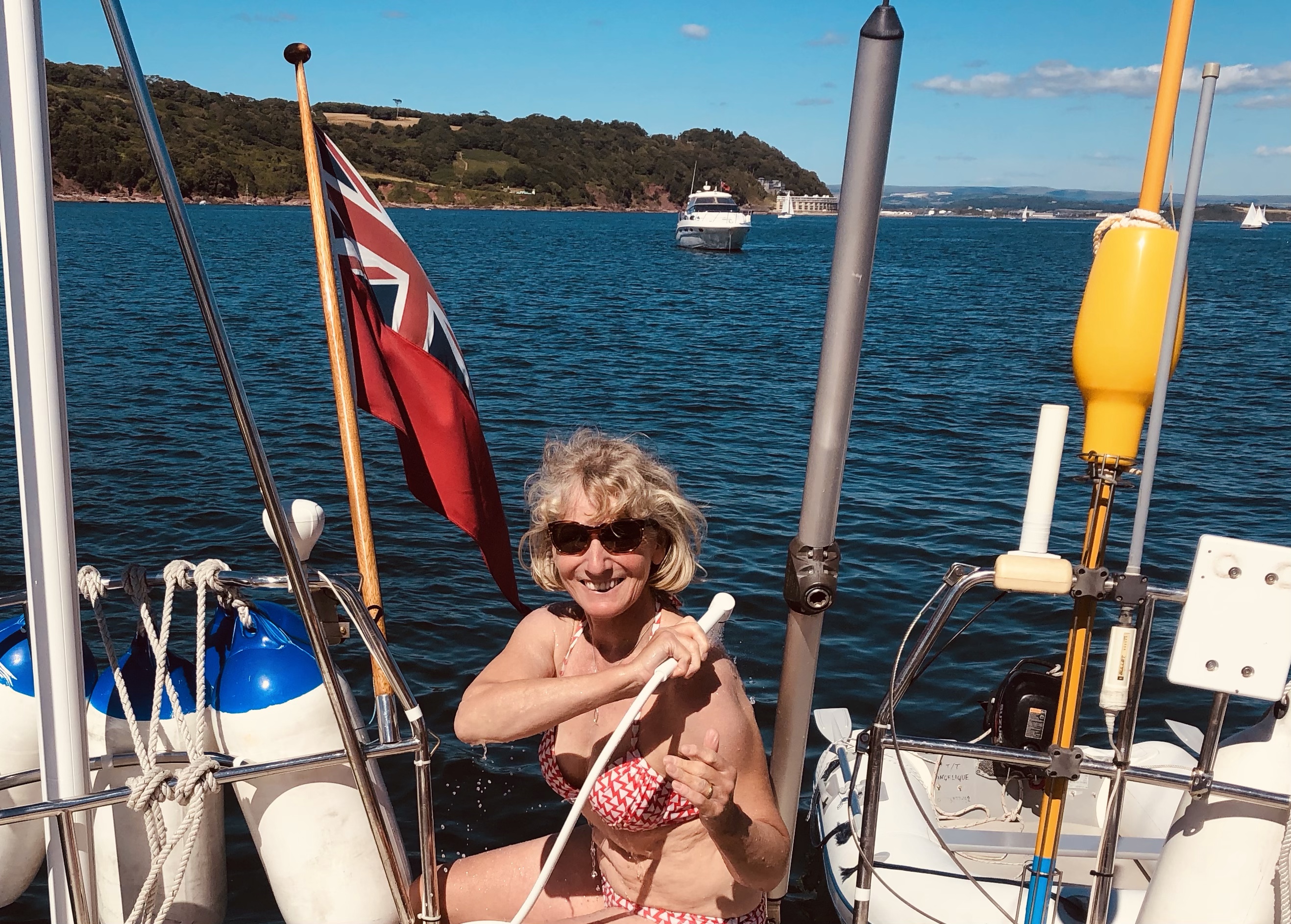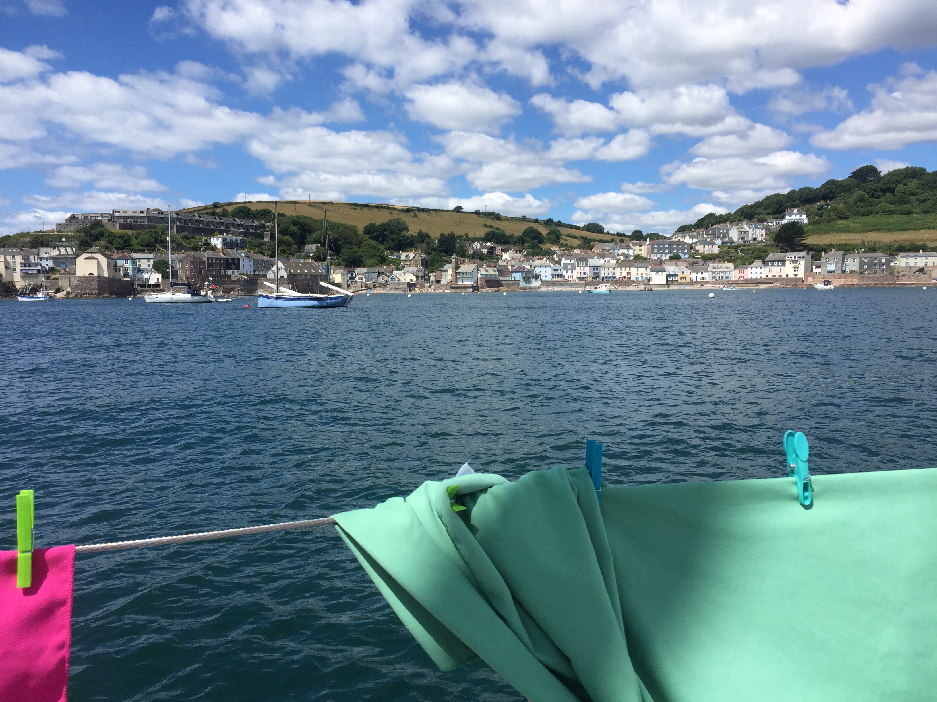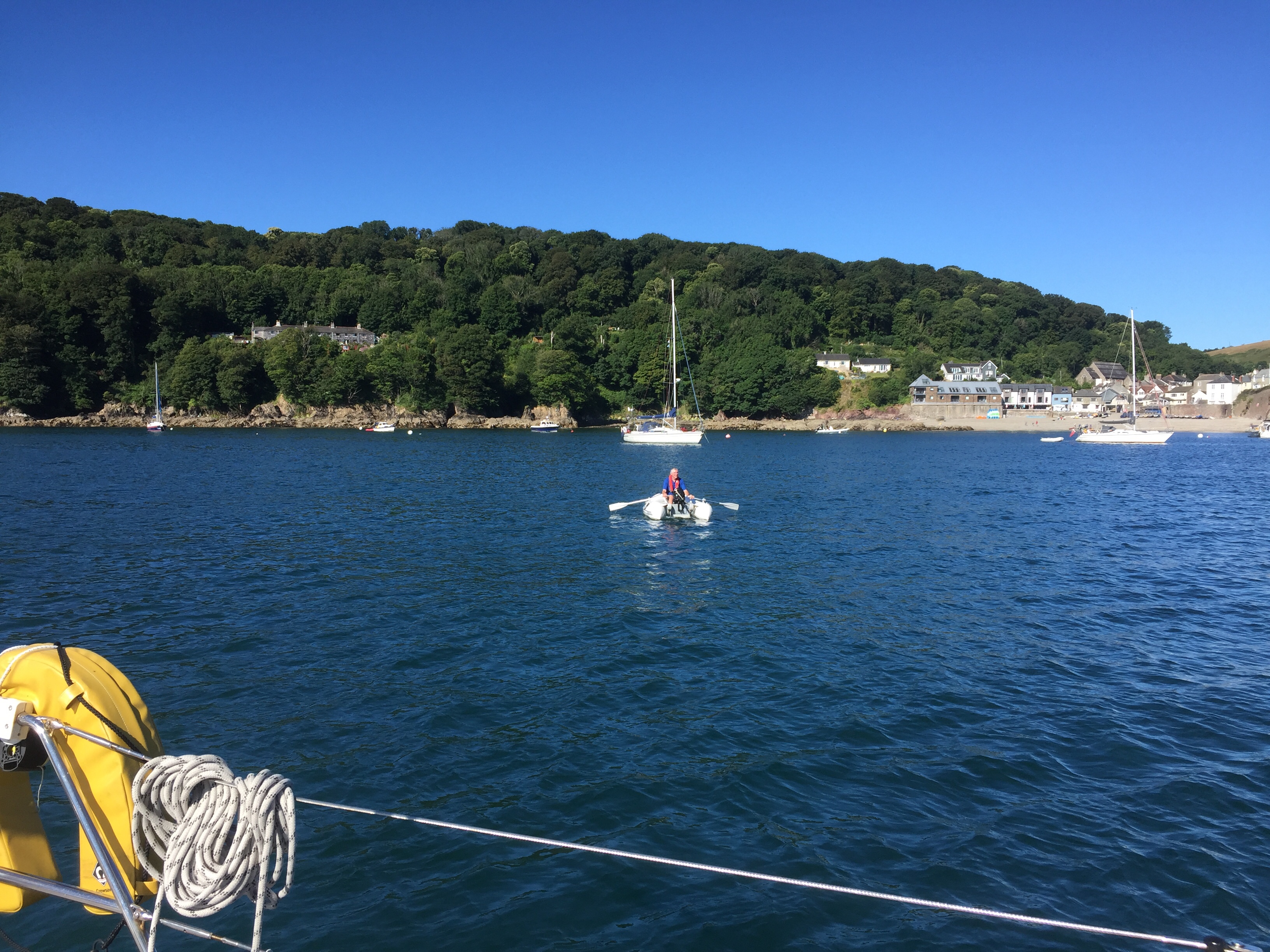 Woke up to bright sunshine. Julian got up quite early to go ashore in the dinghy before the crowds were about. The scene was lovely, early morning sun shining on the pretty village houses with the distinctive clock tower in the middle. It really is a beautiful spot. The wind was still offshore do Julian rowed back rather than using the motor. We then enjoyed a peaceful day in the sunshine doing nothing much. Julian read his newspaper cover to cover, I did a bit of sunbathing on the foredeck. And we ( even me) went swimming off the boat as it was really really hot! I watched the Ladies finals using iplayer and the hotspot as the tv wouldn’t work here. We watched the world go by.. boats toing and froing. People enjoying themselves. It was SO crowded on the beaches though, we definitely made the right choice to stay on the boat. 😎
