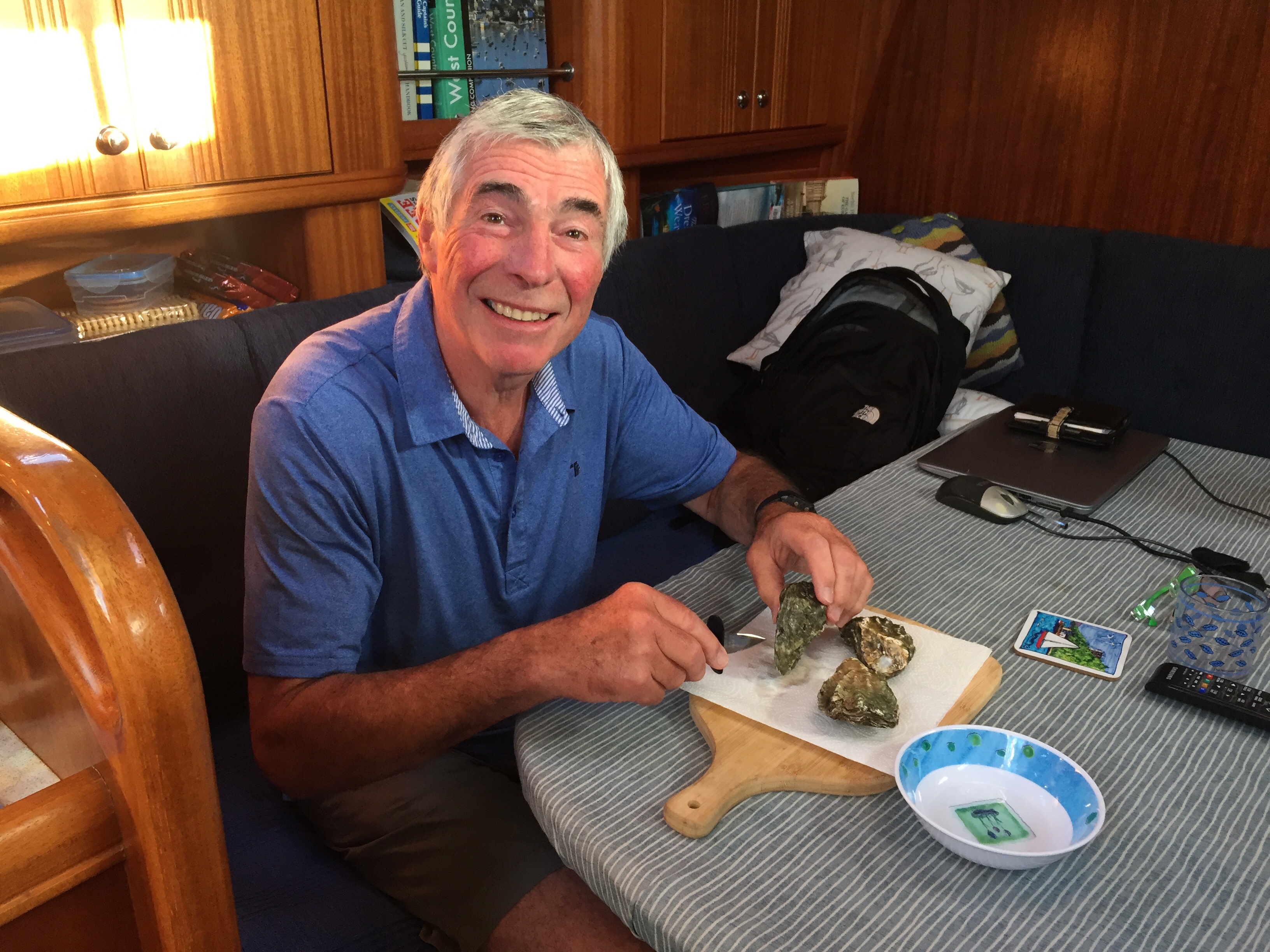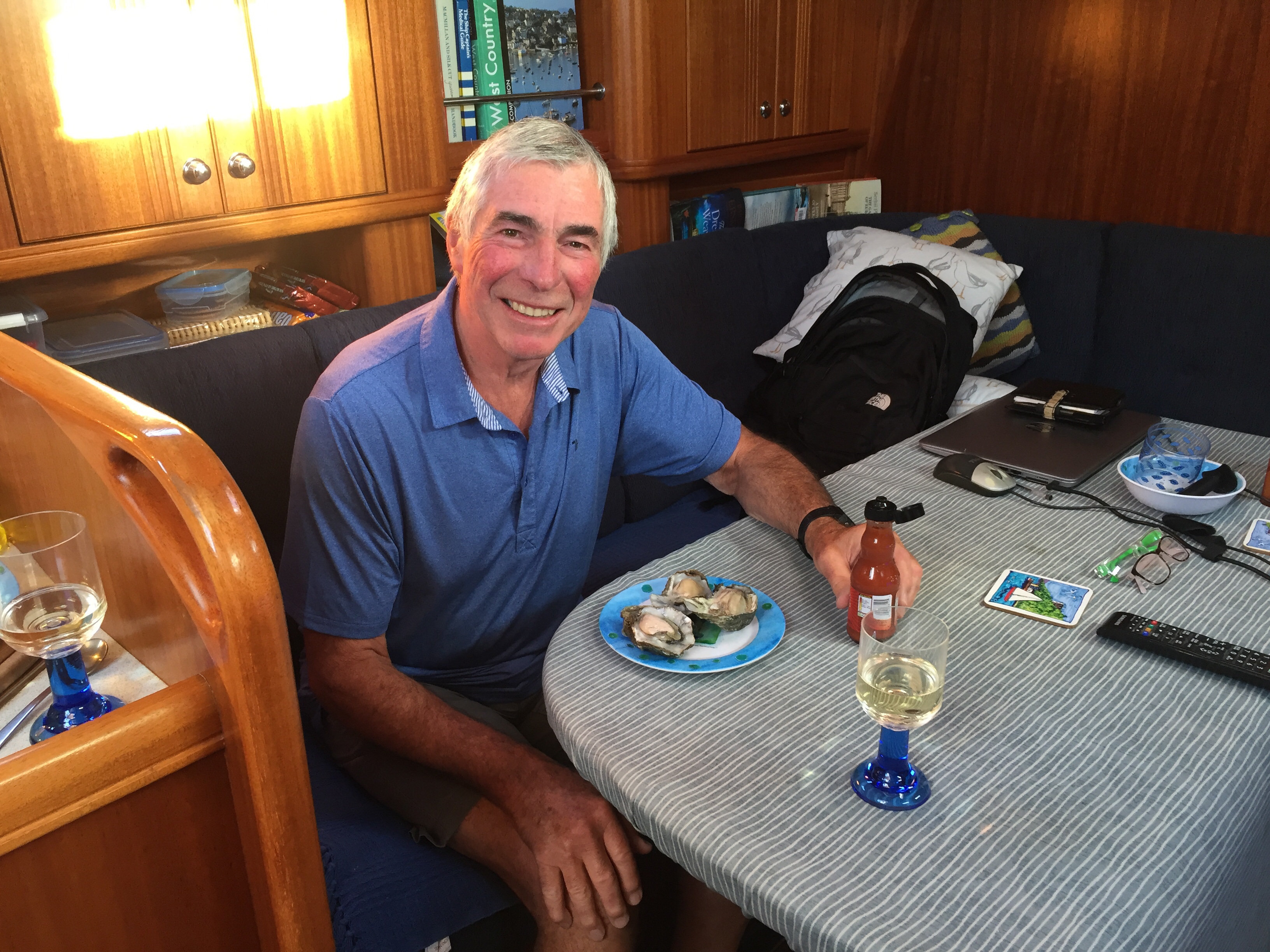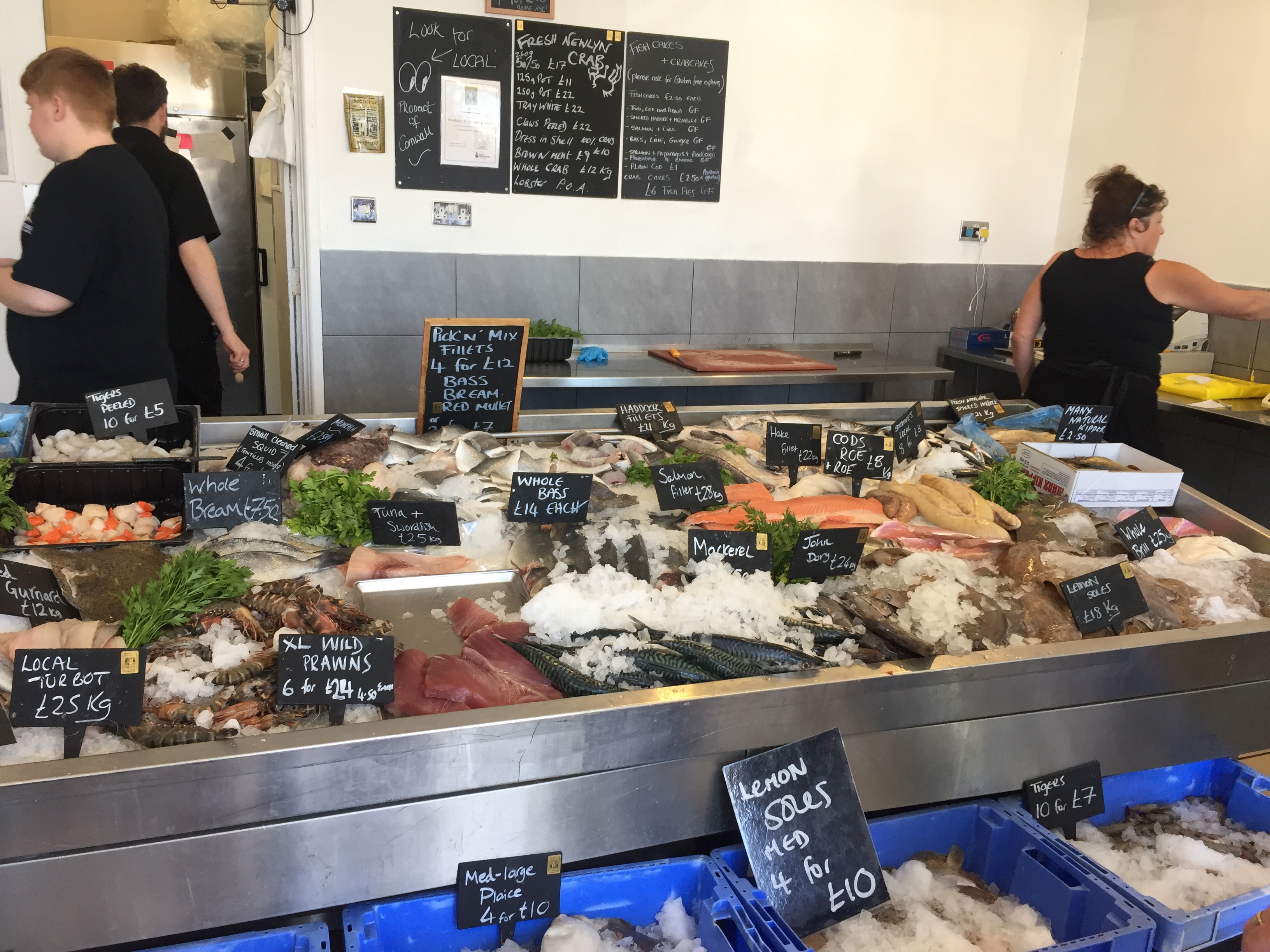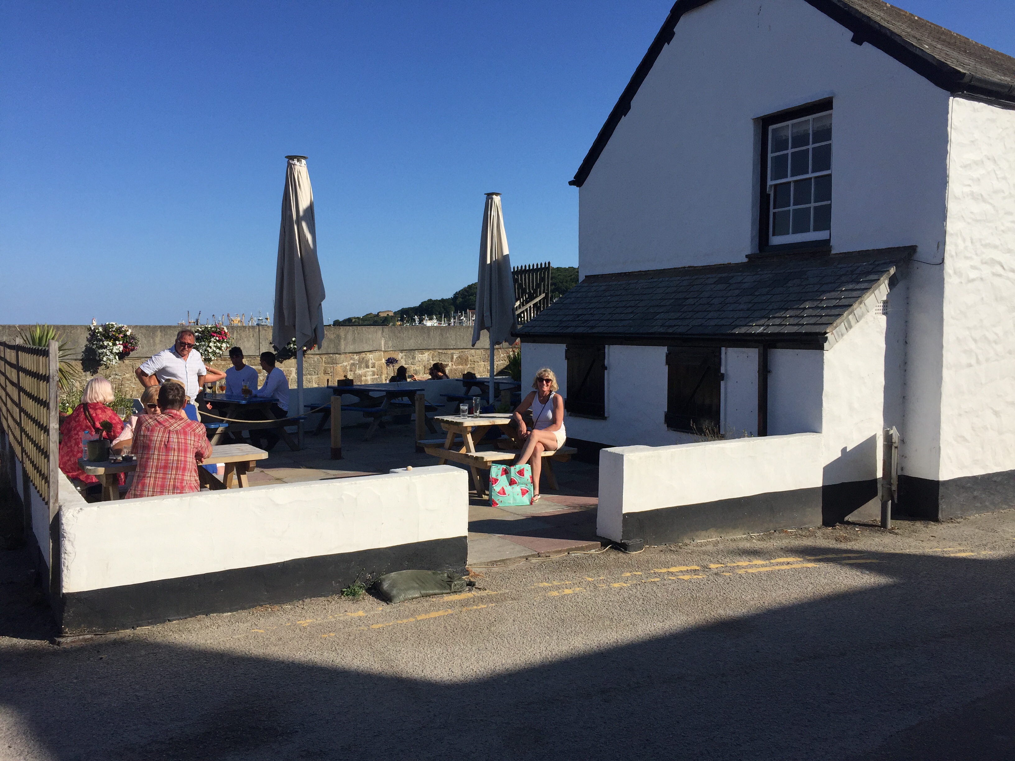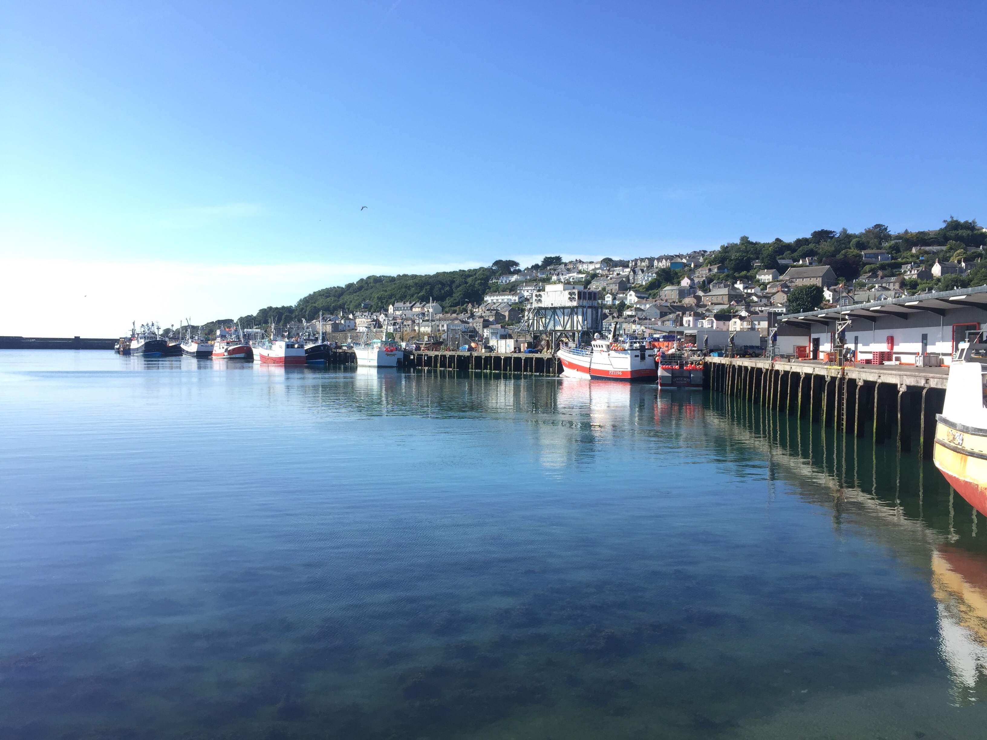 So having been told that the fishing boat was going out at 0500, we had attached ourselves to our other neighbour who was going at 0600. Of course when we got up at 0530, “ Girl Pamela “ was well and truly still present! Released ourselves from Mr “ going at 6” and reattached the lines to “ Pamela “ . Once he had gone, we then unattached ourselves from Pamela and sorted our lines out so that we could moor properly to the pontoon. Hurrah 😀! I then went back to bed! It’s going to be a hot day here. We decided to do our shopping early so as to be able to avoid the hottest part of the day. We knew the Lidl here was along towards Penzance and actually had been before in 2019. Amazing what the weather can do to our memories. I remember a bleak winswept rainy place. Today quite the opposite… Newlyn is lovely! Not touristy. Quaint and yet real. The walk along the front to Lidl was delightful. A breeze blew off the sea which was glittering in the sunshine. Not a cloud in the sky. It was low water and people and dogs were enjoying the sandy beach, rock pools and swimming. We decided our treat this pm would be a swim followed by a beer at the Tolcarne inn which we had spotted on our way to Lidl. Once the shopping was done, I left J to put it away whilst I went in search of some fish for supper. Since Newlyn has a huge fish market on the quay, A fish monger shouldn’t be hard to find. In fact it was just across the car park from the RNLI visitors centre to the Penlee life boat. Such an array of fish ! I bought something filleted for supper and also 3 oysters for J , since he’d missed out on the Pyefleet creek ones. I had to buy a special knife too…to open them with. 😳. The next couple of hours was spent doing laundry. There wasn’t any washing machine so I had buckets and hose on the pontoon, and although time consuming was effective! Once that was done and all hanging up we went to the beach and had a swim in the sea. It was warm! Laid in the sun a while before wending our way back via the Tolcarne inn. 🍻 J watched a YouTube video on how to open his oysters. On our return we bought a lemon and tobasco sauce 😬. All went well with the preparation, and our fish supper was yummy 😋 .