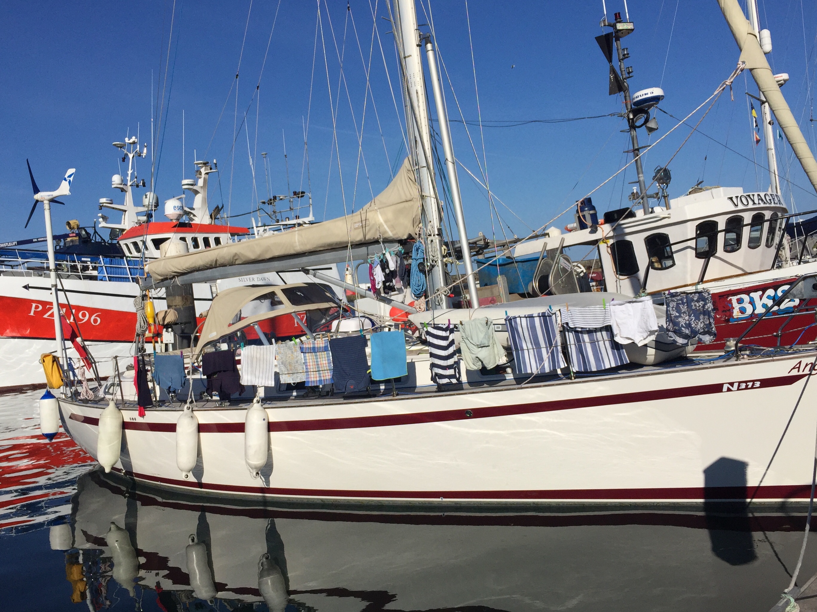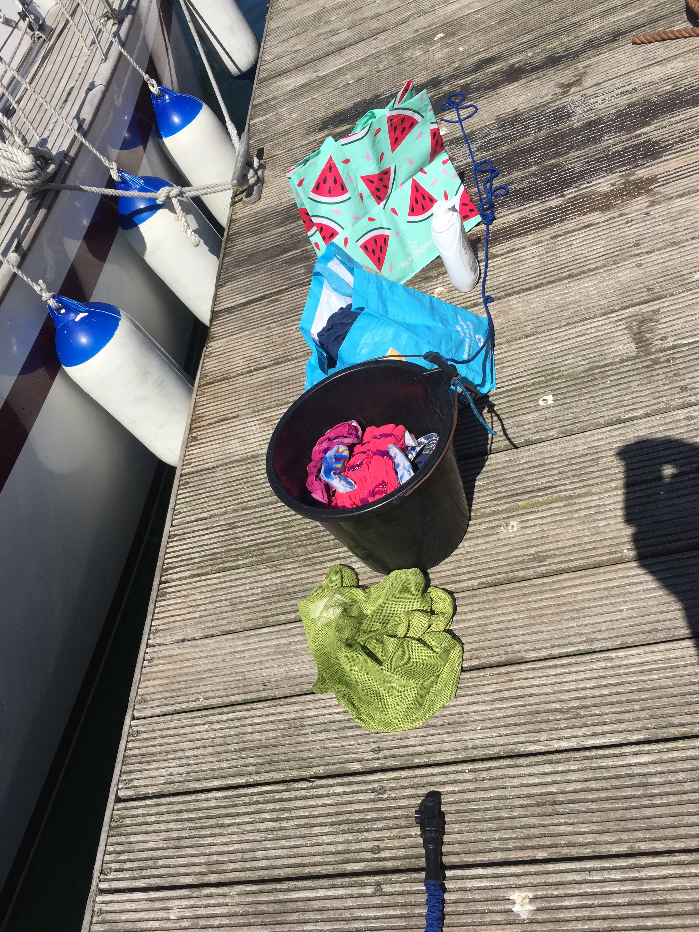 What I learned today…. it seems “ there’s always a lone sock left in the washing machine “ applied to buckets too. A good idea NOT to empty the washing water into the harbour, before checking there’s nothing left in the bucket….. 😮