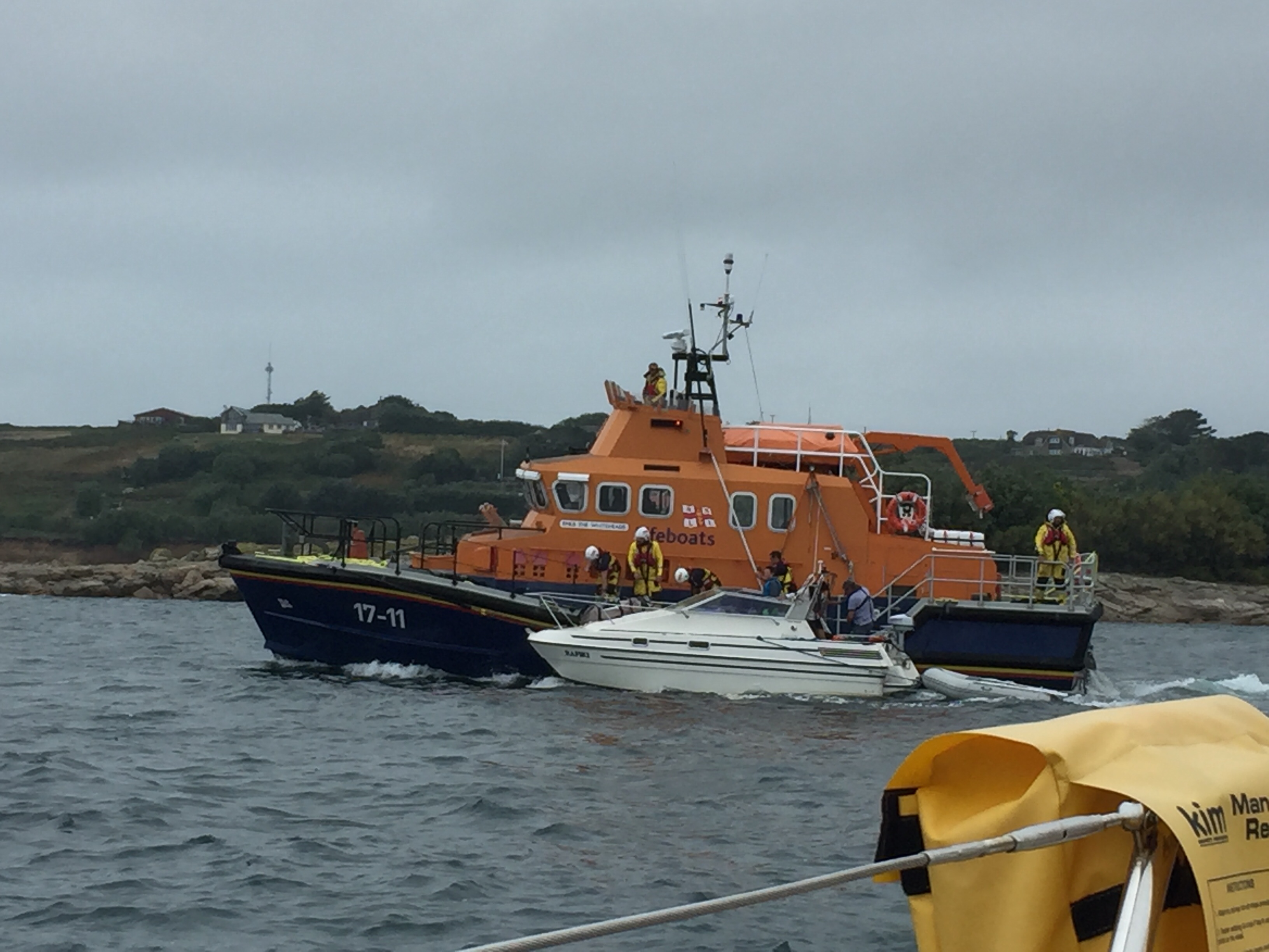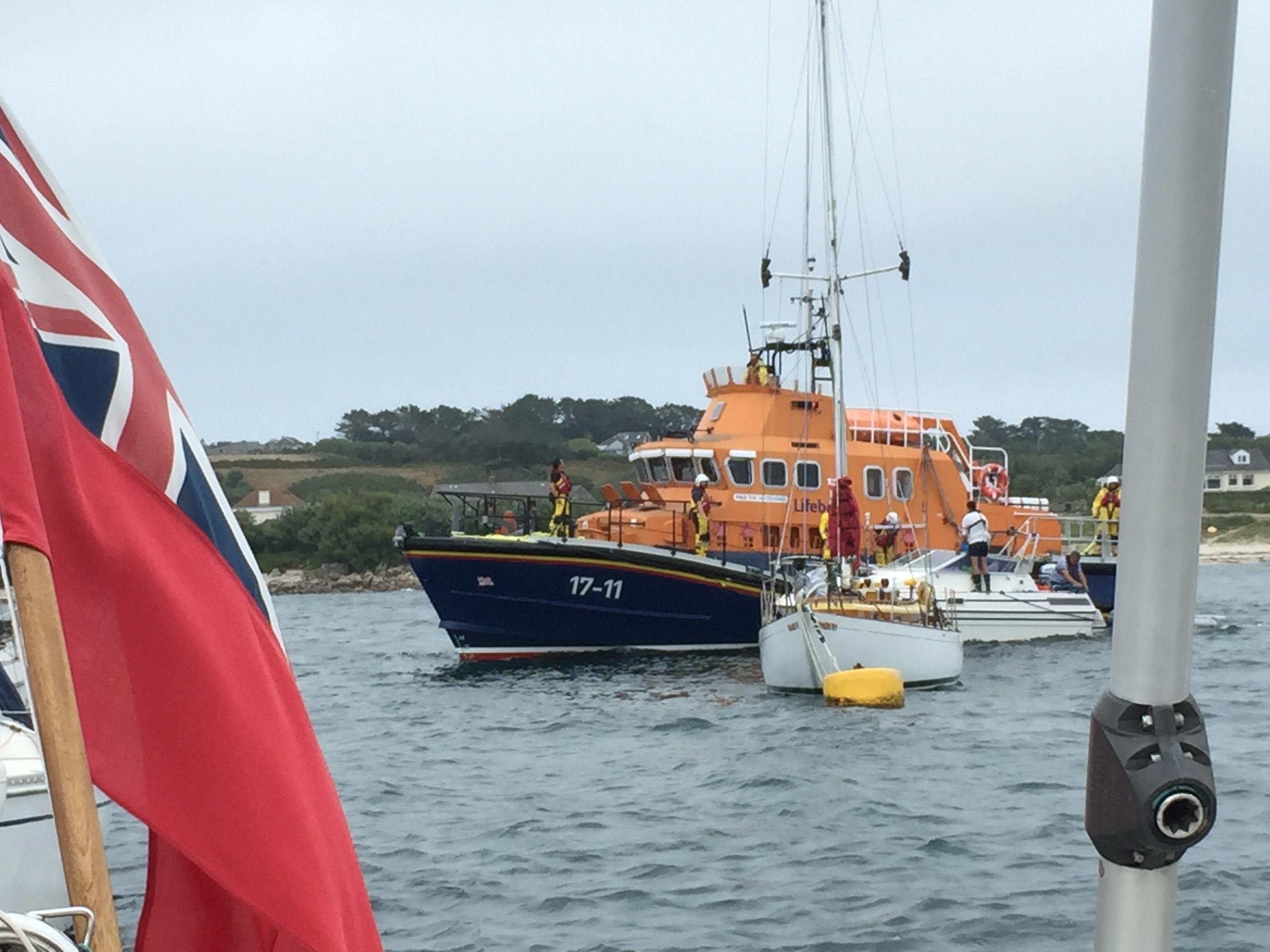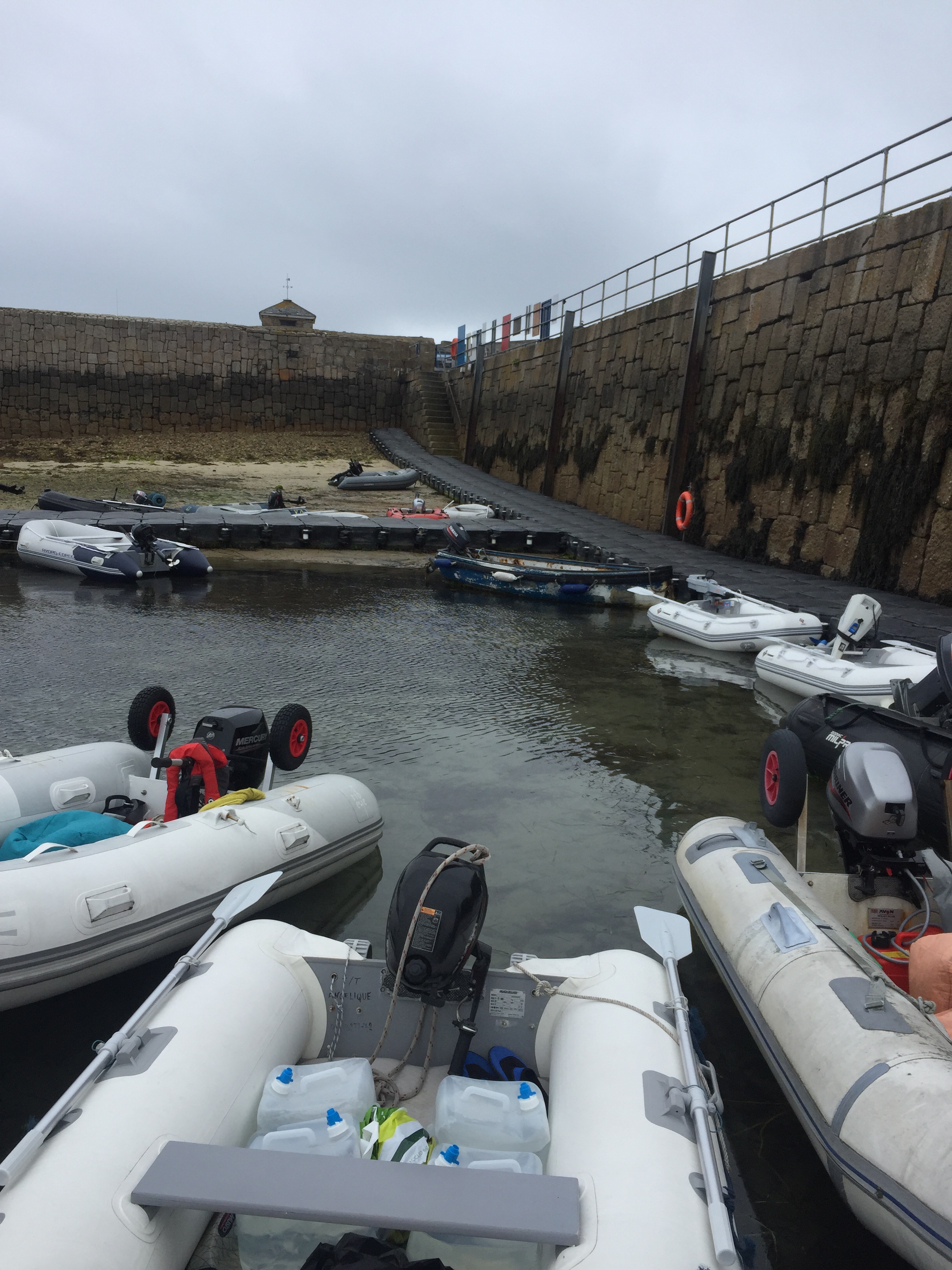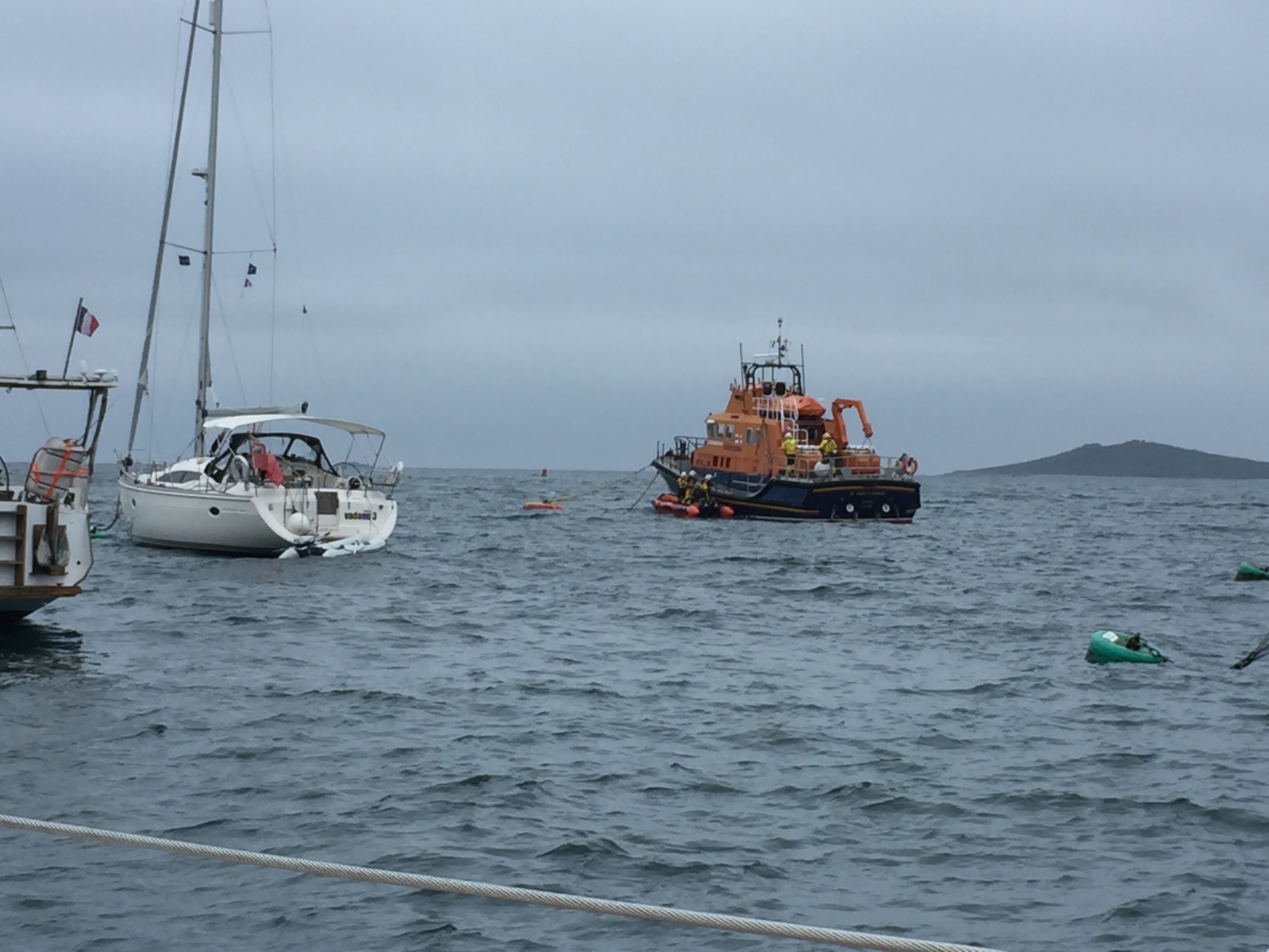 Today was the sort of day you could just do without…… weather wise, when you’ve got a load of jobs to do. We’re gearing up for leaving Scilly. We need to do shopping, laundry, water filling, cleaning. Etc. The wind got up and the swell increasing. We managed to do the first trip without to much hassle. I’d thought out a new technique for filling the water containers from the quay…. useful to anyone who may ever sail here, and therefore need water. Julian took the hose to the quay and dropped it down the harbour wall to me. I then filled the containers and it was only yards to transfer them onto the dinghy. Hurrah 😀. The laundry was great. So convenient on Port Cressa beach. Sibleys is a family firm on these islands and also has the fuel business on the harbour. Very helpful all round. It cost me £15 for a service wash, and it was all done washed,dried and folded by 1400. All in all we did 3 to and fro trips today, quite exhausting, especially shopping in the coop! Sadly we found out there there were no free Scilly carts ( golf buggies) for tomorrow ☹️. But that he would let us know if there was a cancellation. The sea state got worse as the day wore on, making it difficult even getting on and off the dinghy. At one time, we saw the lifeboat bring a forlorn looking motor cruiser in … who knows what had happened, but it looked like everyone was safe. One of my other jobs today was defrosting the little freezer compartment which was completely frozen up☹️ note to self …. must do this more regularly. I thought it was done a couple of weeks ago but apparently it was when we were in Woolverstone… east coast!