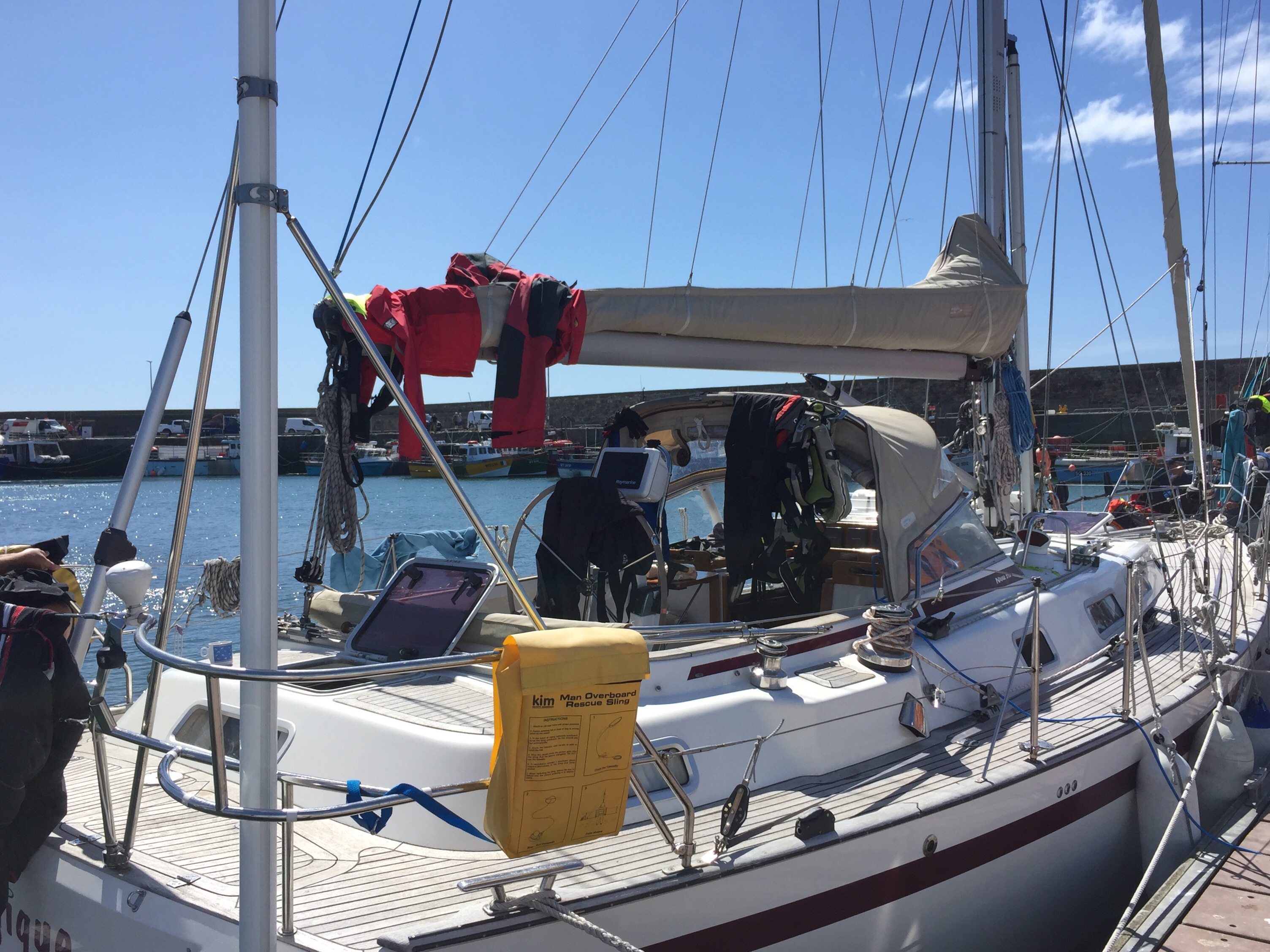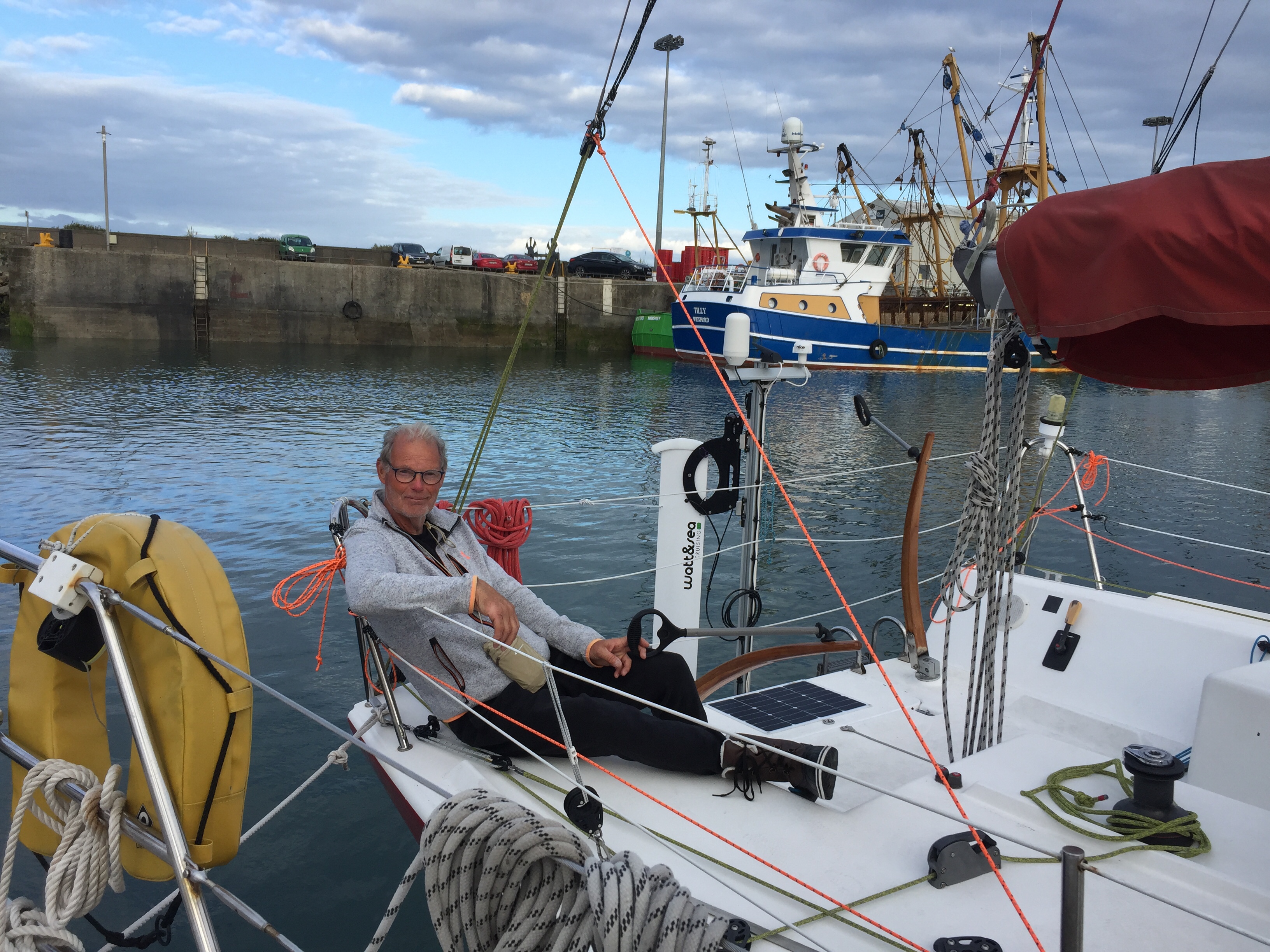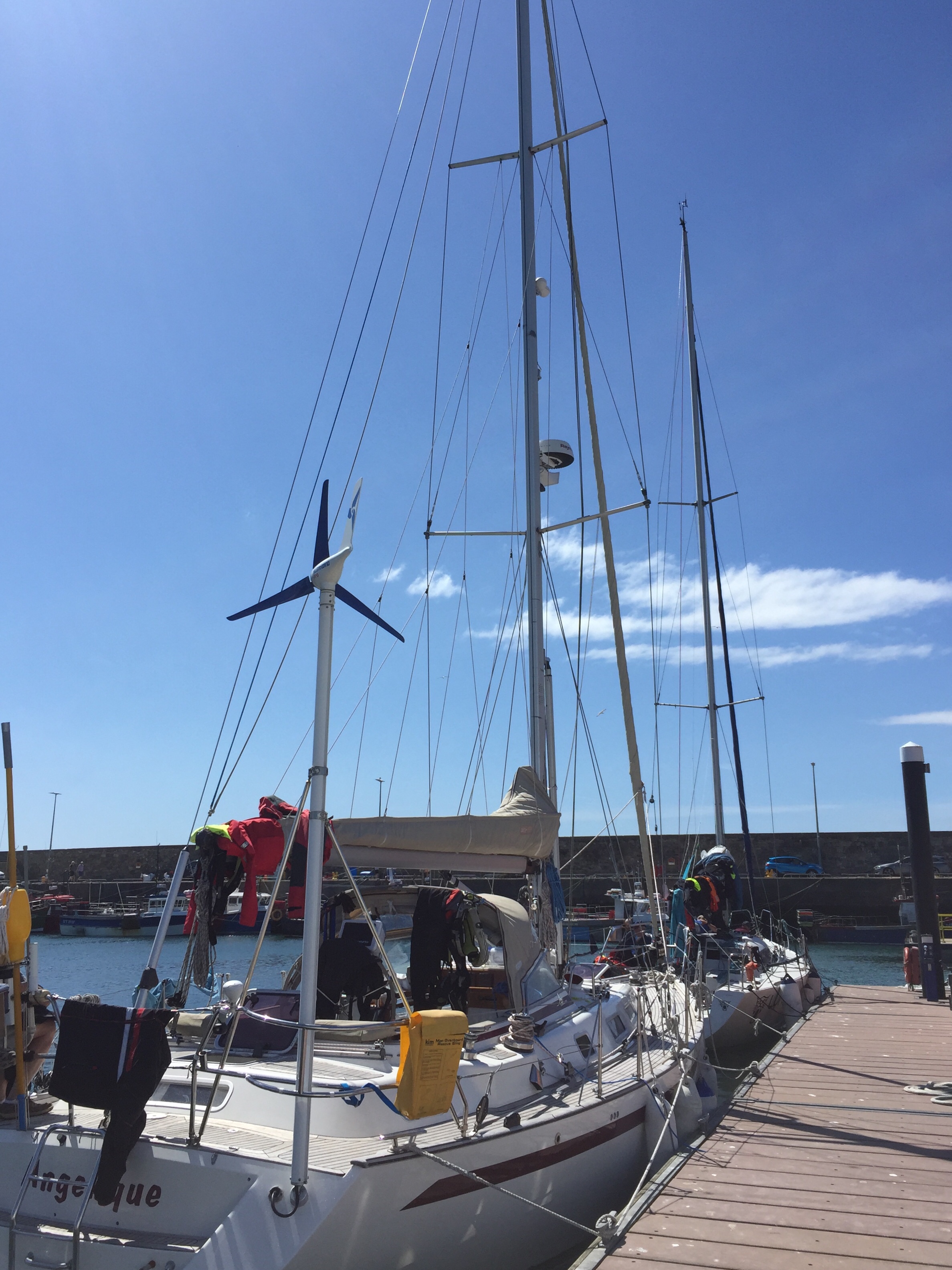 We were here. A trip up to the HM office revealed all the facilities and a novel way of entering the gate …. by phoning a number. Sometimes it works…. sometimes it doesn’t 😬. We had a sleep. Then we helped a lovely Dutch sailor called Folkert to come alongside and raft up to us. He came on board for coffee and a sandwich and we all talked sailing. We had a guided tour of his boat, a pogo 8,50. Very different type of boat from Angelique…. much more racy, Spartan and vendee globe like. Then we went for an explore of the village and oddly enough ended up having a Guinness or two at Keoghs ! Later our friend Stan arrived having got a plane and a bus, and we went and got fish and chips. 😋