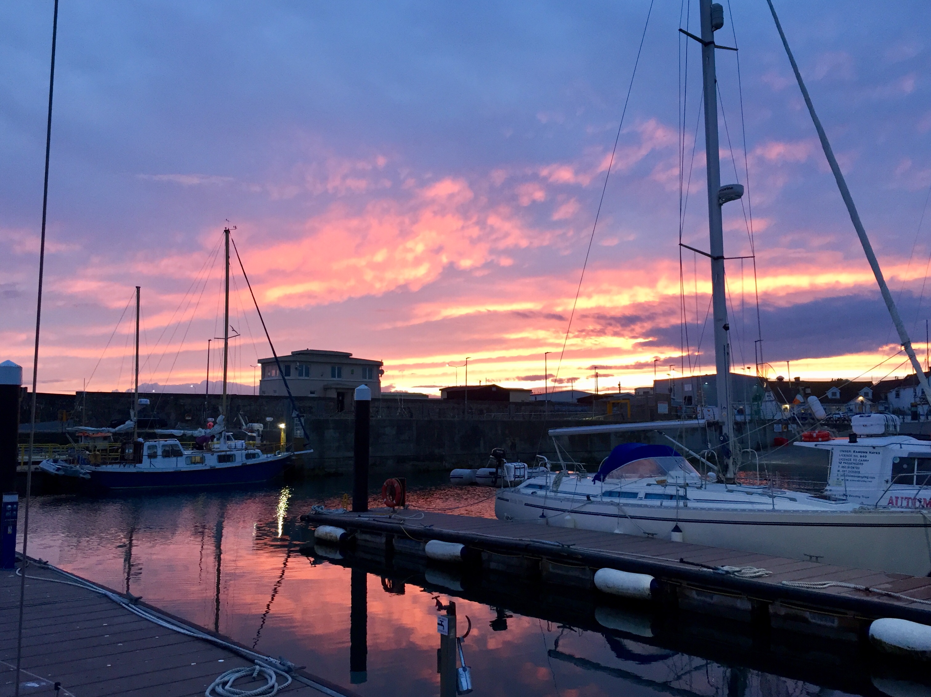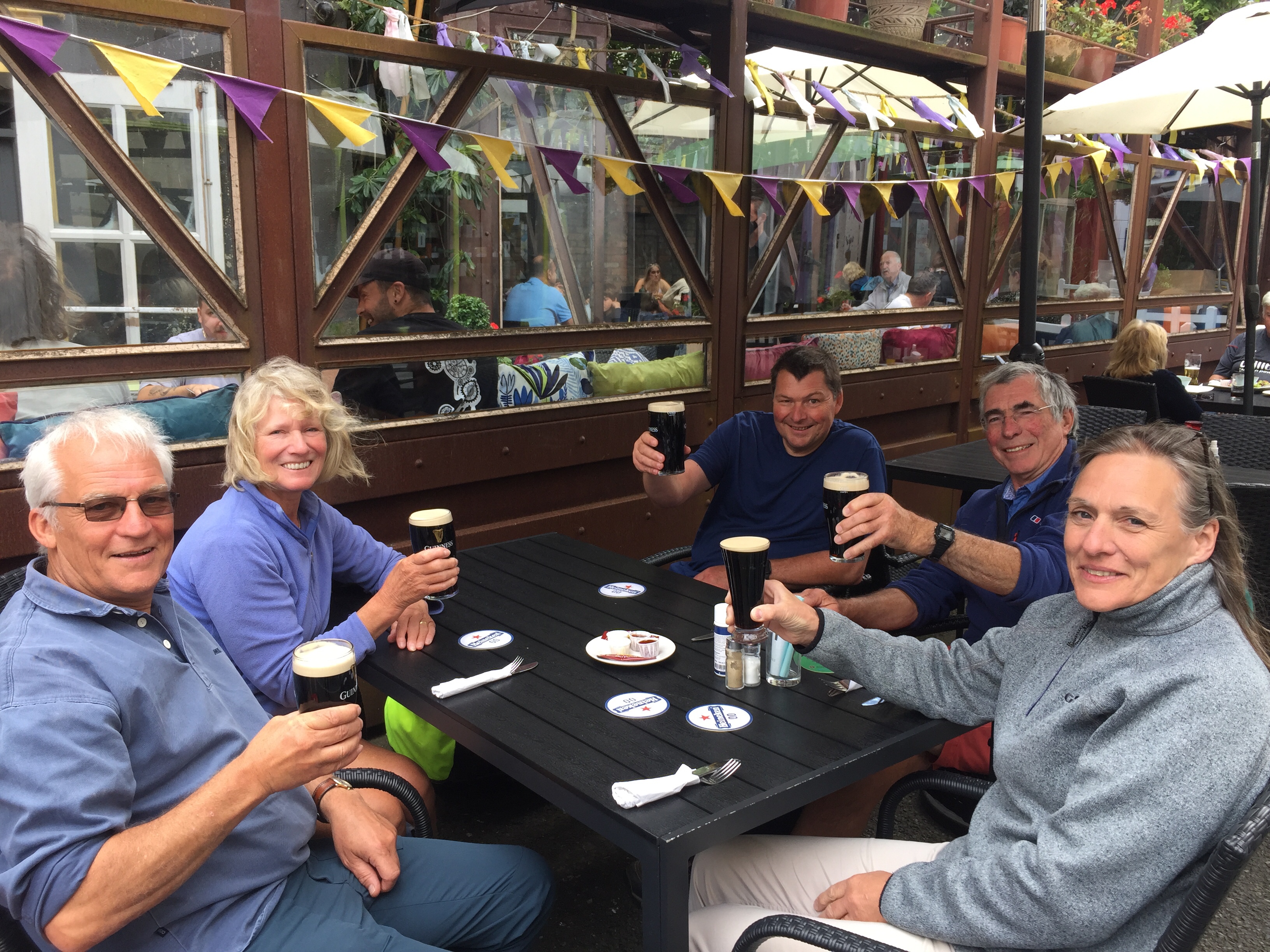 Sunny with clouds. A definite nip in the air compared to Scilly, but lovely nonetheless. Stan had slept ok on the couch and was up making a brew. He had become particularly well acquainted with the bus timetable the day before, and was therefore the person on the ball when it came to organising our day trip to Wexford. The Phillips had to catch a bus from there to Dublin so we all thought a outing by bus would be good. Sue P had done some research and found that they ran every 10 minutes 🤔 or was it that it took 10 minutes 🤔. Who knows?!?! We got the 1040 at 1050 ( having missed the one 10 minutes earlier) , and made our way through the pretty countryside to Wexford. Getting off at the train station stop about 40 minutes later, we had hoped we would be able to leave Sue and Tim’s luggage there, but sadly not. Nothing for it but to lug it around whilst we explored Wexford…… which was lovely! A tidal river estuary With a wide span bridge. The town was really quaint with old narrow streets buzzing with people. Shops galore and people sitting out in the streets drinking coffee and chatting. We had a coffee at Franks and rested the bag carriers, before doing a very small sightseeing circuit of Wexford. Finally eating at a lovely traditional Irish pub, called Centenary Stores. It was sad to say bye to Tim and Sue, as they waited at the bus station on their way to Dublin. The three of us got a taxi back to Kilmore Quay in the late afternoon sunshine. Julian went up to the chandlers to try and find some bolts, whilst I cooked up a fish supper from the leftover fish we couldn’t finish last night. ‘‘Twas delicious “. Julian had said he’d help Falkert tomorrow morning, as he was leaving at 0700, and us not long after, so we were in bed early.