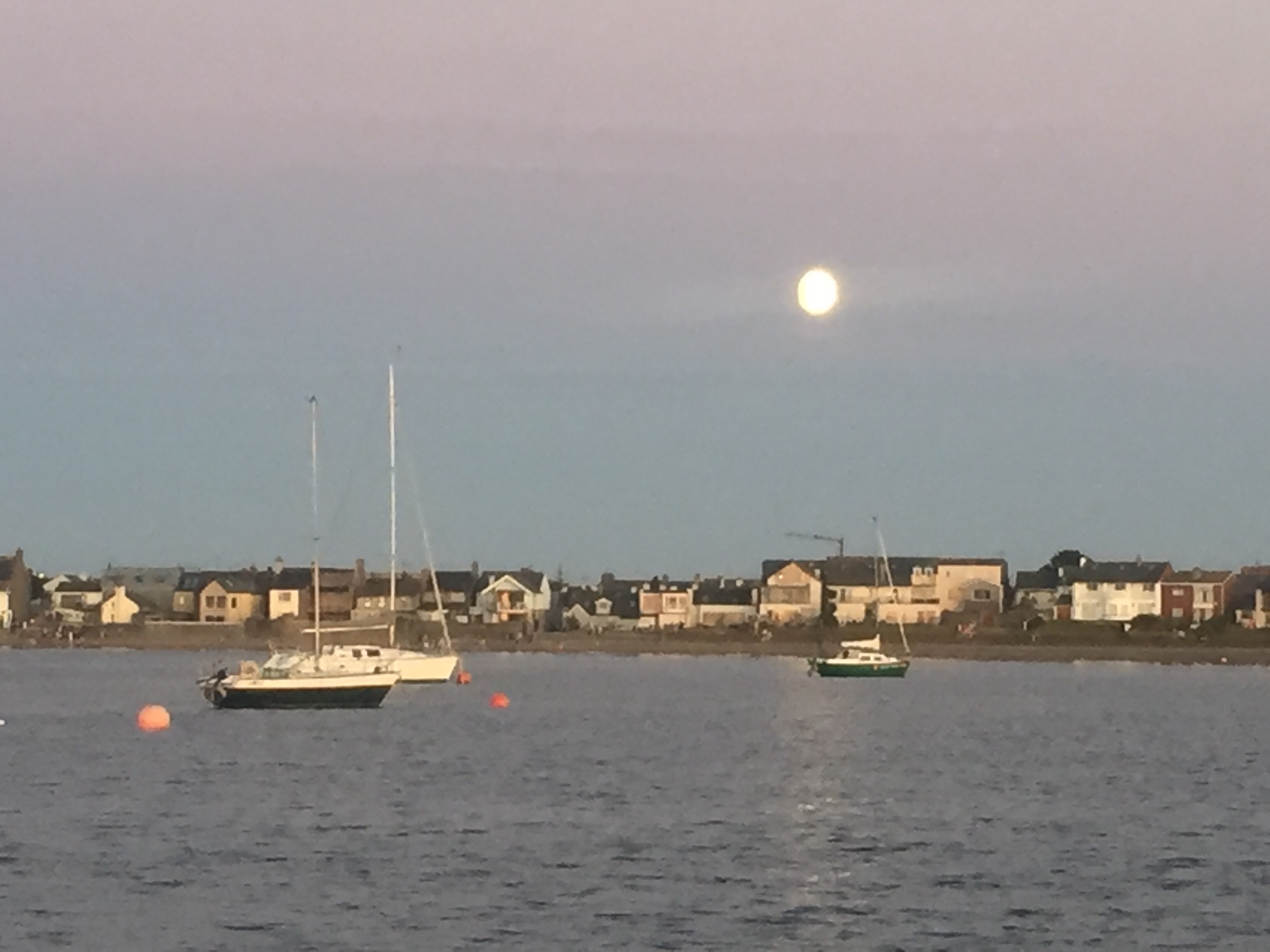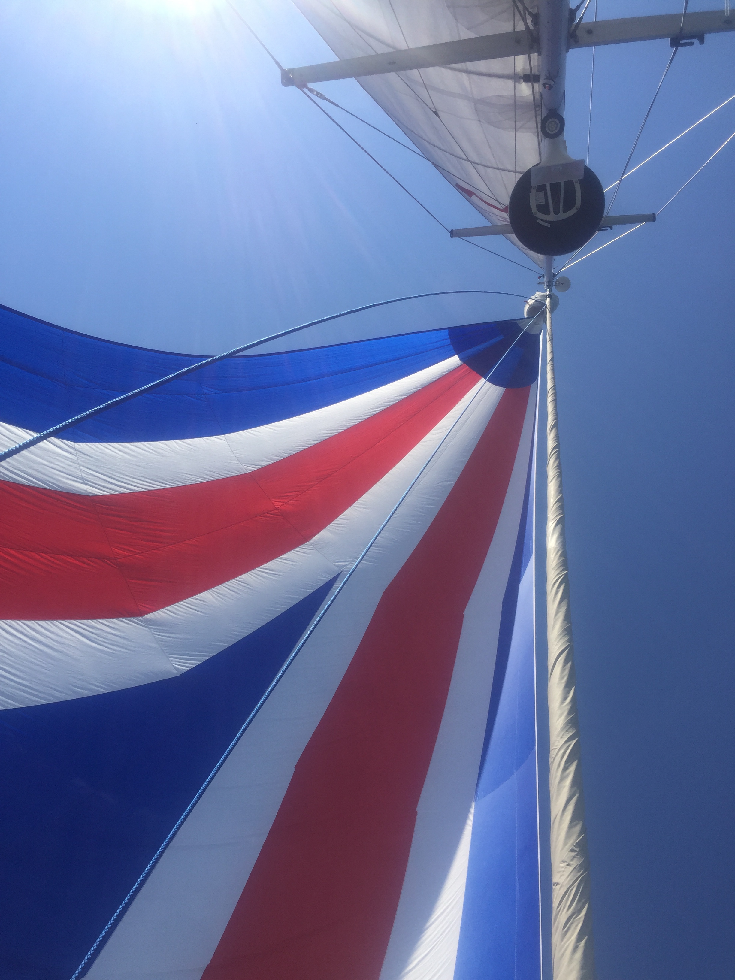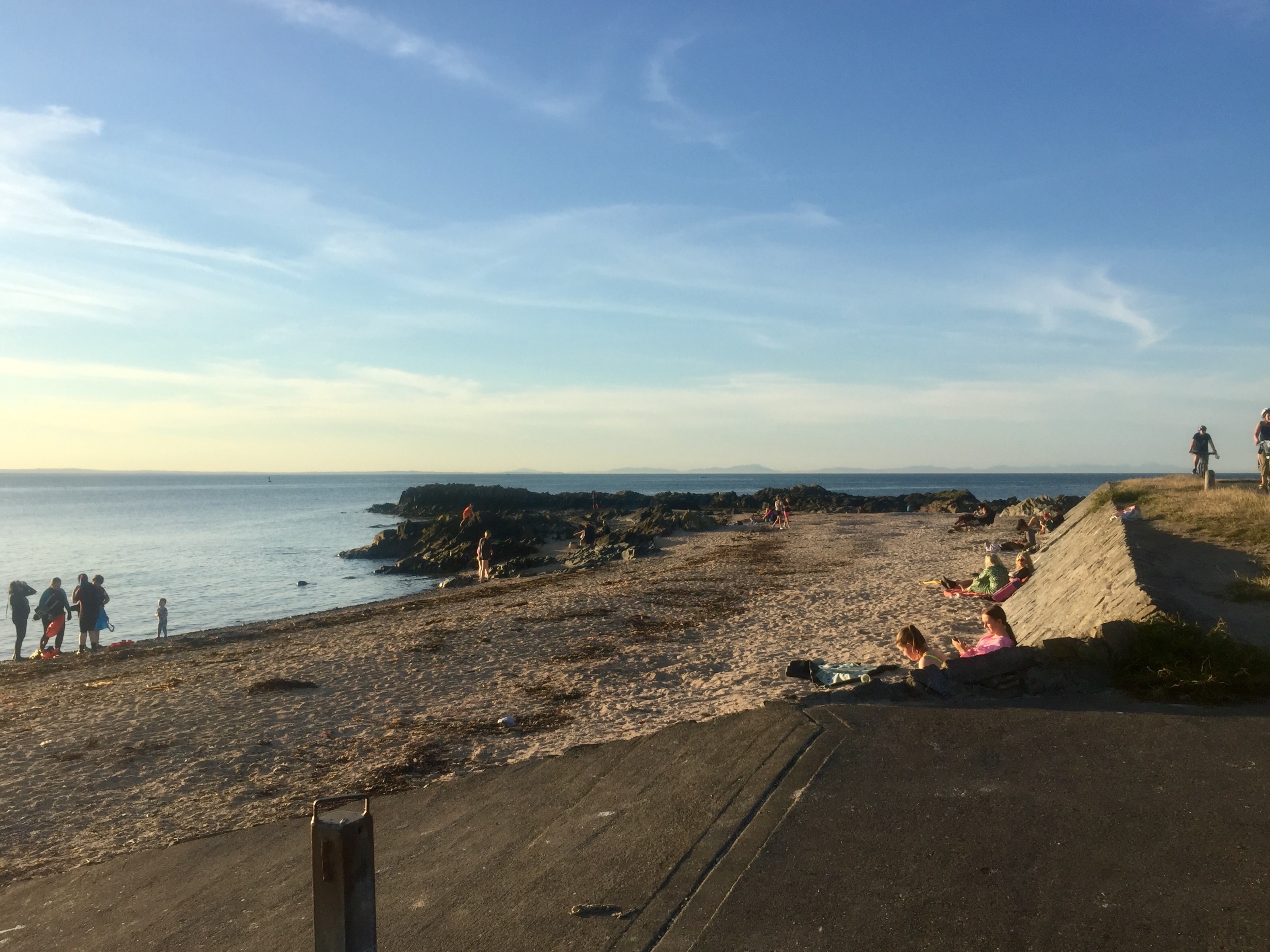 Julian’s first task today was to try and sort out the Log. This is the device which sits in the bottom of the boat and reads the nm per hour/ knots that we do. Basically a non metallic paddle wheel which spins round and a sensor to record the revolutions . We reckoned it had been under reading for some time. It doesn’t seem to be a problem in Scotland but in the warmer southern waters, it appears to get full of small sea crustaceans which clog it up and stop it turning properly. Unfortunately on Angelique, it’s situated under the fore peak beds, right down in a most inaccessible place. Just getting to it is a pain, let alone cleaning it by scraping the creatures off with a kitchen knife. Anyway he’d done it twice already and it’s still not right. However , after a third go at cleaning all the gunk round the sensor whilst upside down under a bunk with a head torch on, and then recalibrating the log instrument. It seems to be reading correctly. Yay! We filled up with water and noticed two little ringed plovers on the pontoons! Seemed a bit of a random place for them to be🤔 ?? Set off 1030 ish into another sunny hot day. There’s a yellow weather warning for high heat days over the country for the next few days. A bit of southwesterly wind though, and we managed to carry the cruising chute for a good few hours as we drifted pleasantly up the Irish coast. There was a ferry and a Couple of cargo ships going into Dublin, but otherwise very quiet on the shipping front. We passed Howth and then Lamby Island …. couldn’t help thinking of all the awful nautical disasters in these waters, that had been in the museum yesterday. Today it is so peaceful. It was very hot. It was cool and pleasant lying on the foredeck in the shade of the big red, white and blue spinnaker. Our destination was an anchorage in a bay off a village called Skerries. We pumped up the dinghy on the way, in readiness for going ashore. The pilot said it was “excellent “ holding in mud…. which turned out to be very true. It was about 6 o’clock by the time we landed in the dinghy and pulled it up the slipway to the left of the fishing pier. The beach was alive with folk having a good time but not busy. A friendly grandad told us that Jomays was a good place for a stop…. and so it was! We spent the next hour and a half enjoying the sunshine, the beer and the general air of happiness and friendliness that is so prevalent here in Ireland. Everyone seemed to be having a good time. The abundance of beautiful petunias in the boxes along the pavement were giving off a lovely perfume and it was altogether a really memorable evening. As the sun was beginning to set we returned to the boat and made supper. A special day. 🌅