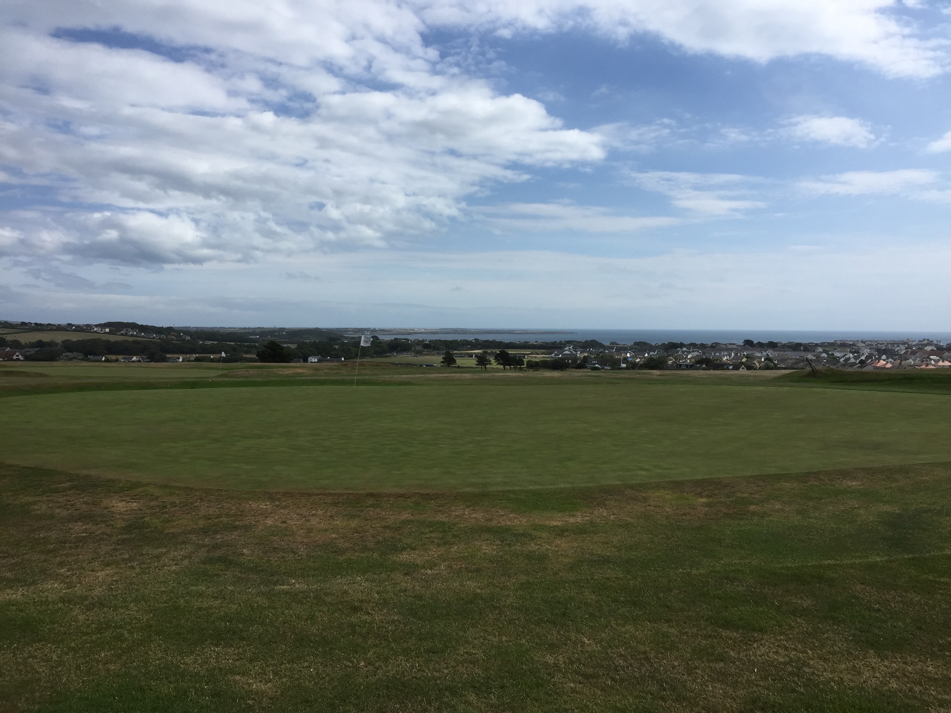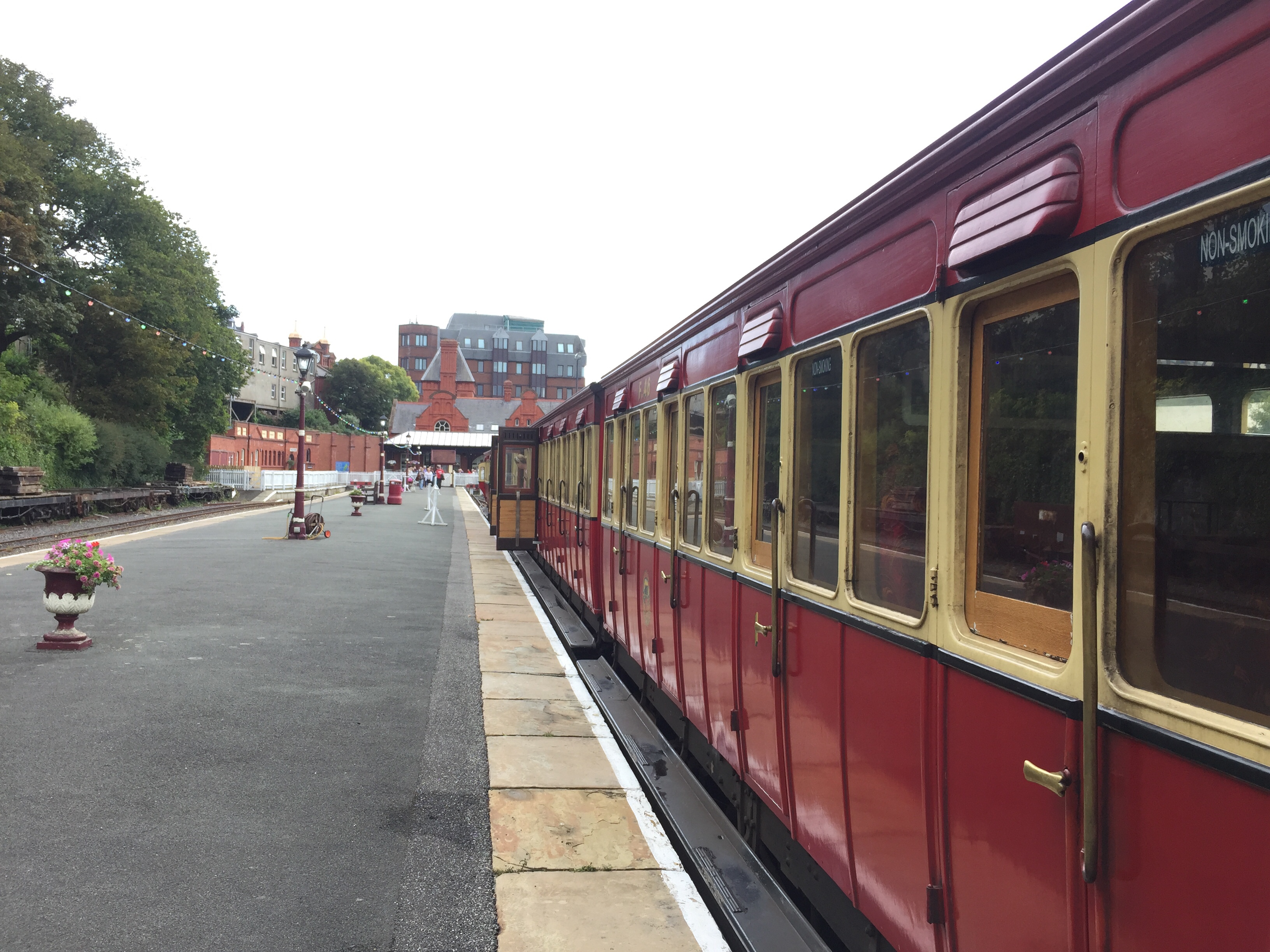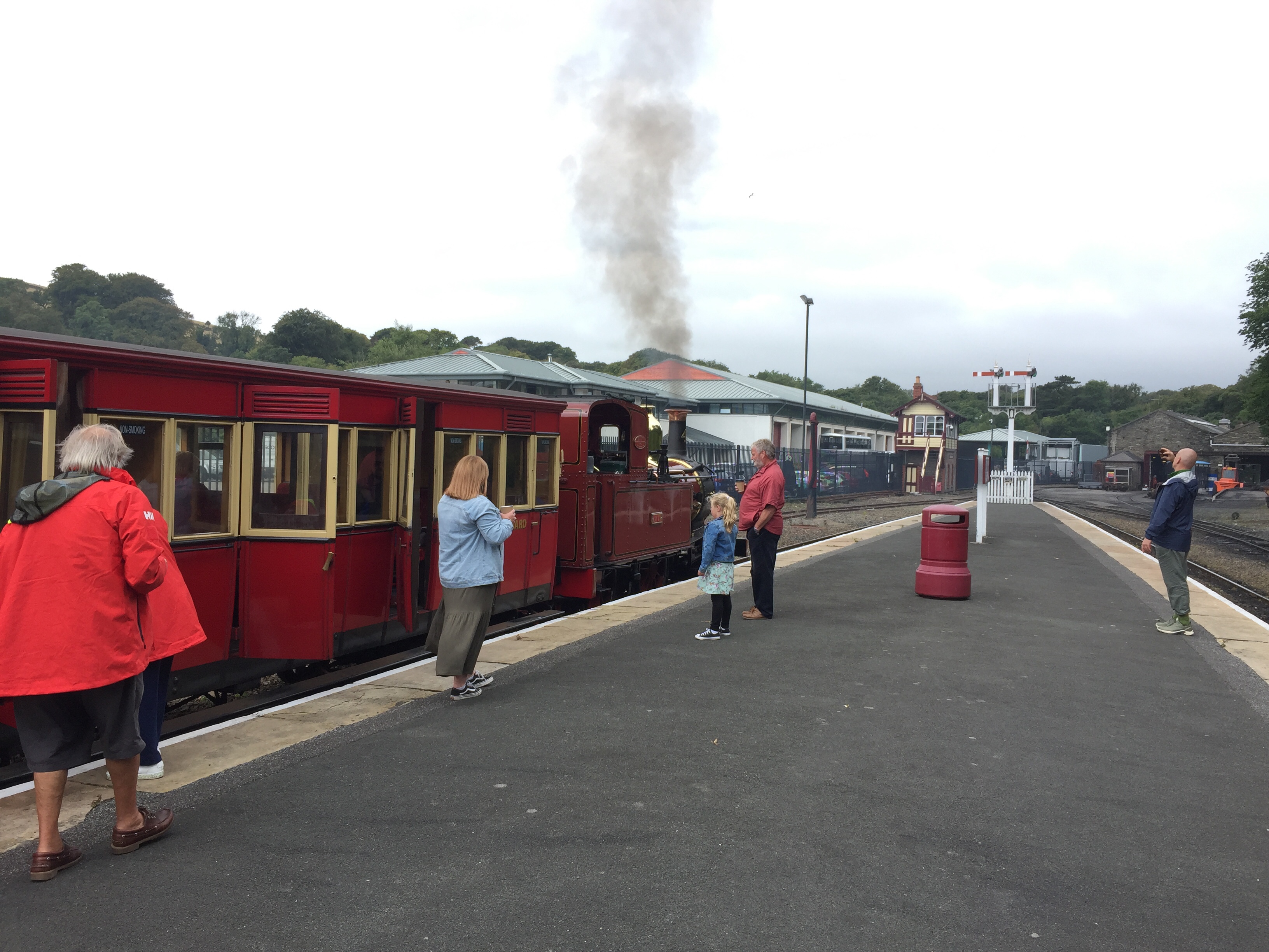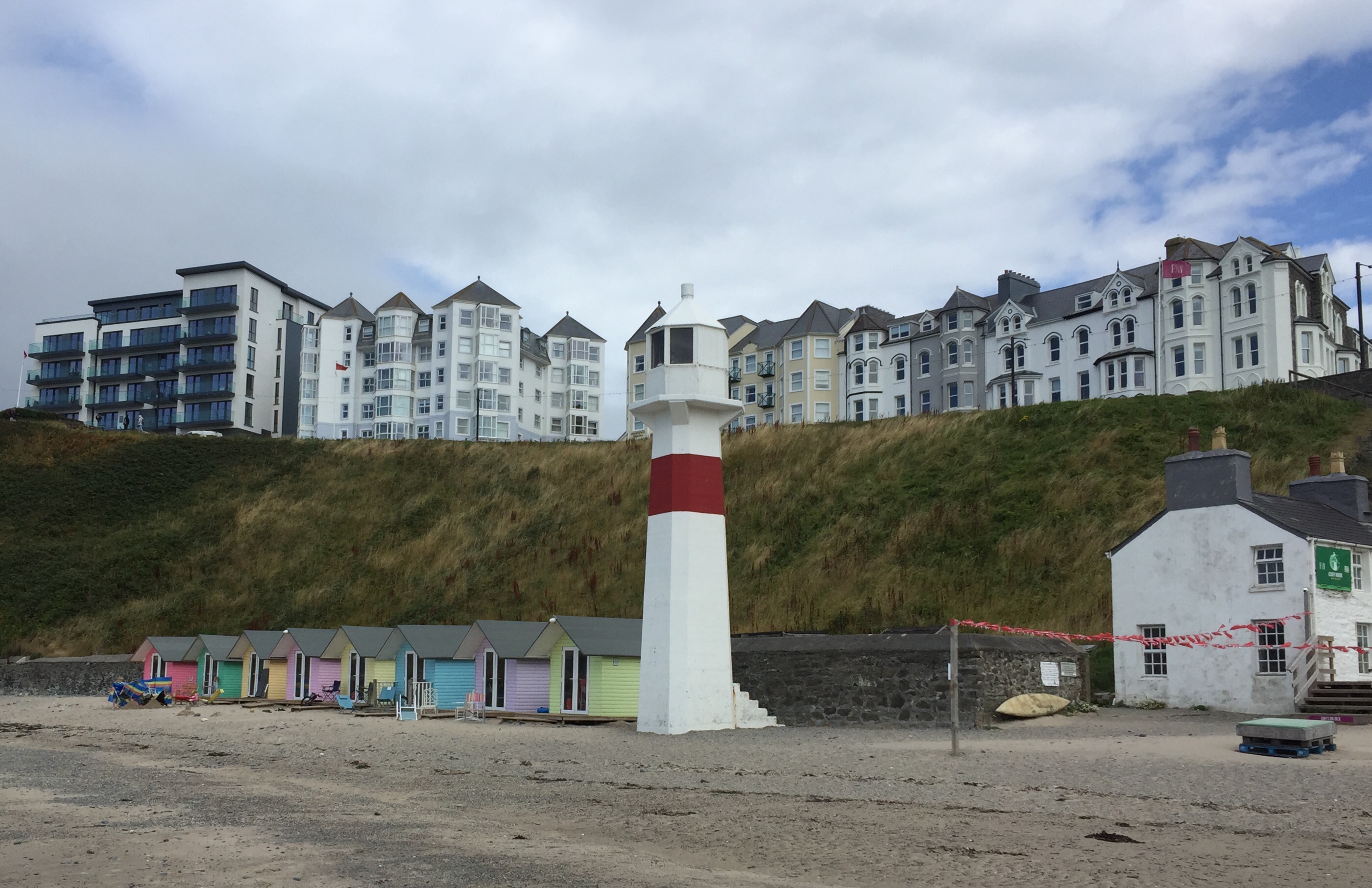 I thought I was back in Scilly, when the wind started in the middle of the night and the boat started rocking. Even attached to the pontoon it was quite significant. It was a north wind which obviously funnels into the marina in this direction. Thunder and lightning accompanied the wind, with heavy rain to follow. I thought about the last time we had thunder and lightning……. thank goodness we’re attached to a nice solid pontoon! Cosy when you know you’re secure ! The whole day was windy and as we looked out to sea, the white horses were big! It was blowing up to 25 knots in the marina so you can add another 10 for out at sea. Glad we’re tourists today! We used our GO cards to get the bus to Douglas, then walked to the Steam train station, a few minutes away. We had a cup of coffee whilst waiting and then it was all aboard the narrow gauge railway with No. 4 engine. Riding on steam trains always brings out the child and somehow you can’t help being excited by the smell of the steam, the chug chug rhythm, and the whistle blowing. We chugged our way to Port Erin further down the west coast. The wind and the waves had cleared out everyone from the beach, but it’s a great stretch of sand with a pub right on the beach and a backdrop of grand Victorian buildings. It’s a anchorage in the right wind direction but today you’d have to be tucked up in the northeast corner. We walked out to the west first, checking out the golf course and eating sandwiches sat on a rather windy bench with a great view. After that we walked to Port St Mary, on the east coast. Only a few miles apart at this point. We saw the visitors moorings out in the bay that we had picked up a couple of years ago, 2020, when no one was allowed to visit the IOM due to Covid. Eventually we found a bus stop up in the town with the appropriate number on it. J is getting very good with the bus timetables, and so far it’s been extremely efficient and hasn’t been more than a few minutes behind schedule. An interesting thing is day by day we are noticing more and more things appearing on the roadsides, as the island gets ready for the motorbike Grand Prix this weekend. More and more huge padded cushions are being attached to walls and signposts. Small grandstands made of scaffolding are appearing and portaloos are being deposited in fields Along the route.