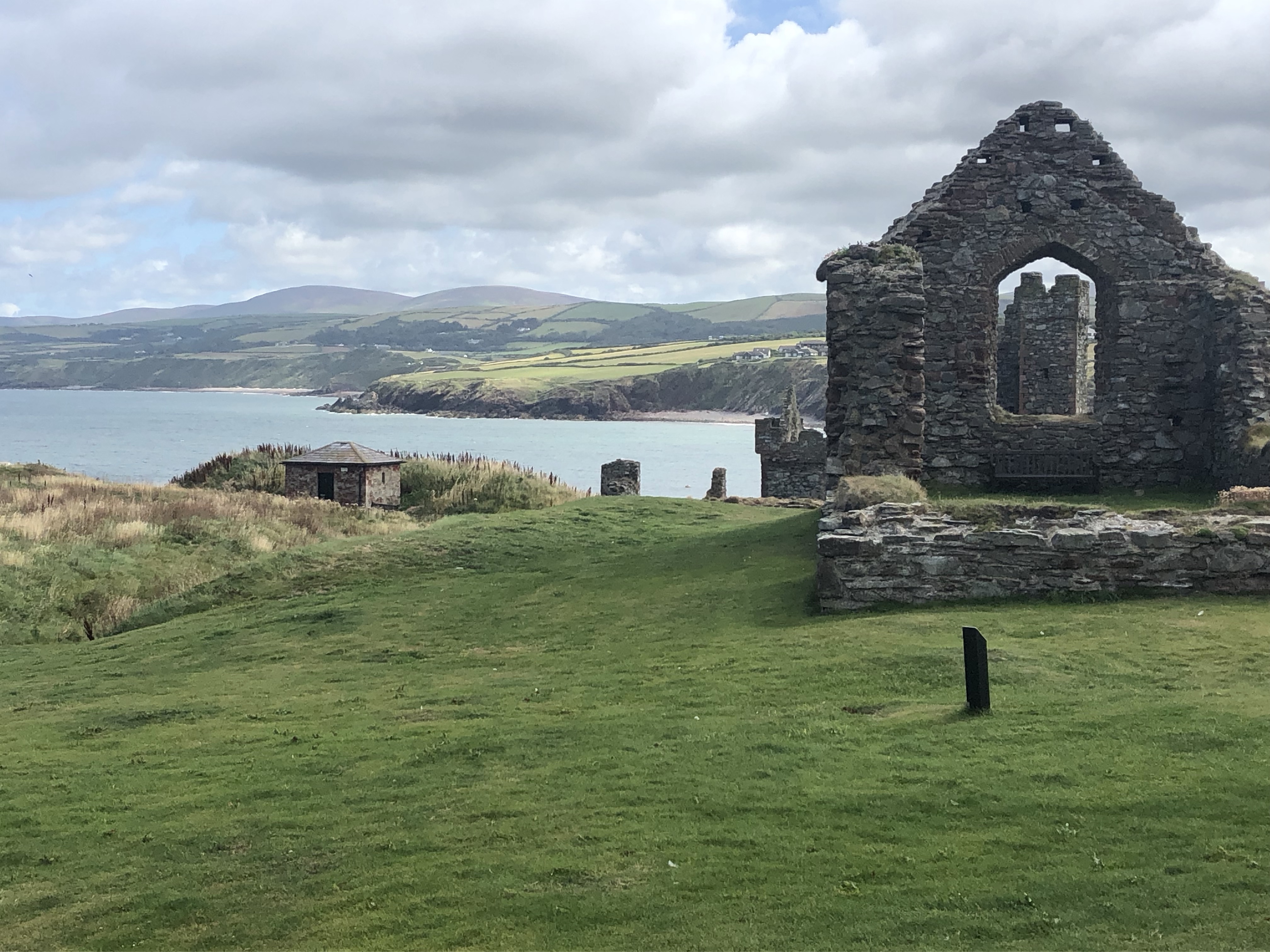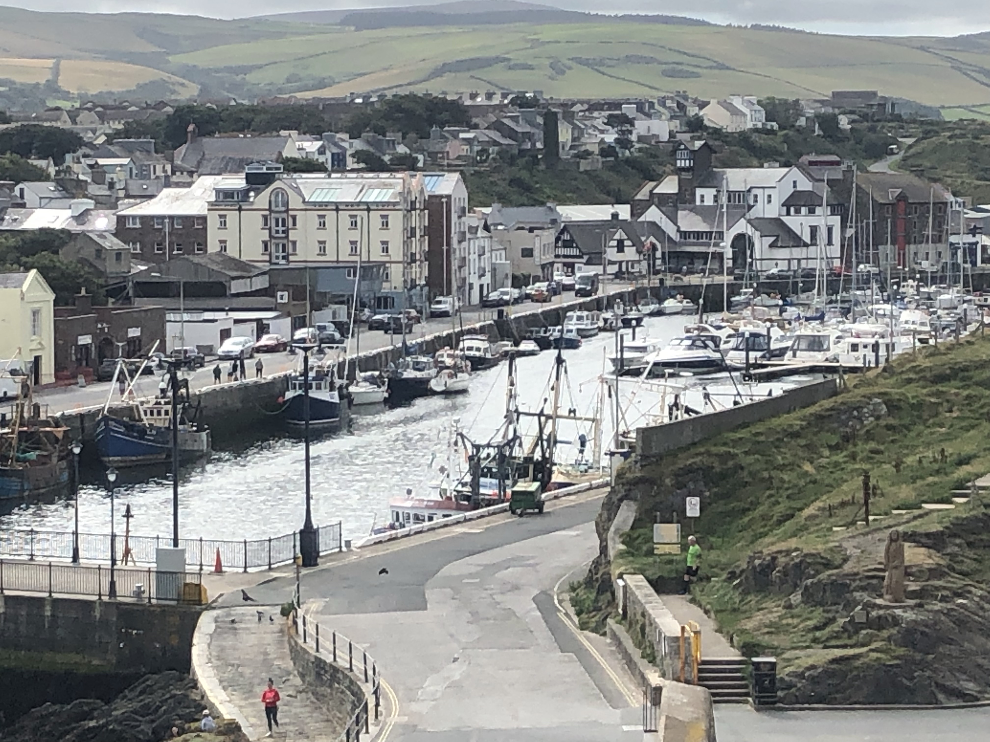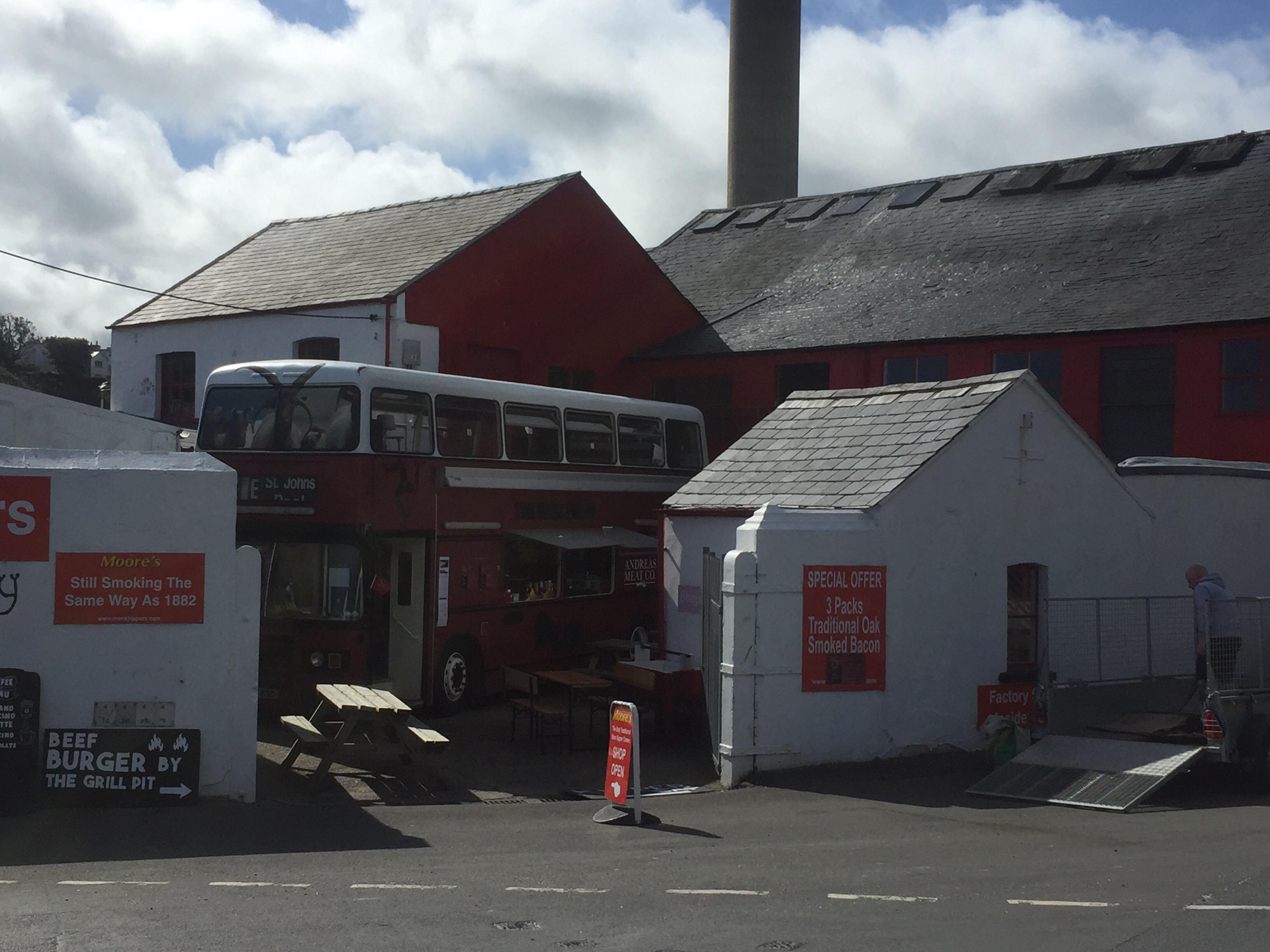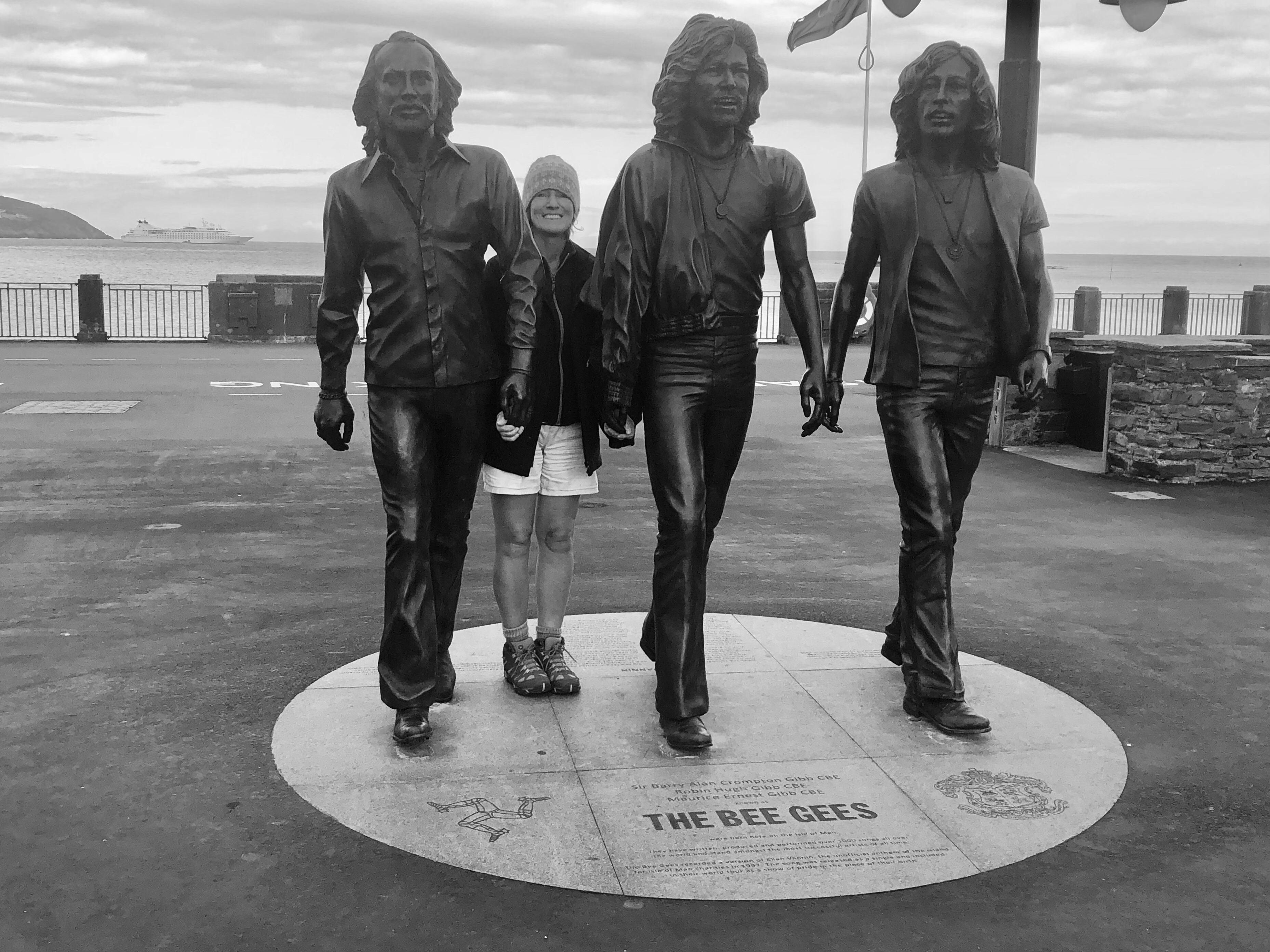 A much brighter day today. Still windy from the south, but pleasant in the breezy sunshine. First thing we did was to go to the little Manx kipper Smokery at the top end of the harbour. It looks as though it been there for decades……. apart from the red double decker bus which has somehow been shoe horned into the yard. It’s acting as a pop up cafe With the top deck set out with bar stools etc and produces famous Manx kipper baps…. thankfully bacon ones too! A really delicious breakfast! Once it was 11am we made our way to Peel castle. Once again we were impressed by the heritage site and how it had been done. They had audio machines which told you a bit about each of the 39 places in the castle. But not too much detail! My favourite was the napoleonic “barbettes “ that used old canons stuck upside down in the ground. After the Castle we made our way to the now familiar bus stop and off we went to Douglas. This time we changed at the sea terminal to get a local bus to Onchan to see if we could find the King edward golf course. Whilst waiting for the bus, we watched as many tourists took photos and selfies of a statue of three men in flares?!?! I guessed who they were but no idea why they were here. After our golf course reccy, we retraced our steps on the bus and went and perused the shops for a bit. First time we’d been inside a marks and Spencer’s for 5 months! Then it was time for bus home, beer at the Creek and evening of chilli and TV🤗.