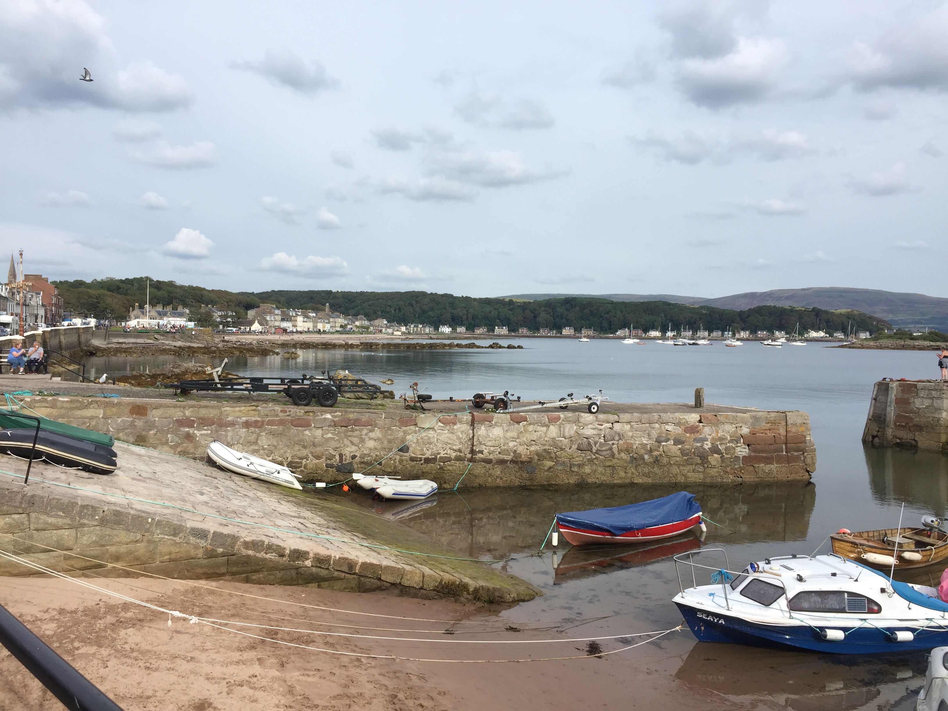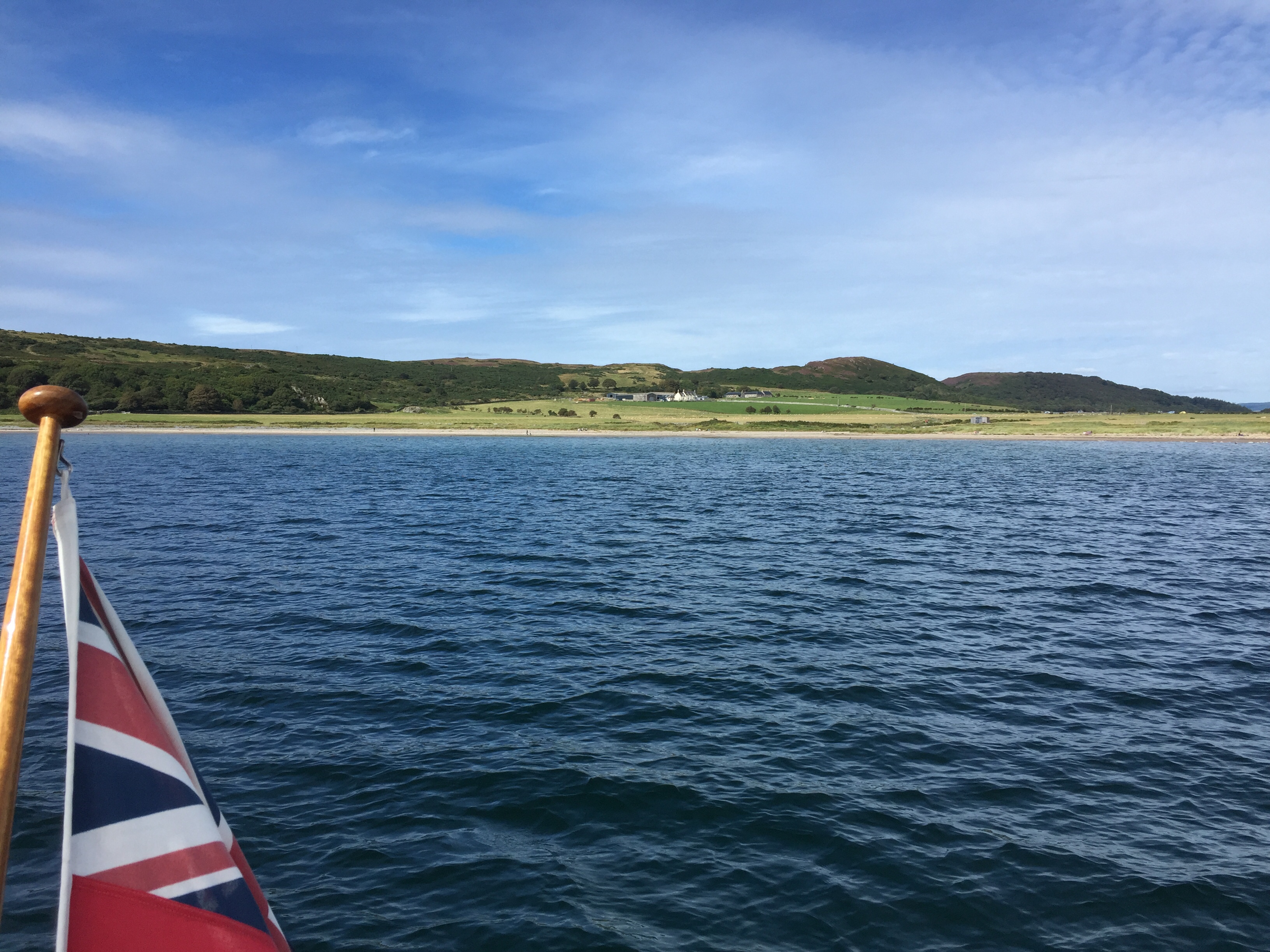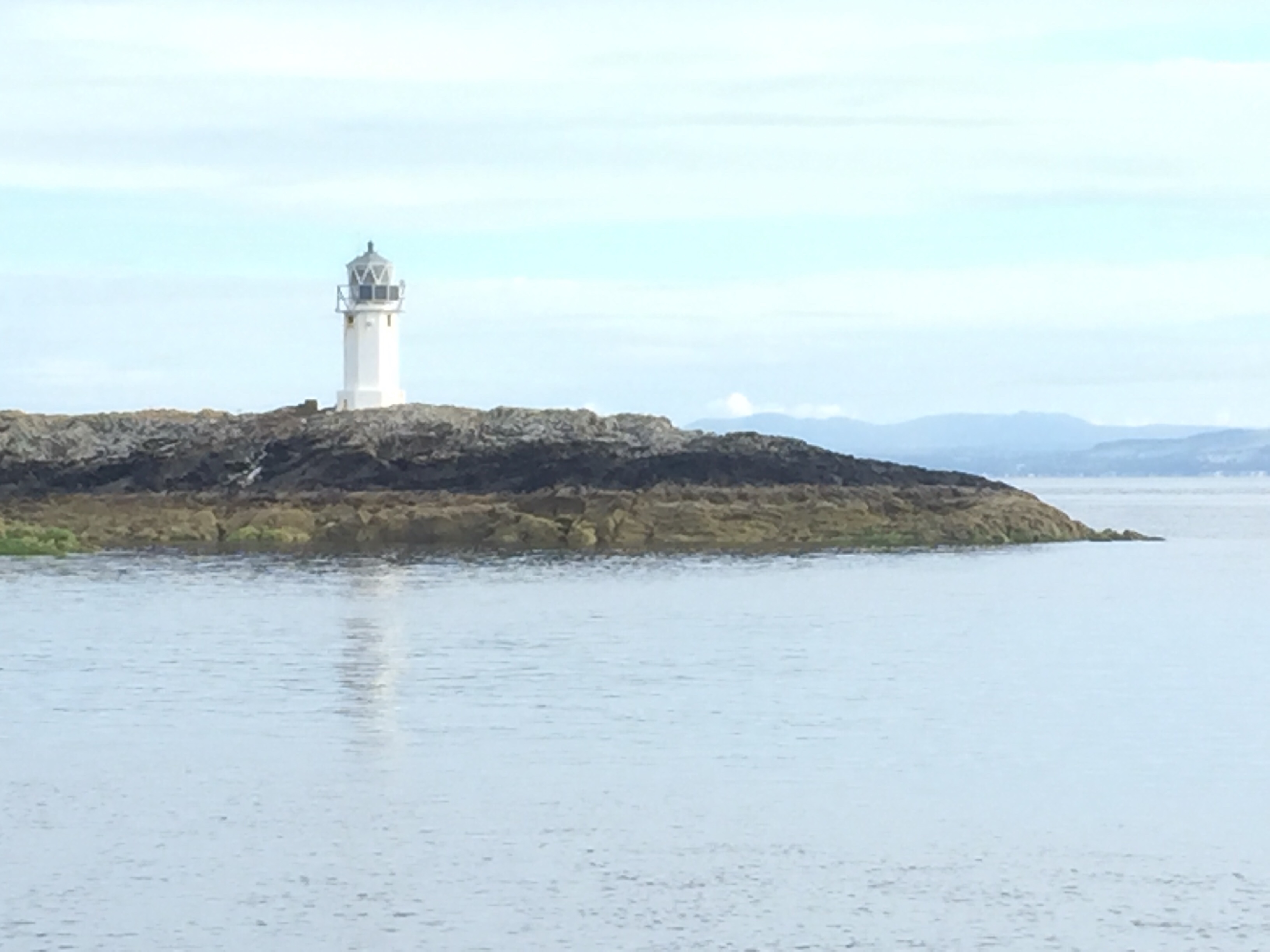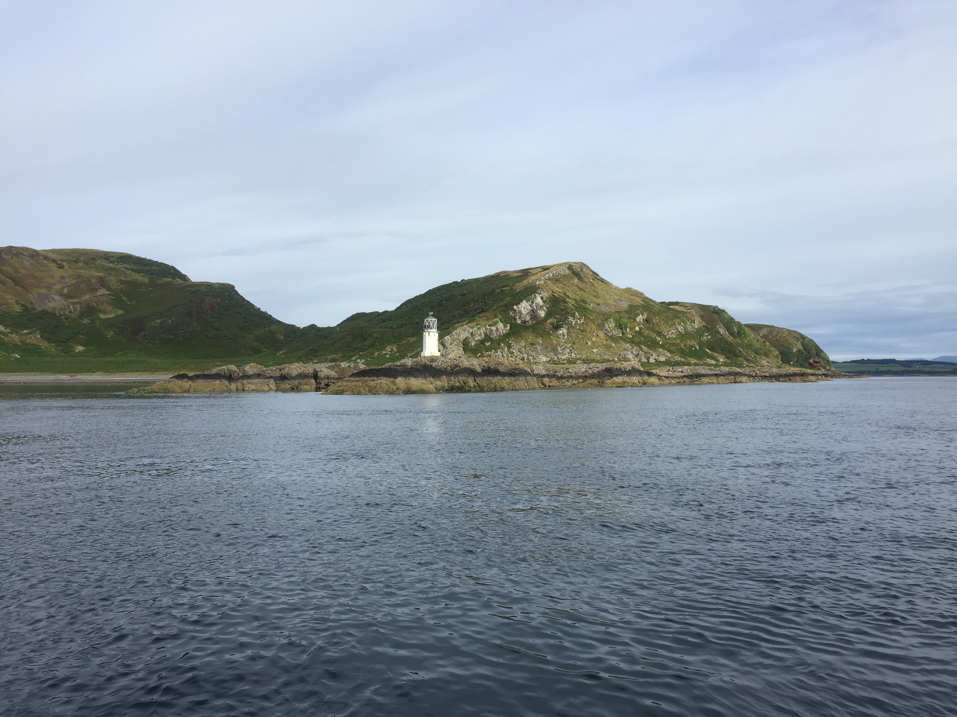 A short hop. We’re on our way back to Troon tomorrow. The end of our journey. No wind to speak of. It was lovely just to be up early. The wind had gone round to the NE in the night, as forecast. We upped the anchor and motored out. We had bacon and egg sandwiches and coffee. Goat fell on Arran was as clear as I’ve seen it. It had a little rainbow 🌈 poking up from the right hand side, though we only had a few spots of rain. we hugged the coast and enjoyed the views. As we approached the corner of the Isle of Bute, we could see what looked like a submarine in the distance. It was. It got bigger which meant it was coming up the Clyde where they dock them. Having had this happen before we knew what was coming when the black police rib approached us just off Glencallum bay on the bottom corner of Bute. They just asked if we’d mind waiting whilst the submarine passed by. We stooged around in Glencallum bay, which looks like a lovely anchorage and one where we haven’t been yet. The little lighthouse on the corner giving an obvious Starboard mark. Once the submarine had gone, we made our way to Millport and picked up a mooring in the bay. As we arrived early Julian rowed ashore to get the Sunday paper and the rest of the morning was spent relaxing. I had a plan for the afternoon which involved getting a “ grand tourer” from one of the bike hire shops here. As it’s a small island with a coast road I thought it would be a good idea! Unfortunately it was extremely hard work! And I don’t think anyone enjoyed it!☹️. Afterwards we had a ice cream and a beer at a spectacularly seedy pub! Shame as last visit we remember it as being lovely! Aw well. Returning to Angelique Julian did a few jobs and then cooked lovely vegetarian curry. The TV wouldn’t work properly so we gave up with that.Thinking about tomorrow and wondering 🤔.